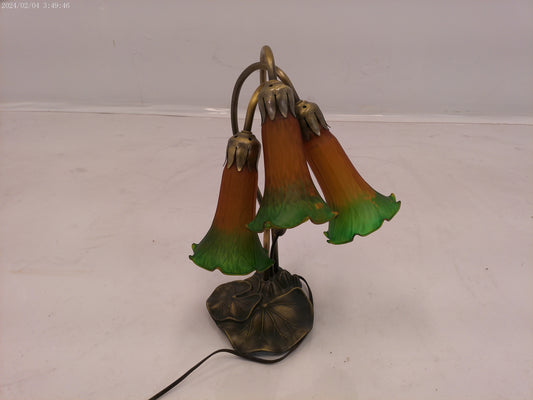 16" High Amber/Green Tiffany Pond Lily 3 Light Accent Lamp
