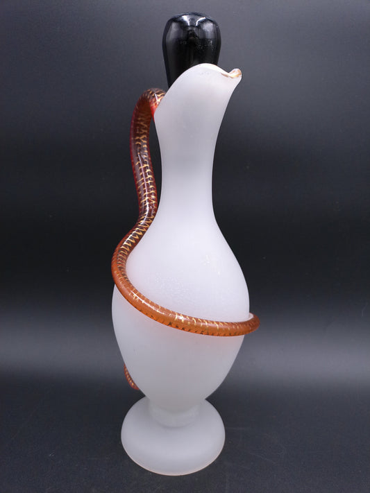 1 Frosted Glass Pitcher with an Applied Amber Glass Snake Handle Design with Black Cork 1900's
