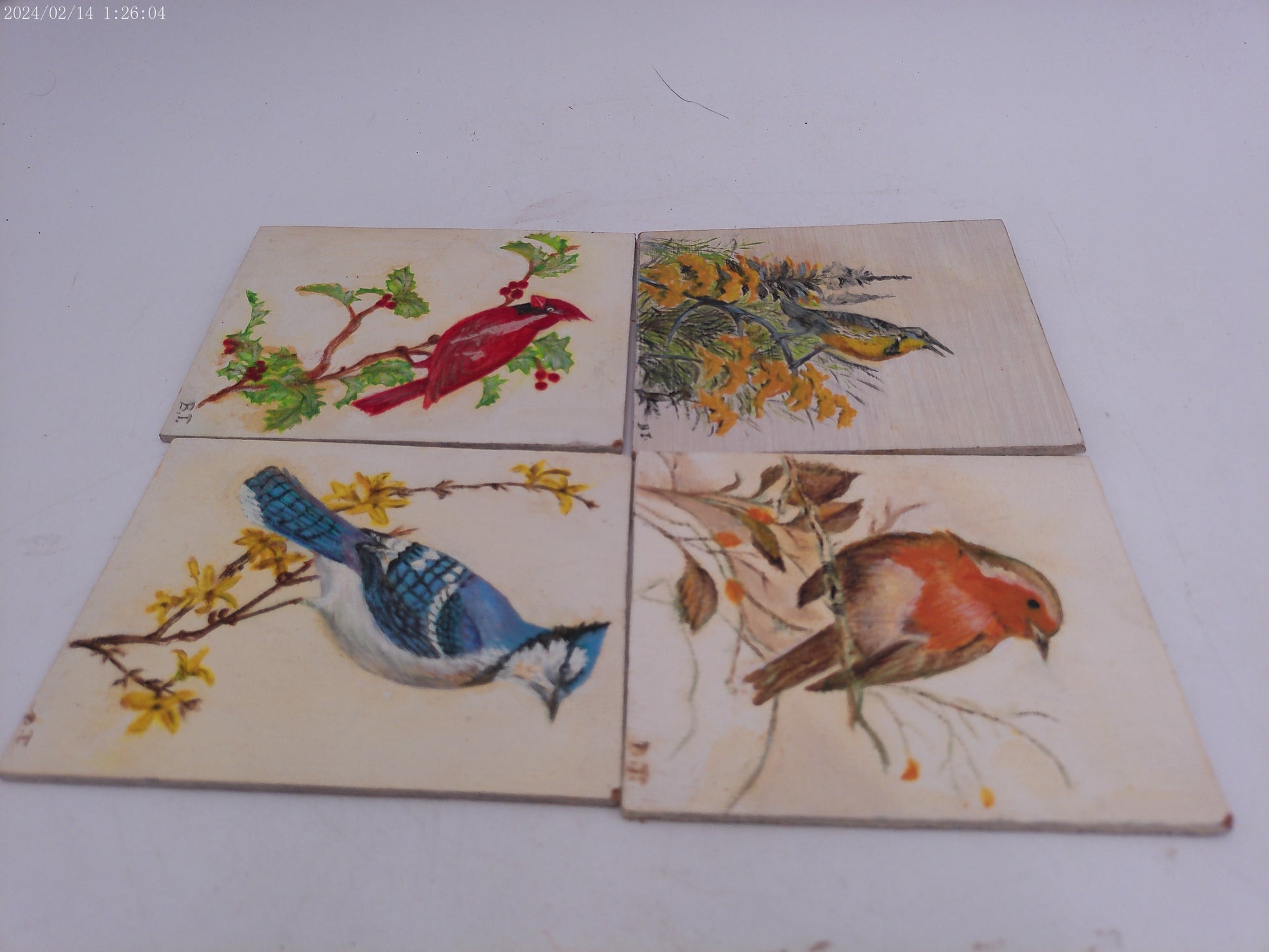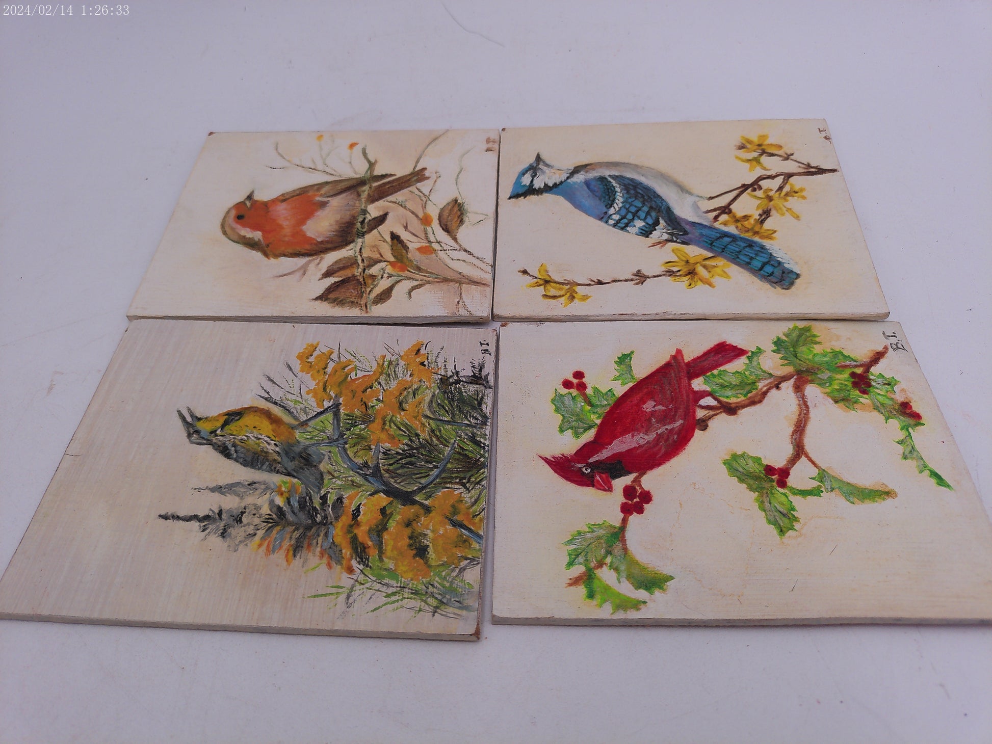 Discover the beauty of birds with our 4 Colorful Painted Tiles. Each tile features a unique and vibrant hand-painted design, adding a touch of nature to any space. Made with high-quality materials for long-lasting beauty. Bring the joy of nature into your home today!