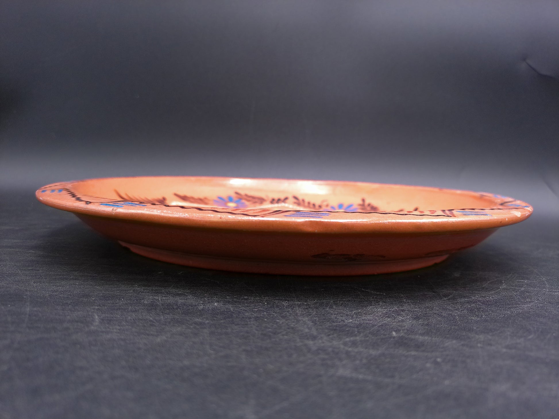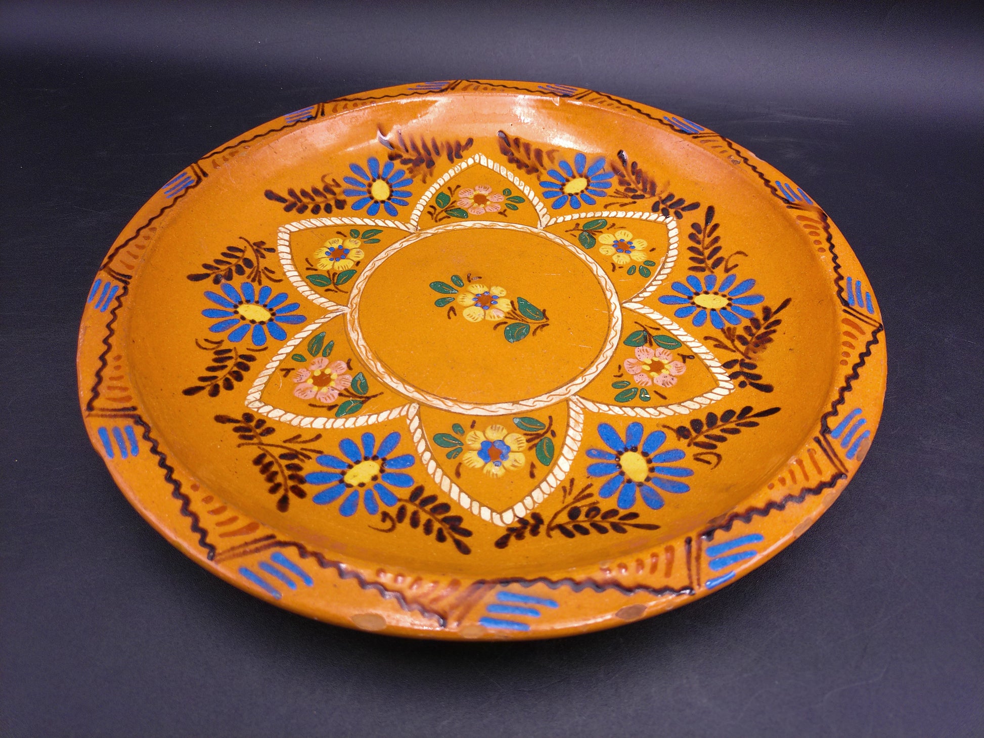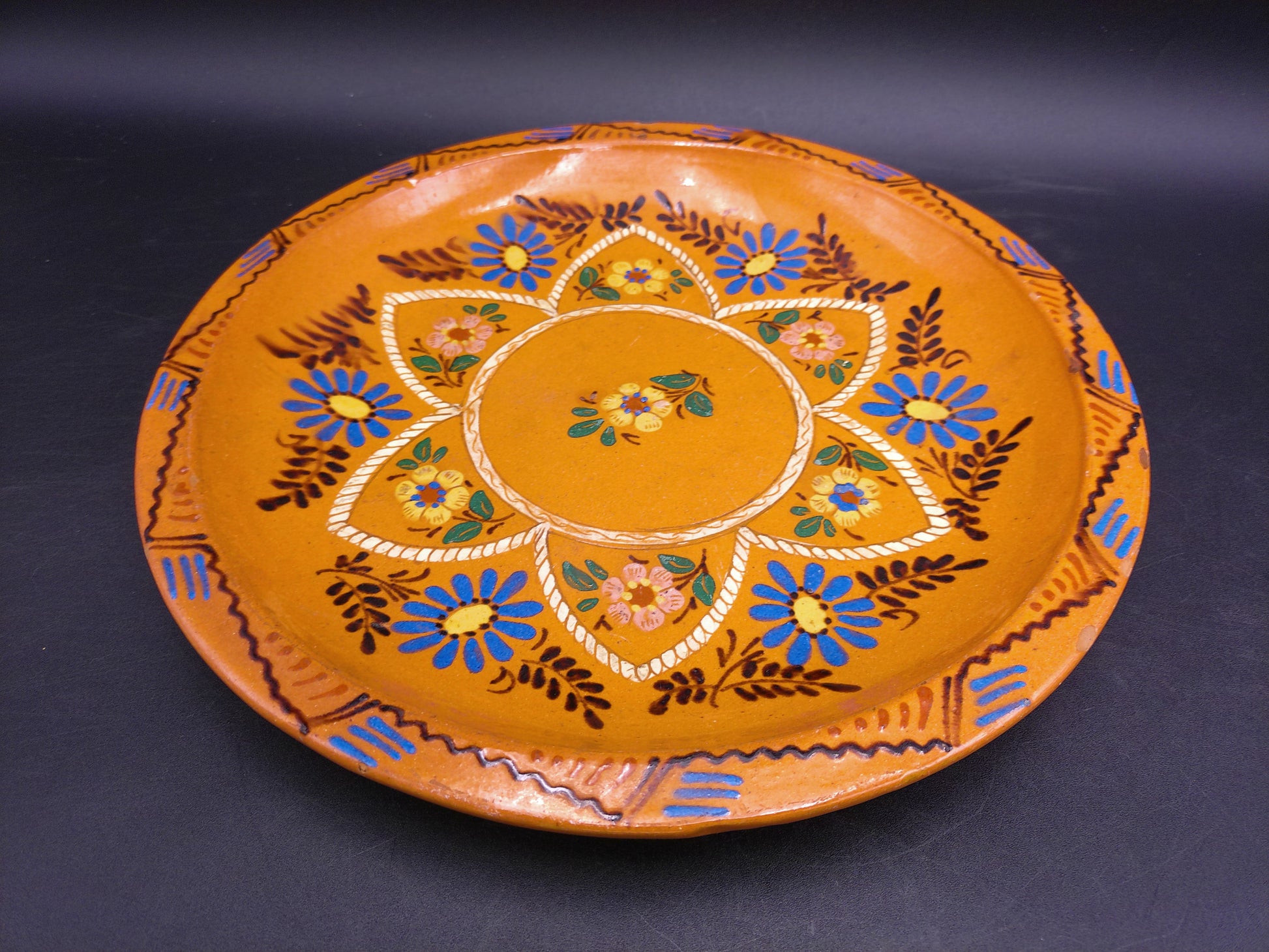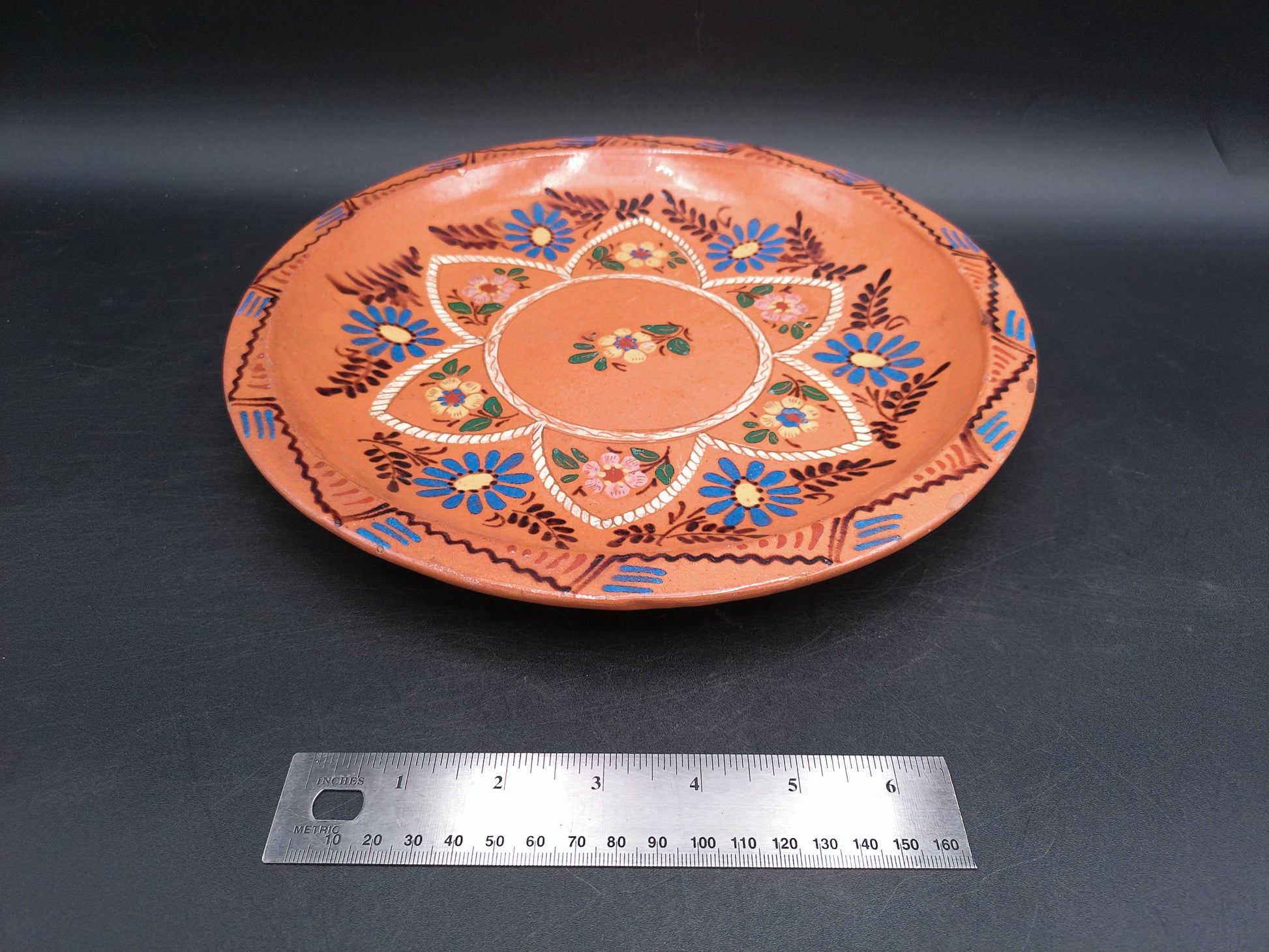Bring a touch of vintage charm to your home with this hand-painted ceramic pottery platter, adorned with a beautiful flower design. Crafted with care, its vibrant colors and detailed artwork make it perfect for serving or as a decorative centerpiece. Elevate your dining or display with this unique, timeless piece that blends artistry and functionality effortlessly.
