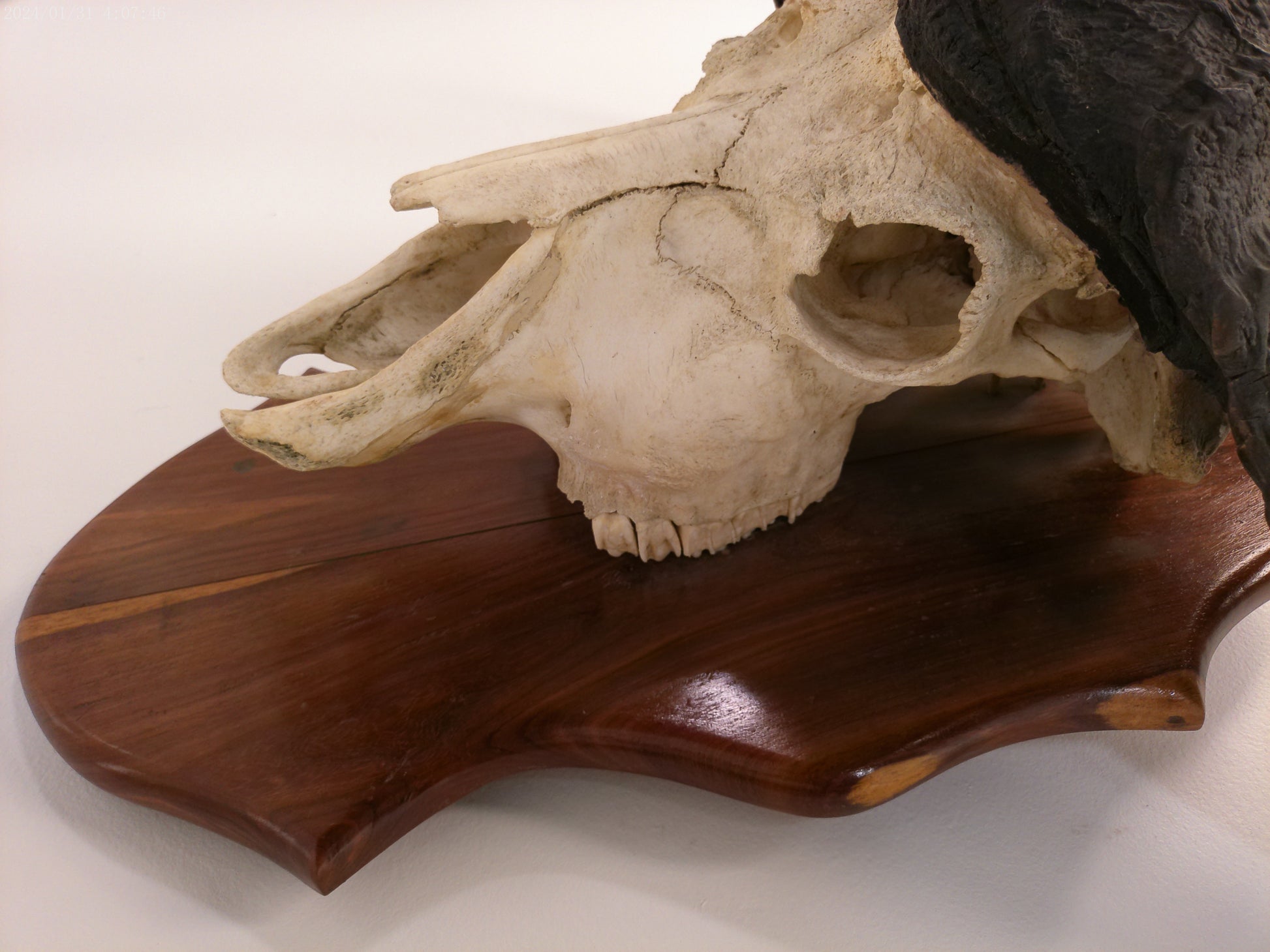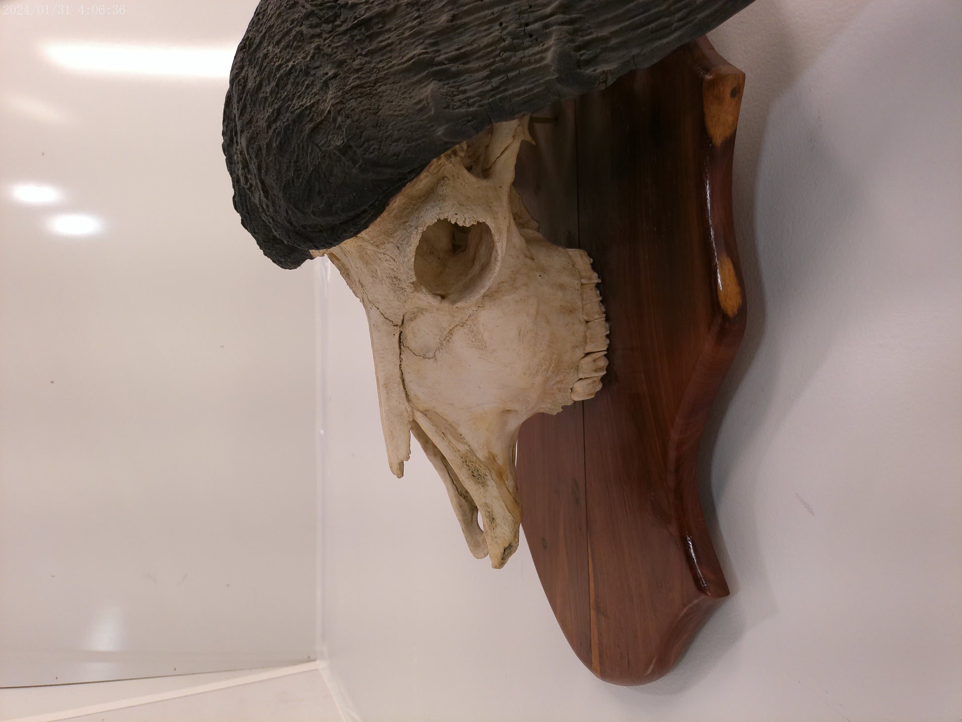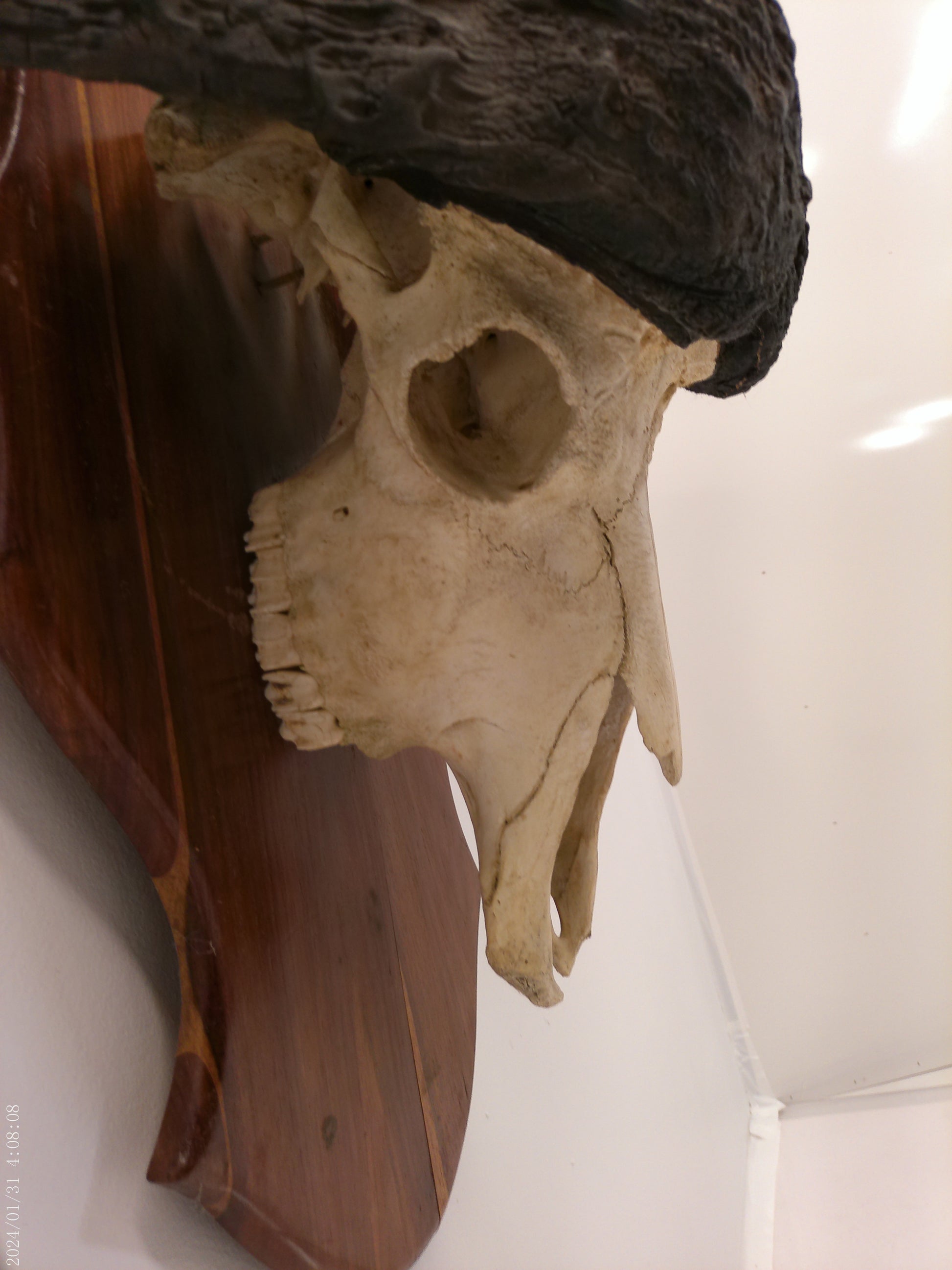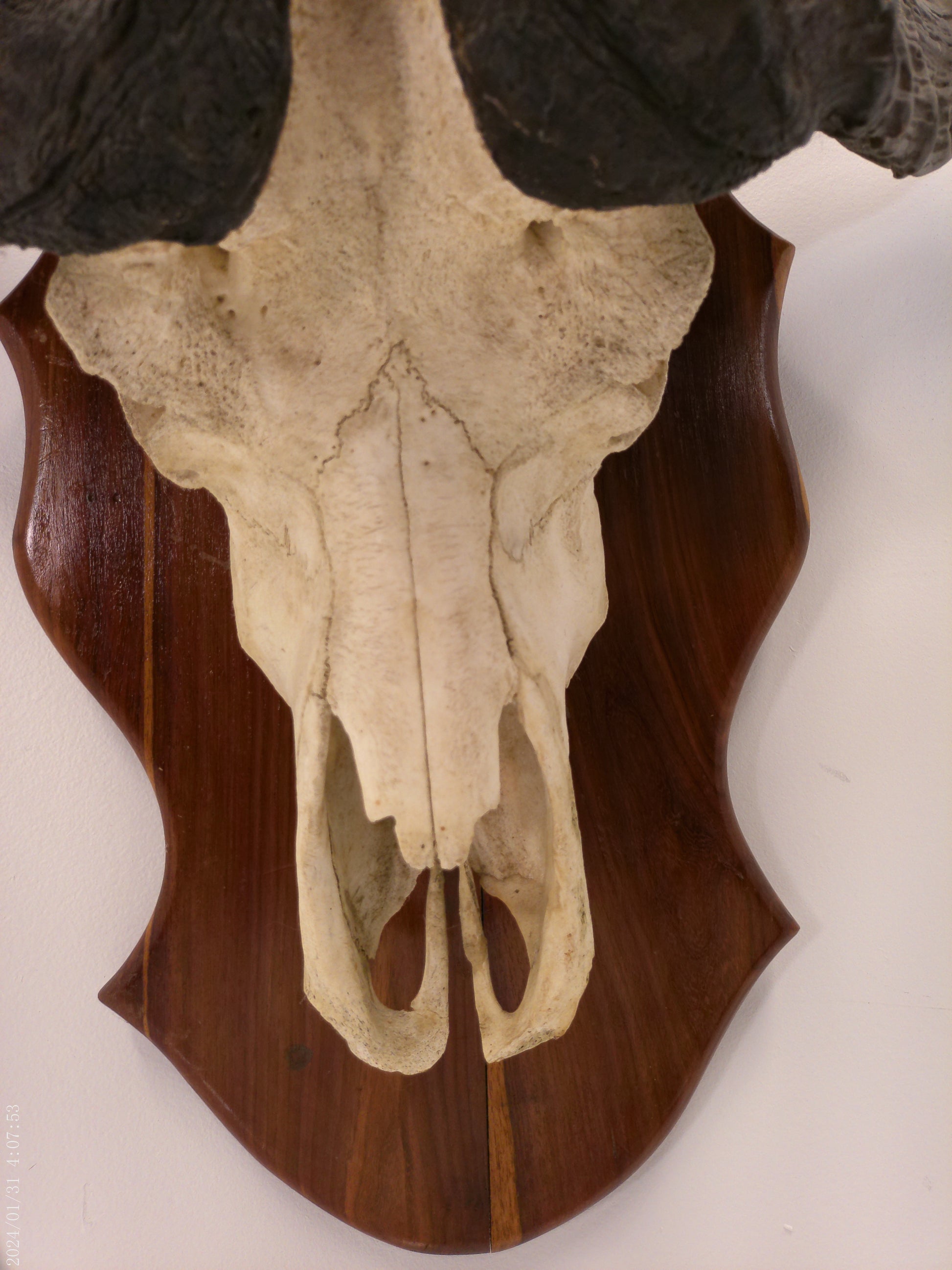 This impressive African Cape Buffalo is mounted on a board, showcasing its large and formidable horns. As a symbol of strength and power, this piece adds a touch of African safari to any space. A must-have for any wildlife enthusiast or collector.