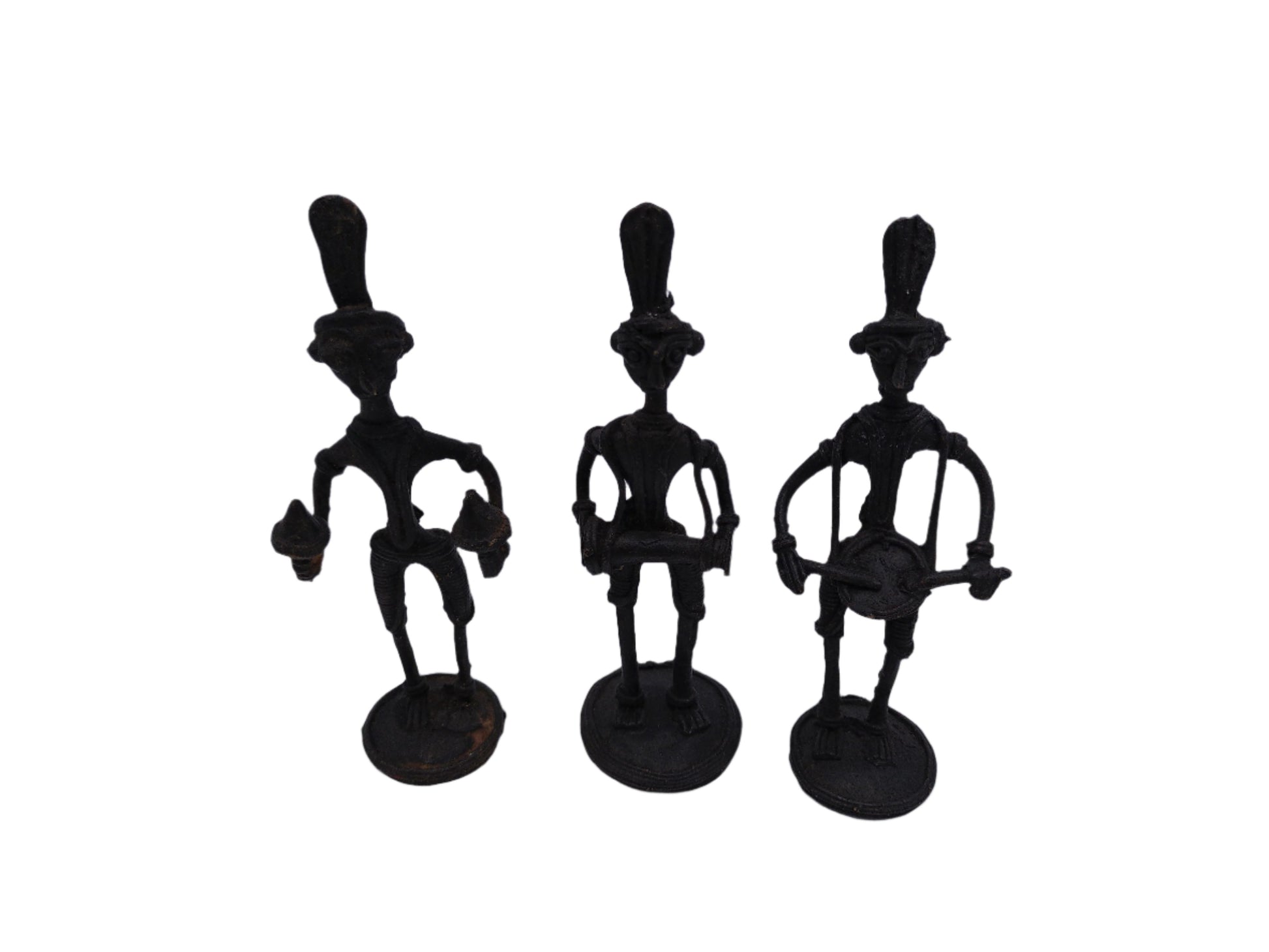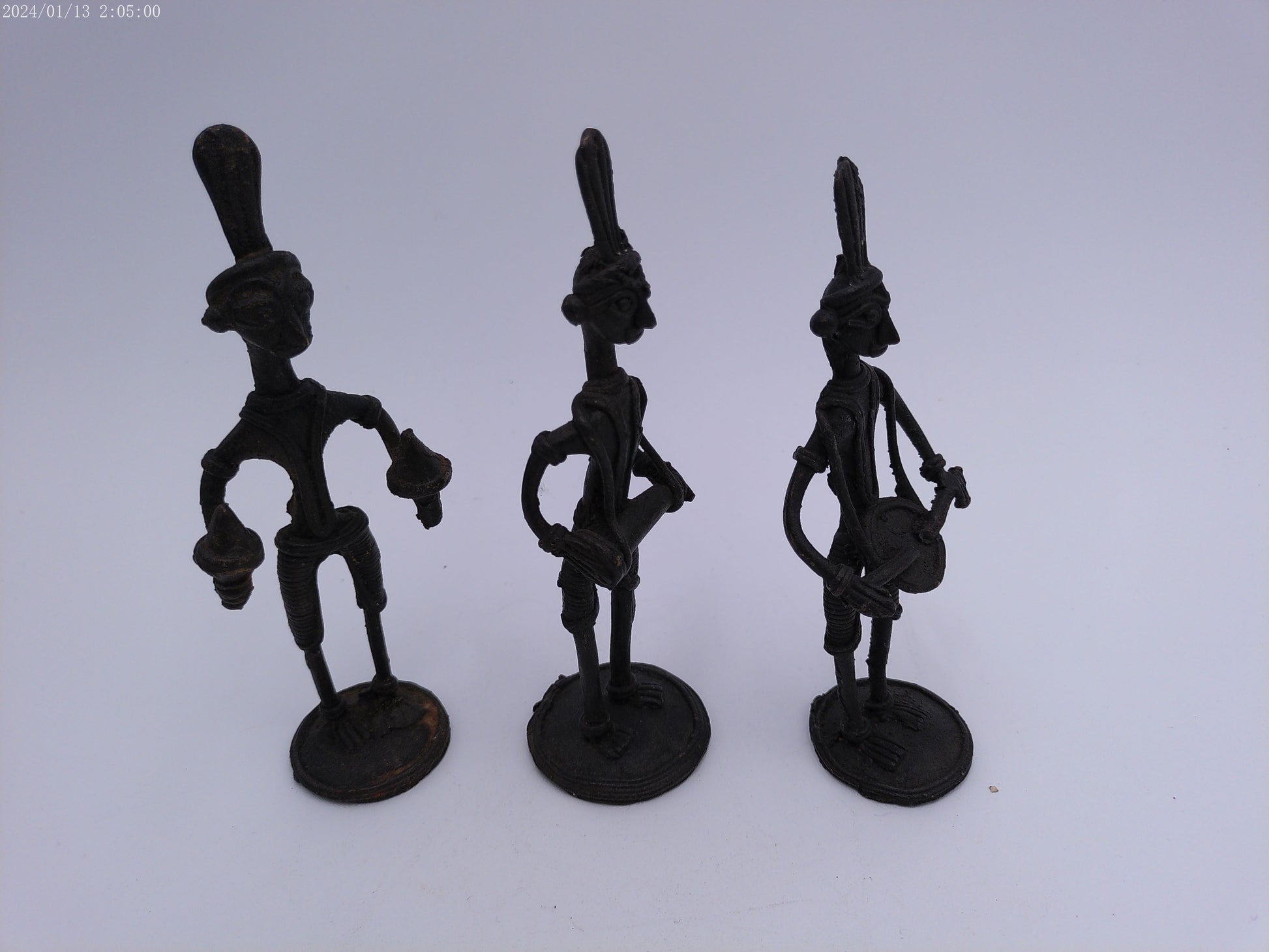 This African musician sculpture from Senegal is a stunning vintage metal statue that captures the essence of traditional music and culture. Handcrafted with intricate details, this sculpture is a unique addition to any home decor. Displaying this piece will not only add a touch of African art to your space, but also serve as a conversation starter.