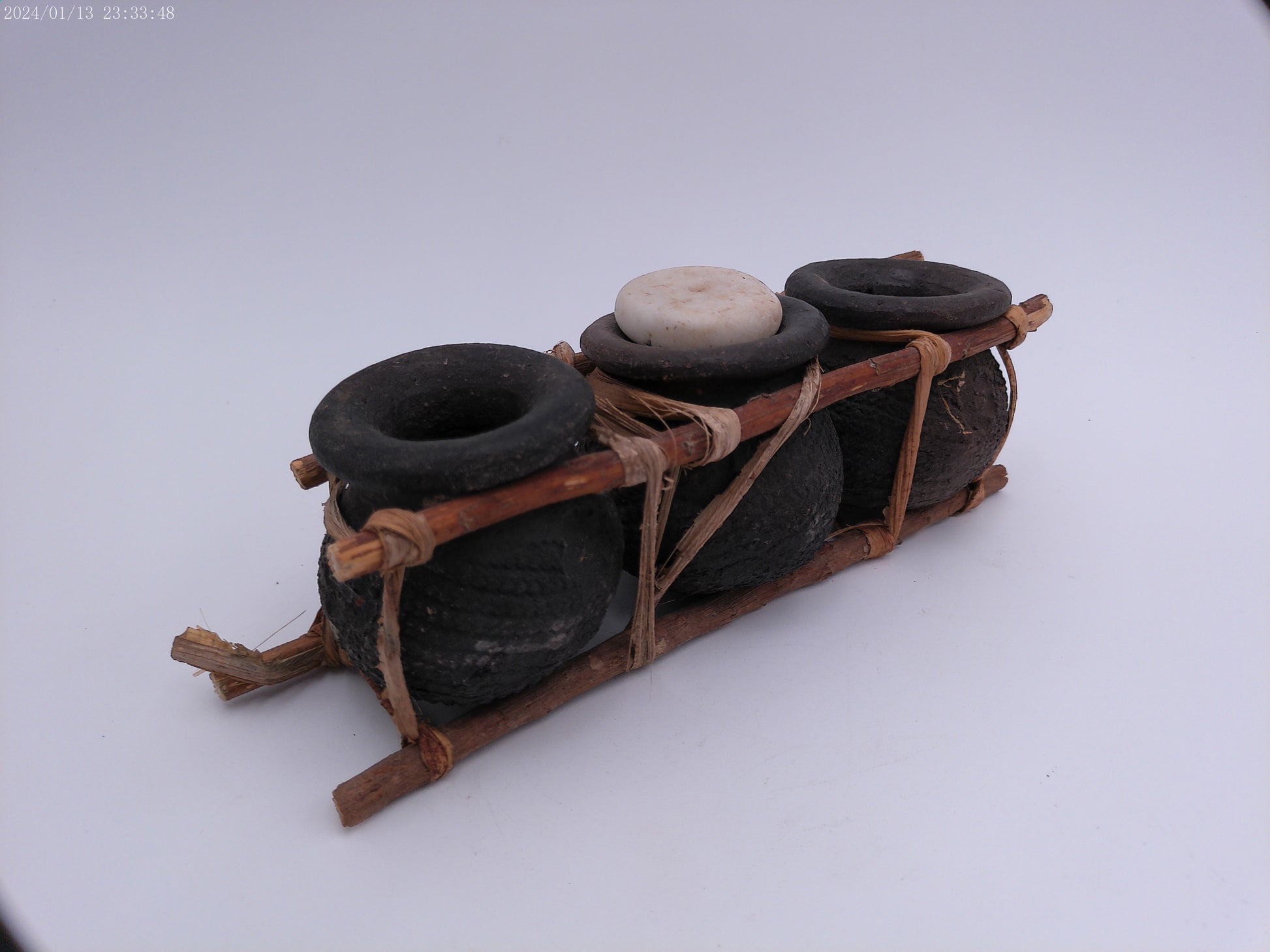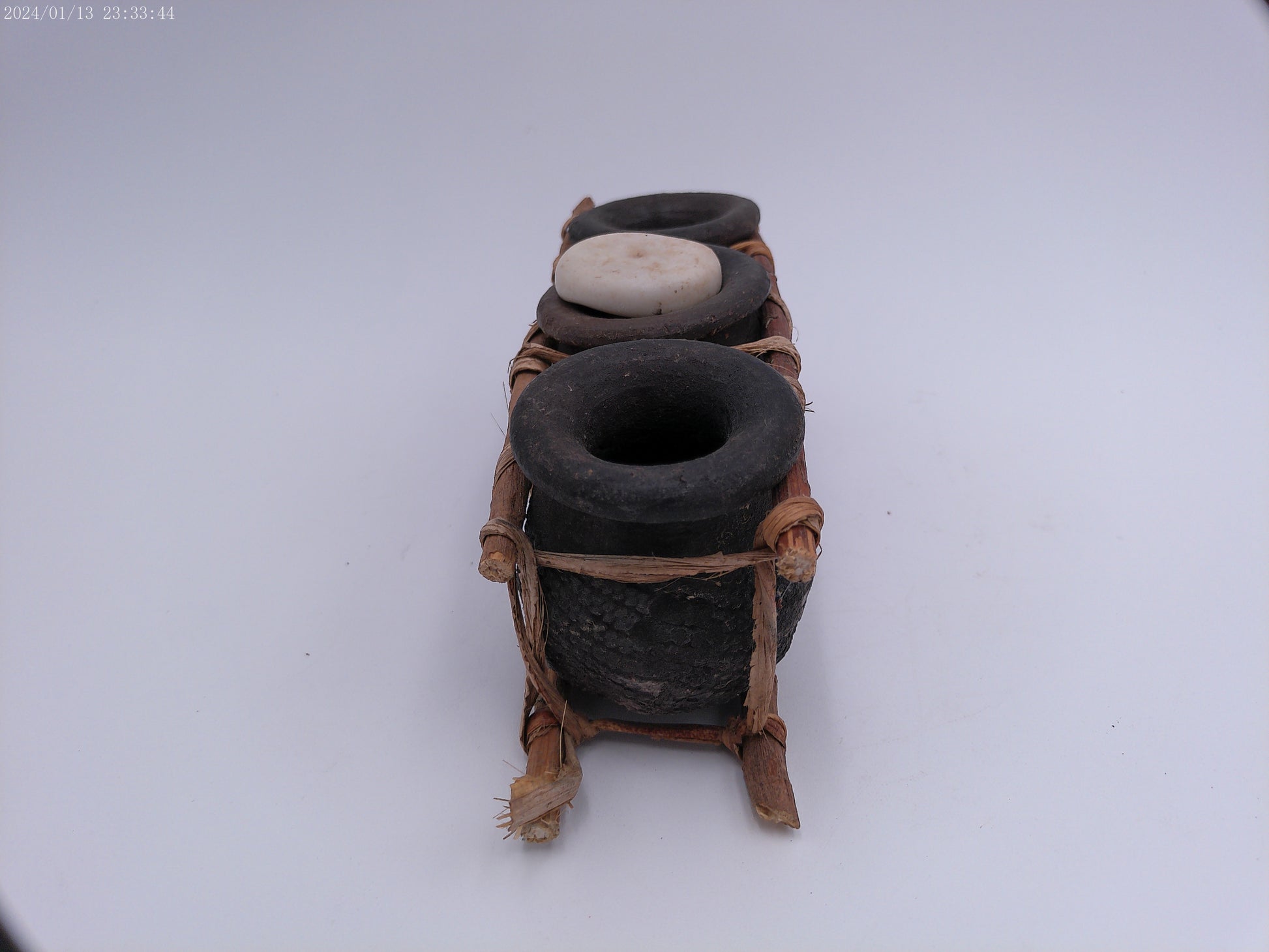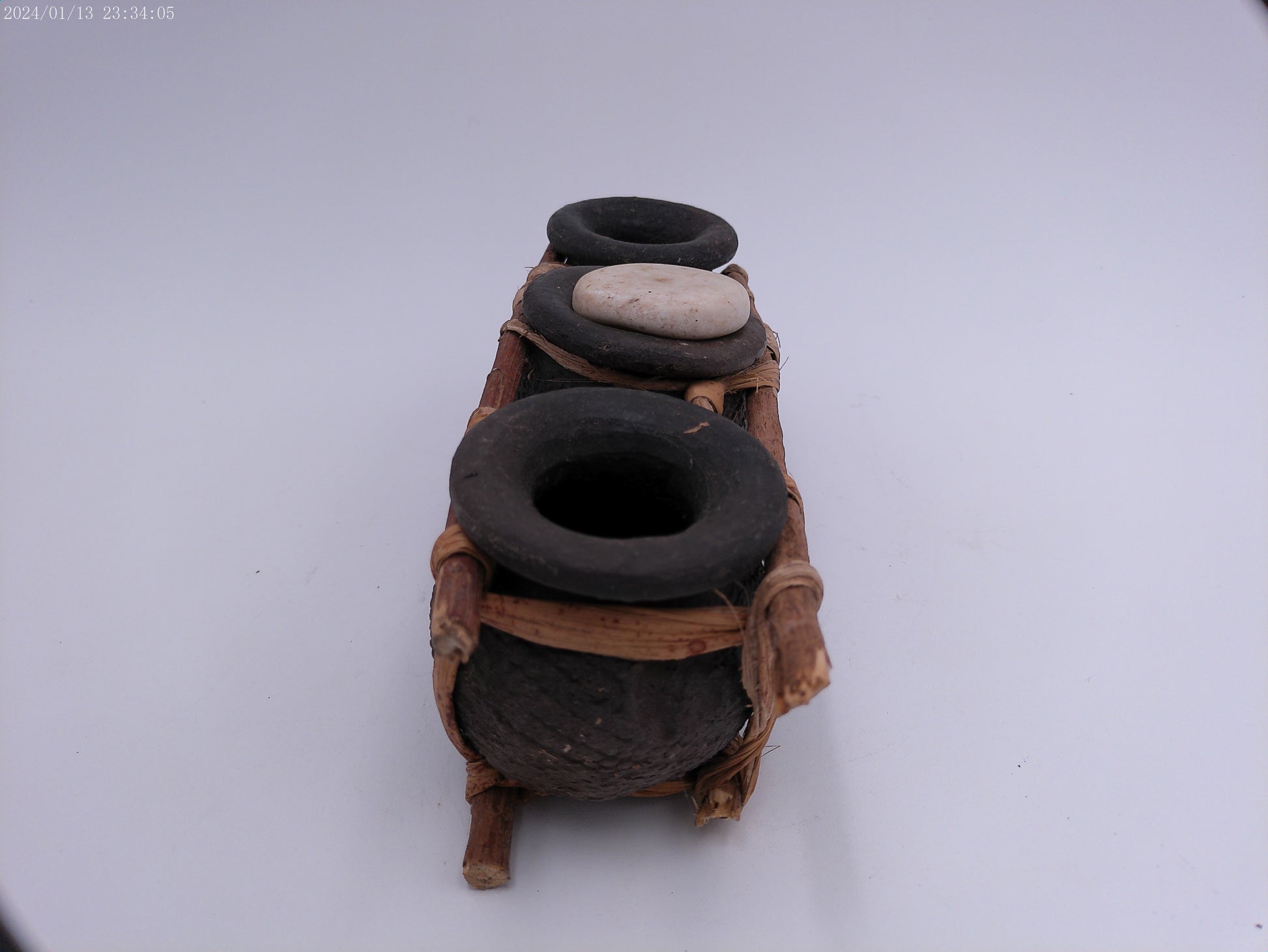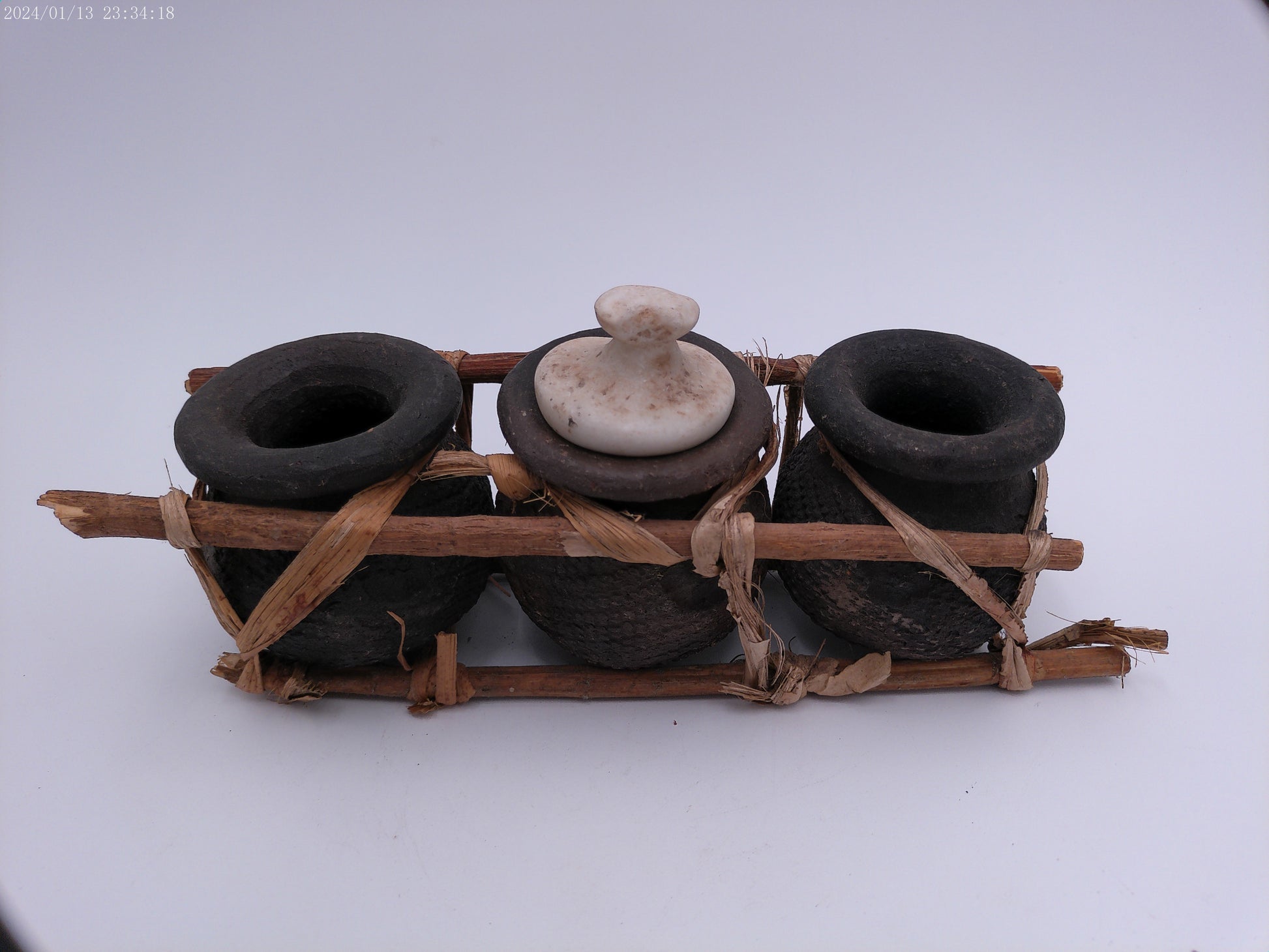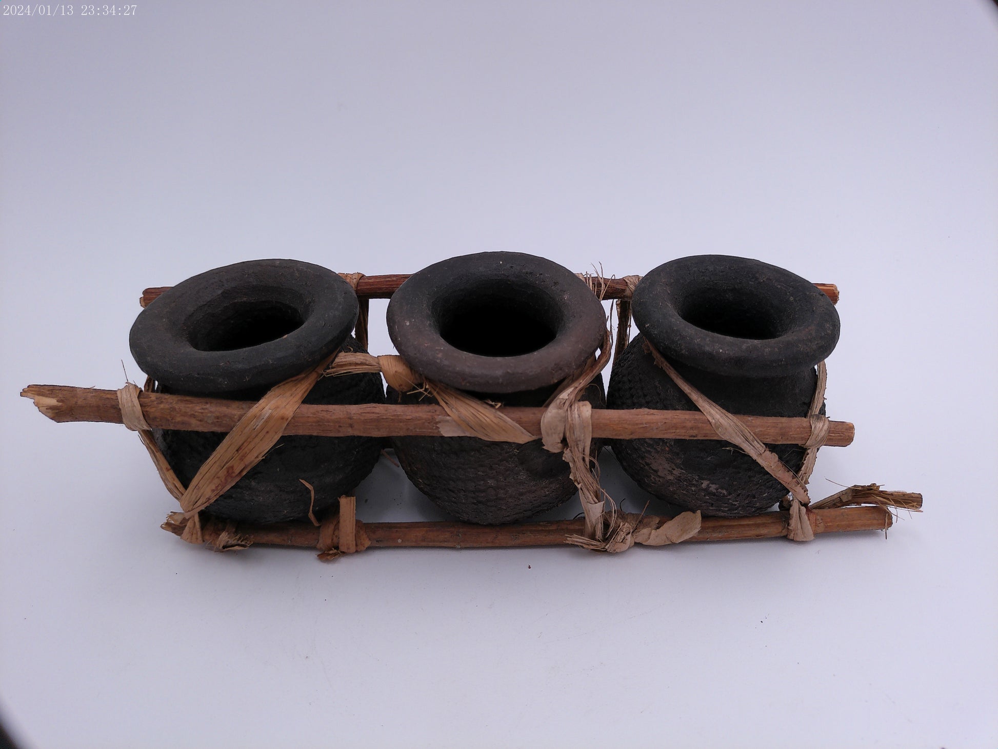 African Triple Clay Pot Set Kenya Storage Bamboo Clay Pots Boho Succulents