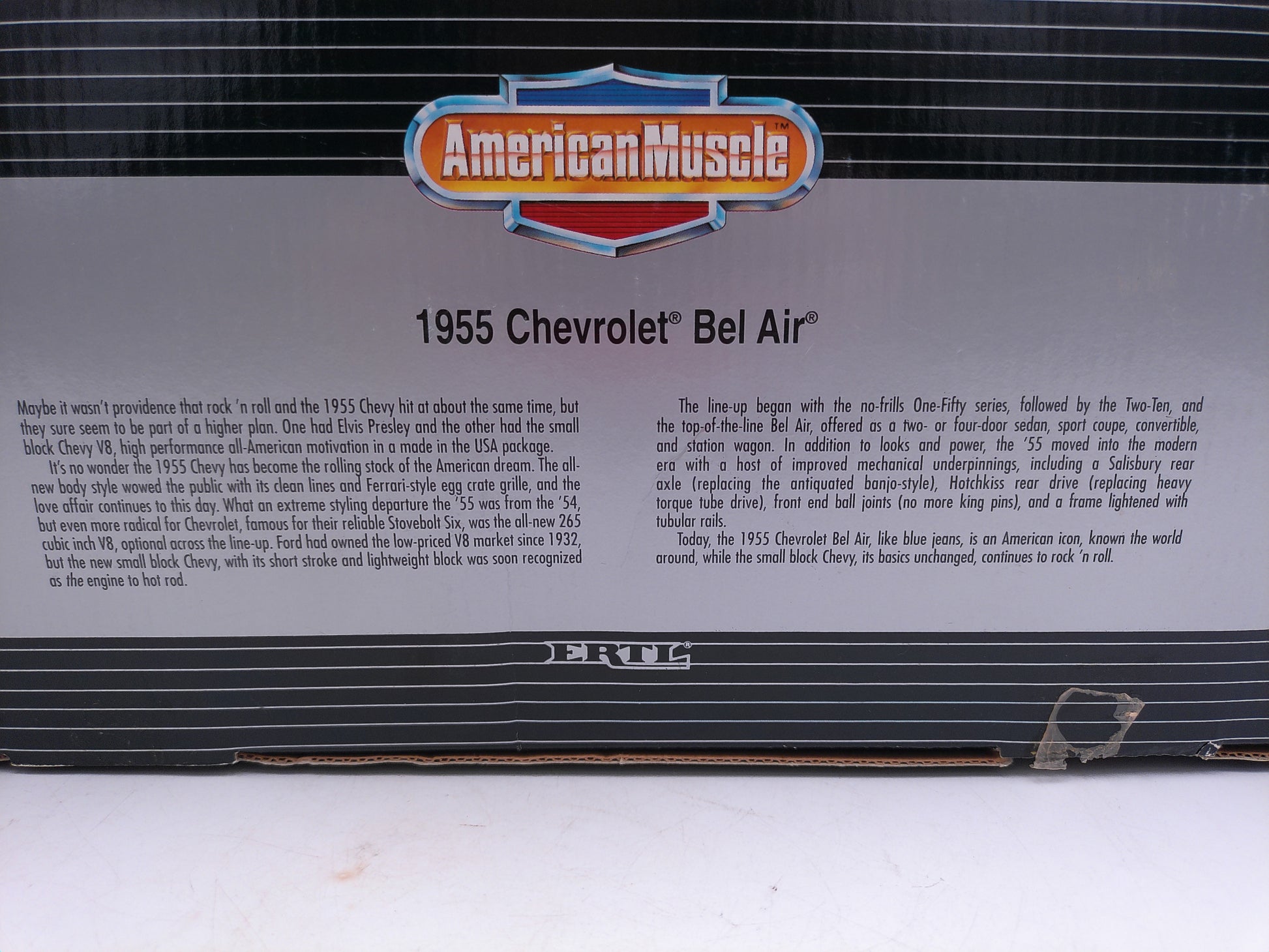 This American Muscle 1955 Chevy Bel Air Model Car is a high-quality and detailed replica of the iconic classic car. Made from durable materials, it boasts realistic features and sleek design. Add it to your collection or use it for display, this model car is a must-have for any car enthusiast.