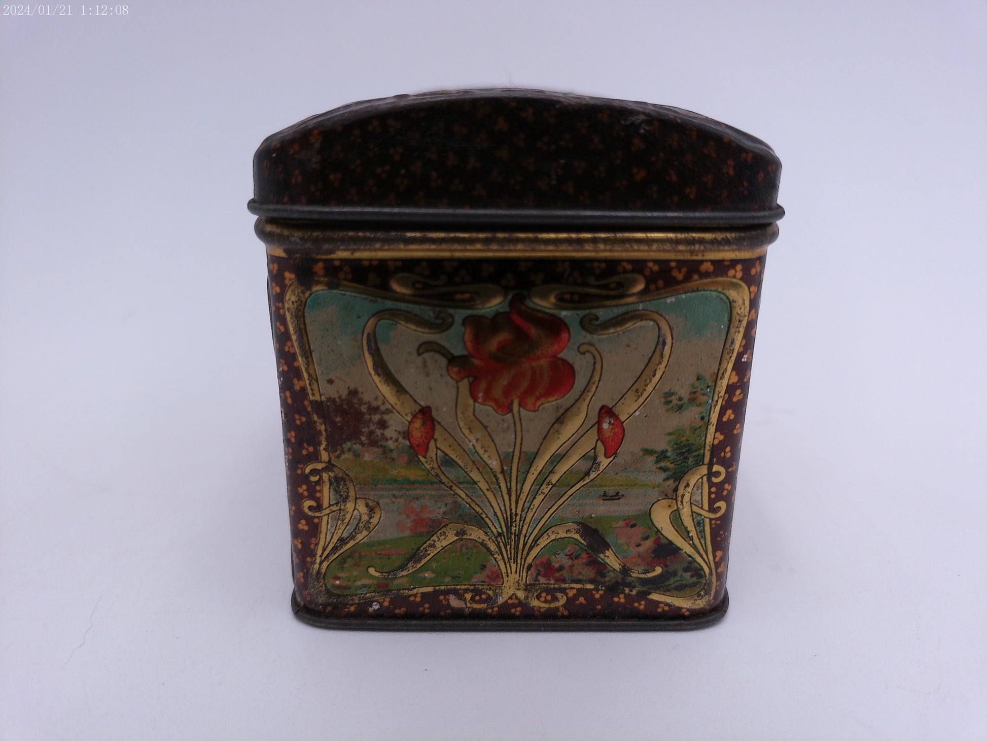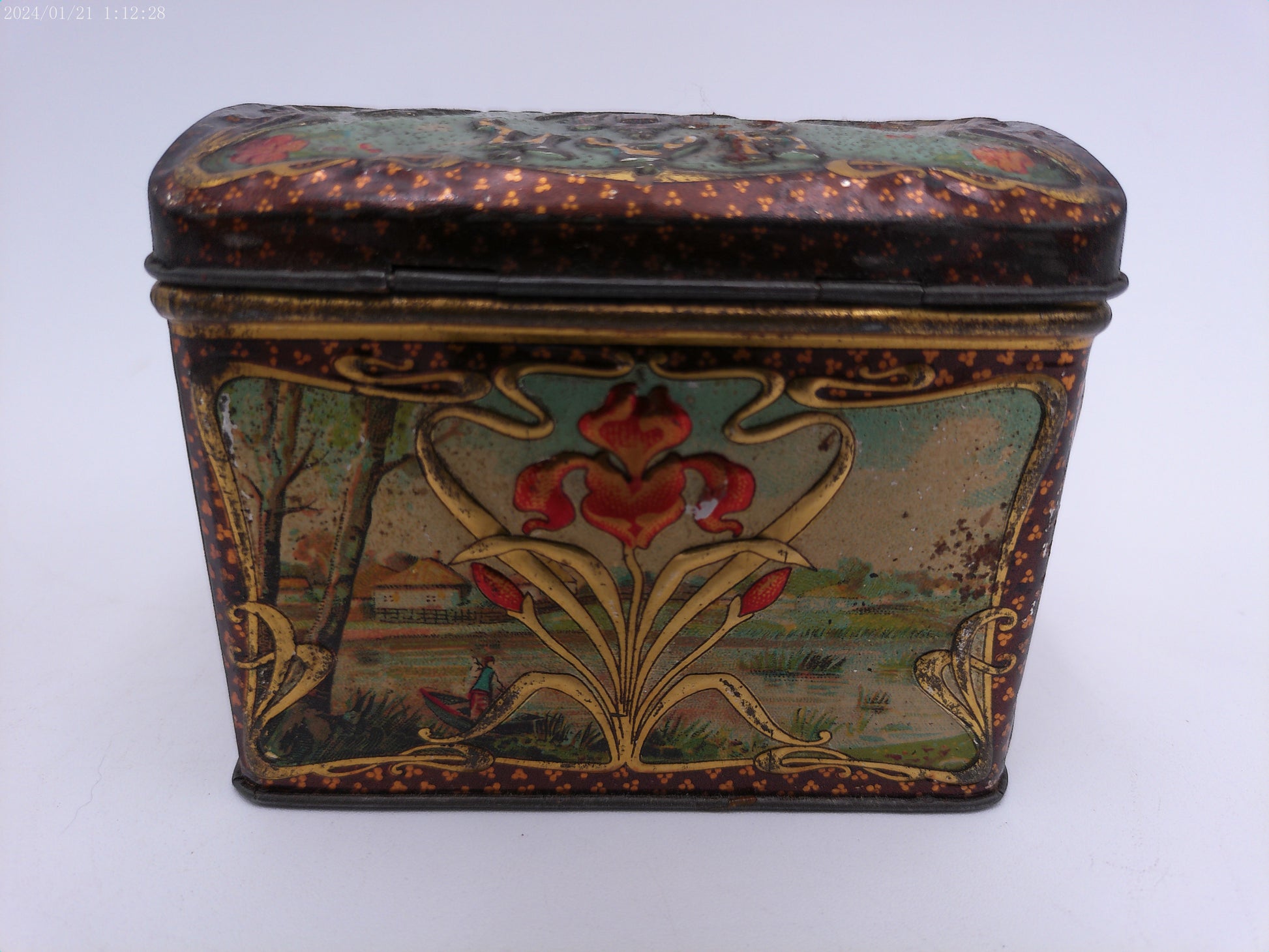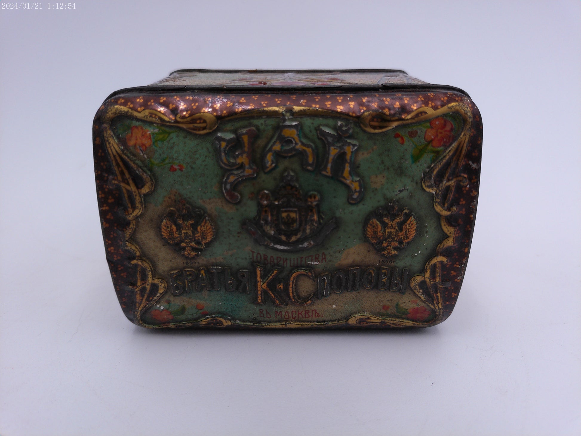 Antique ca. 1910 Russian Popov Brothers Tea Caddy Box hand painted TIN VINTAGE