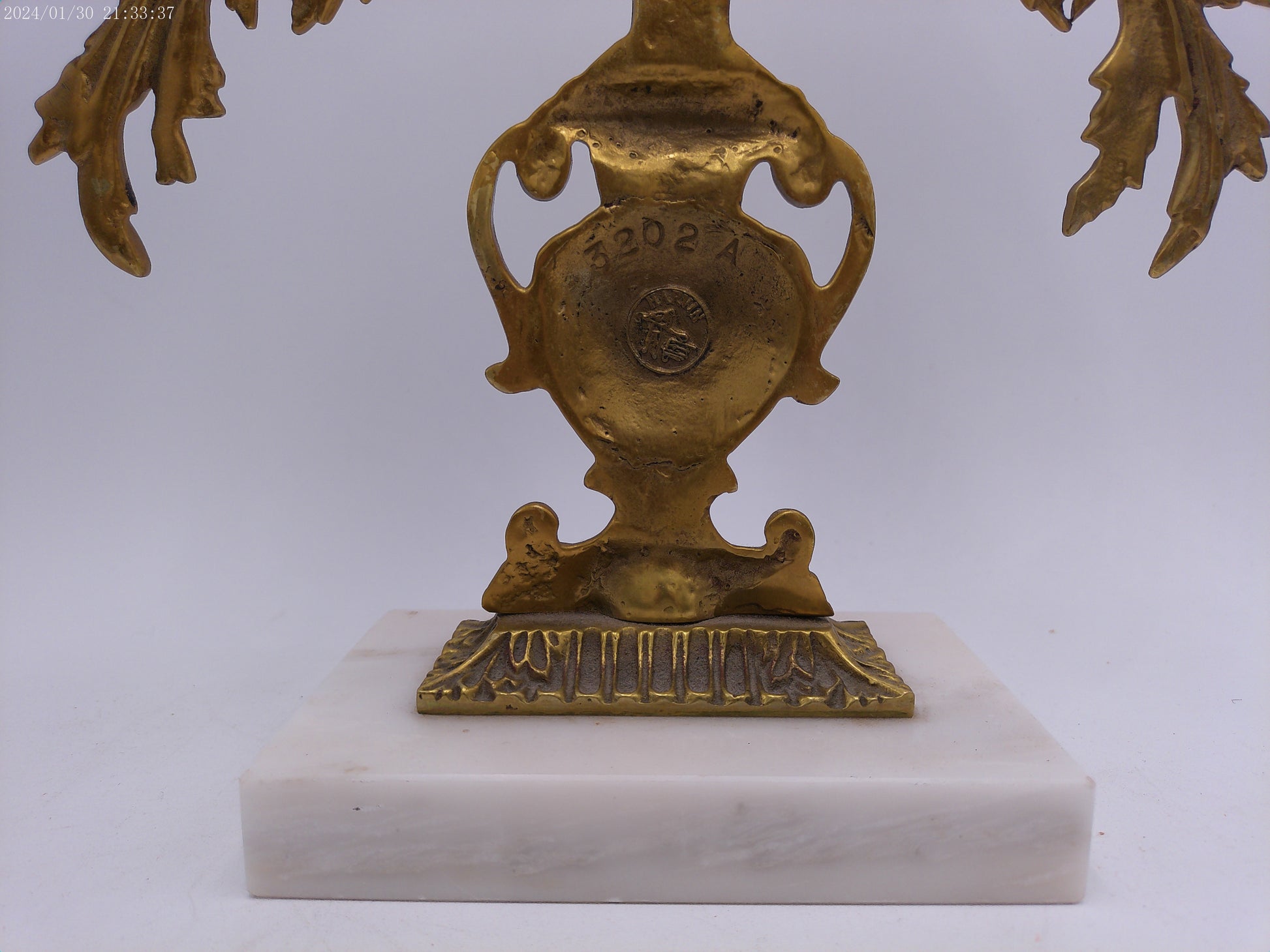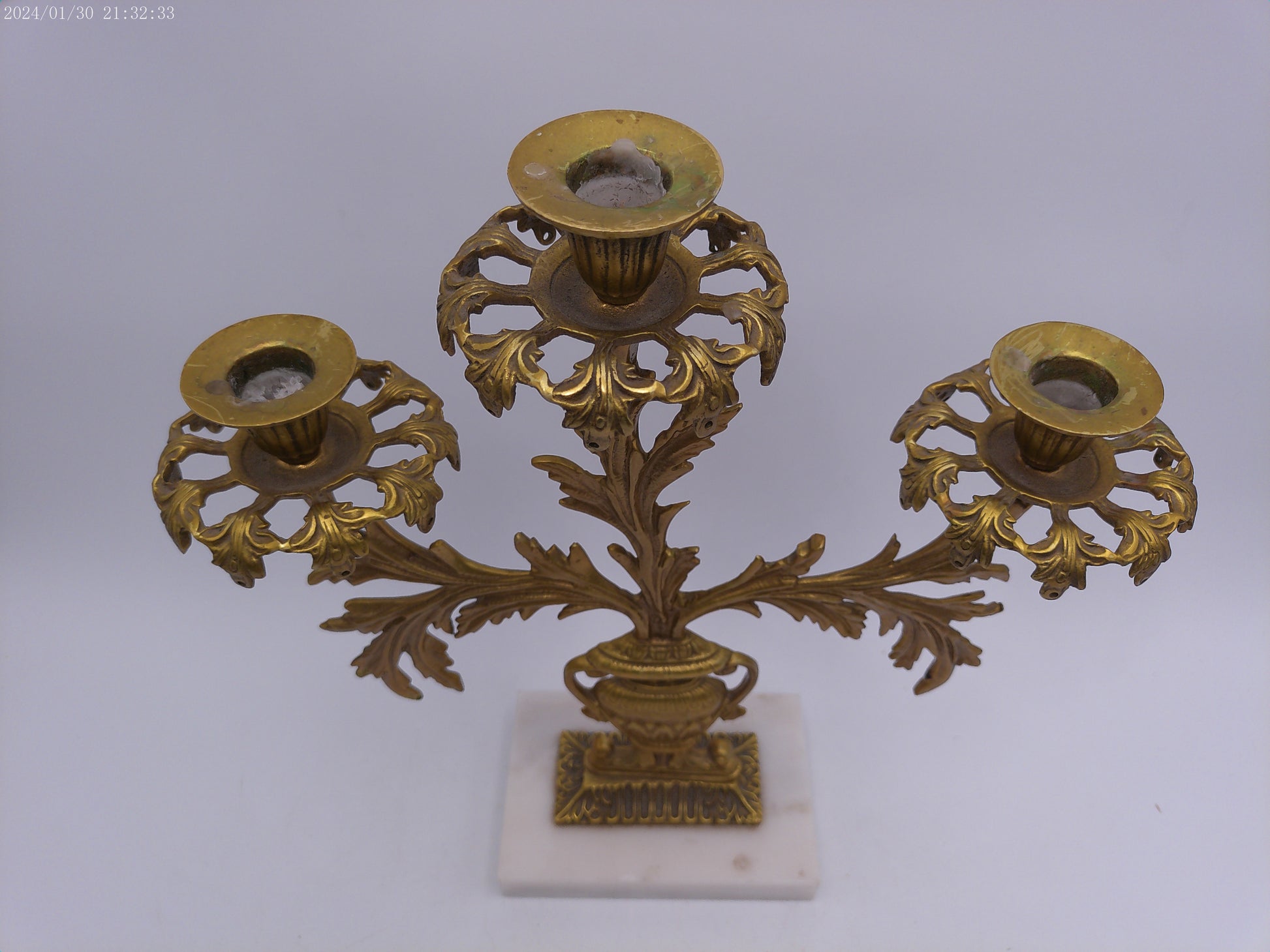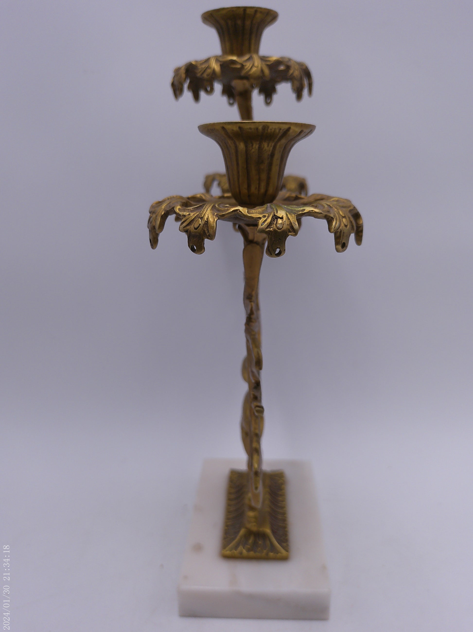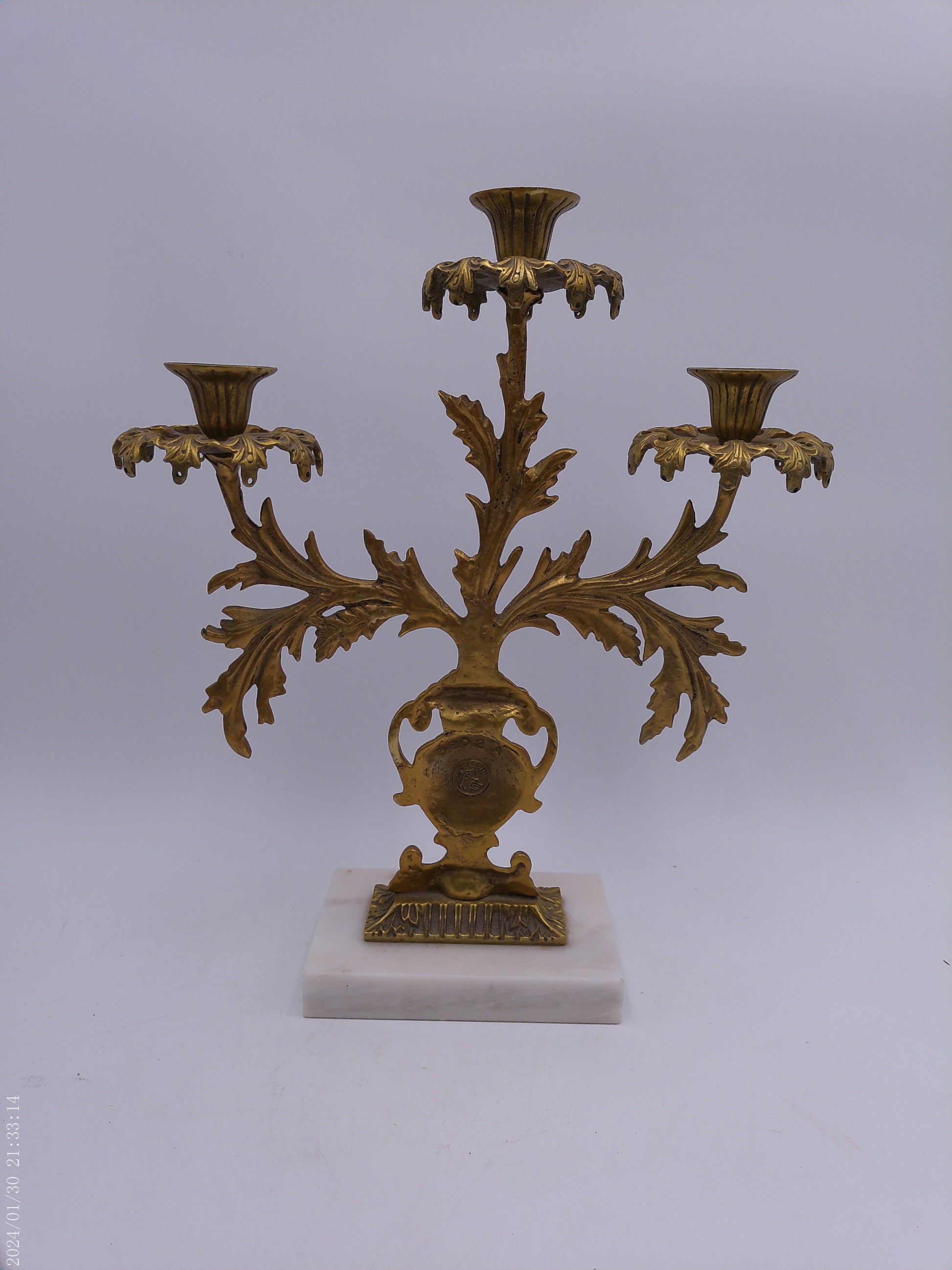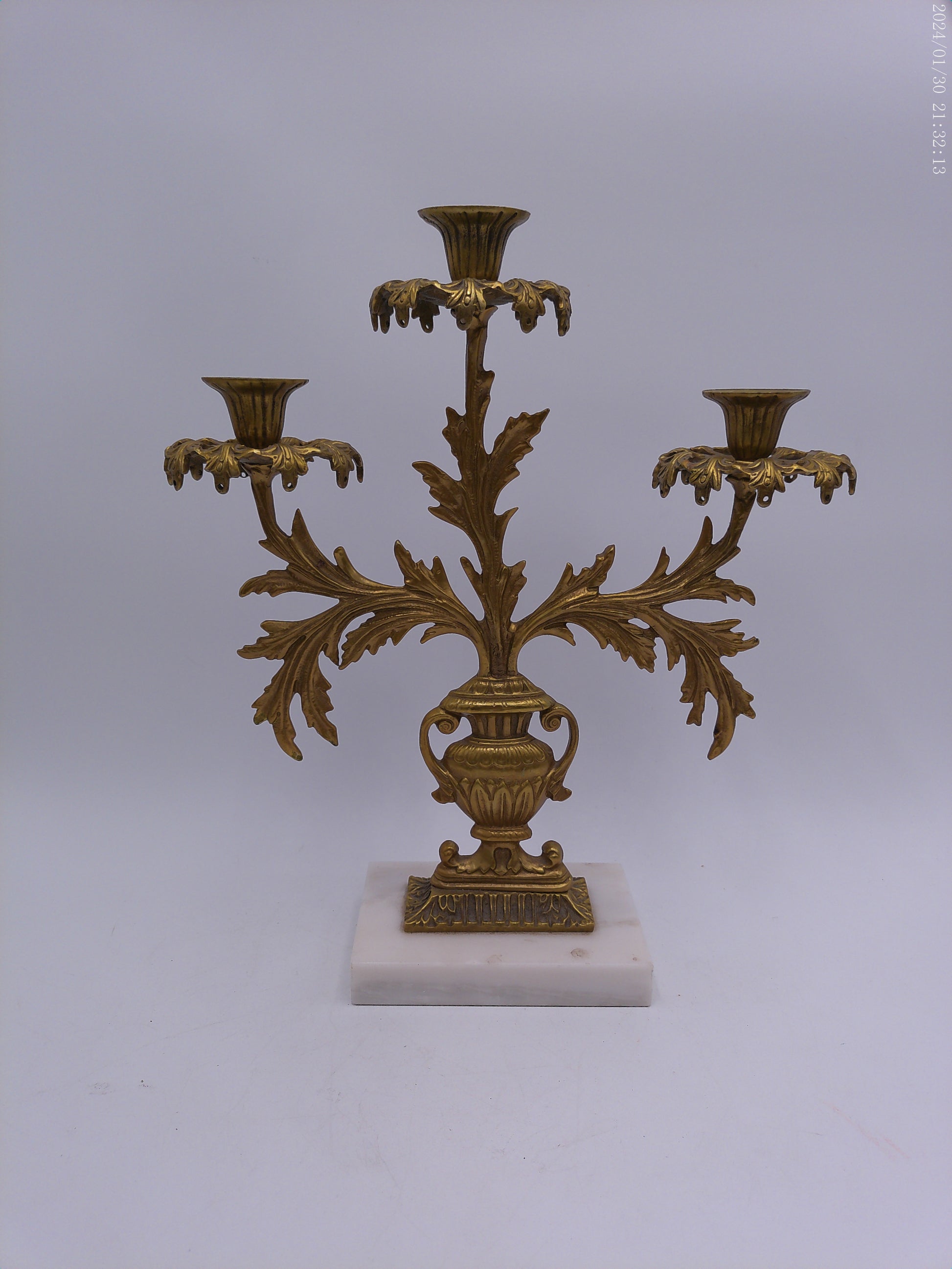 Antique Gilt Goddess Fortuna Triple Girandole Candelabra Candle Stand on Marble Base