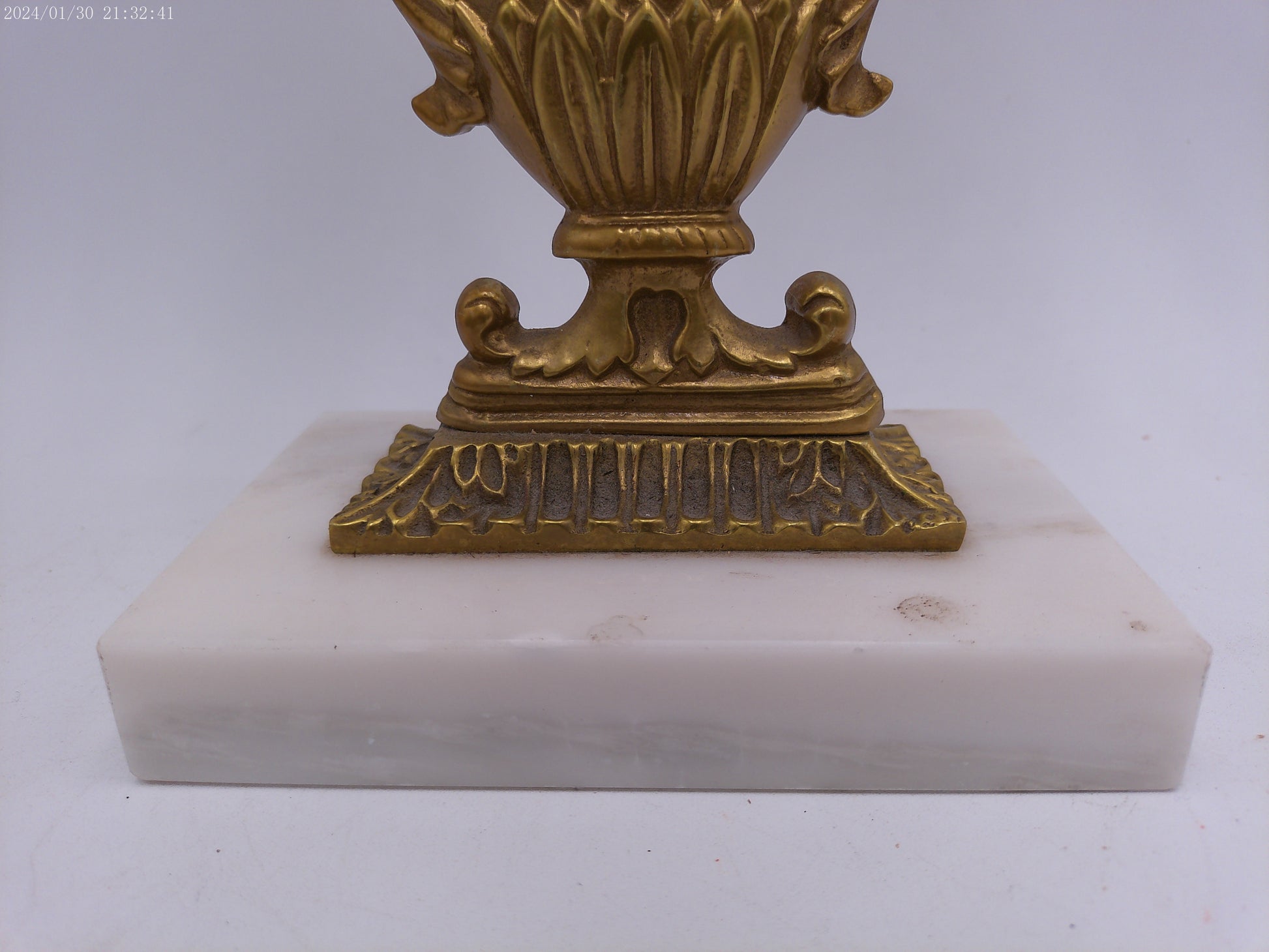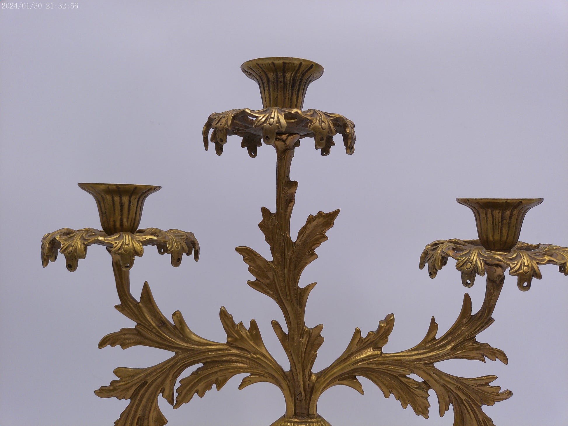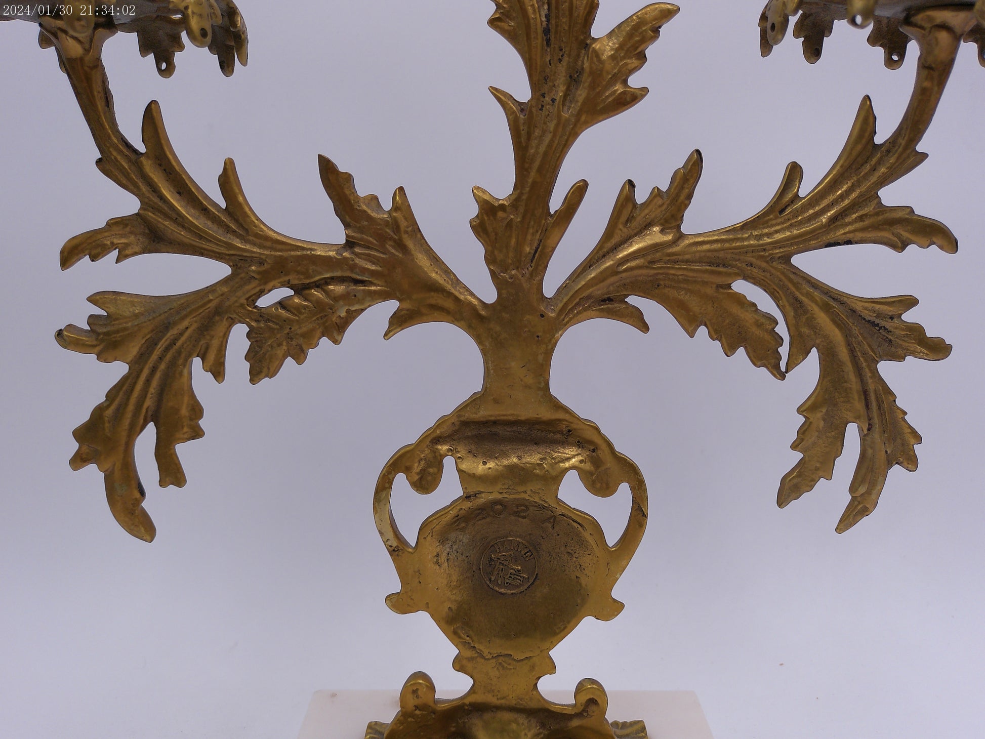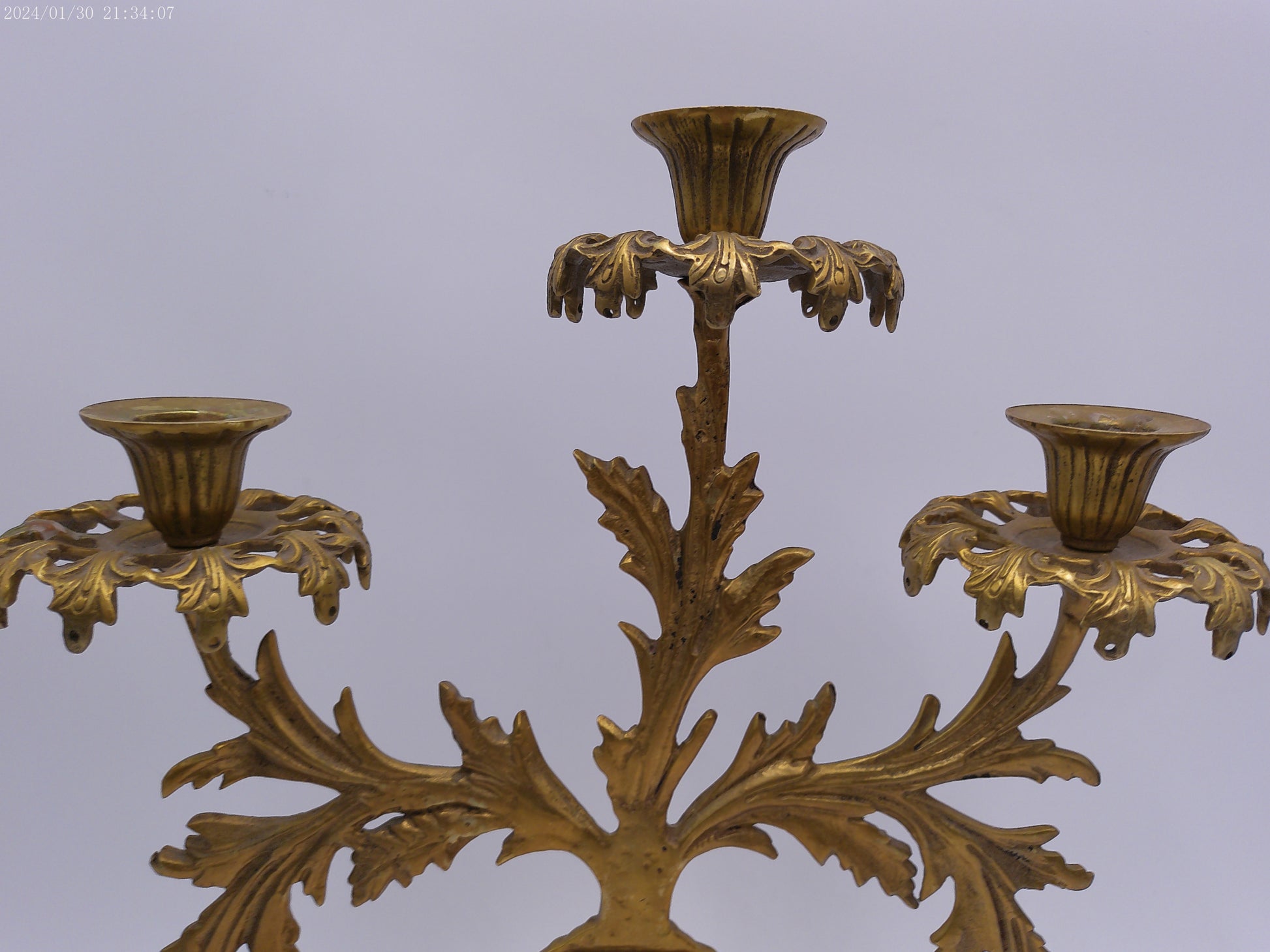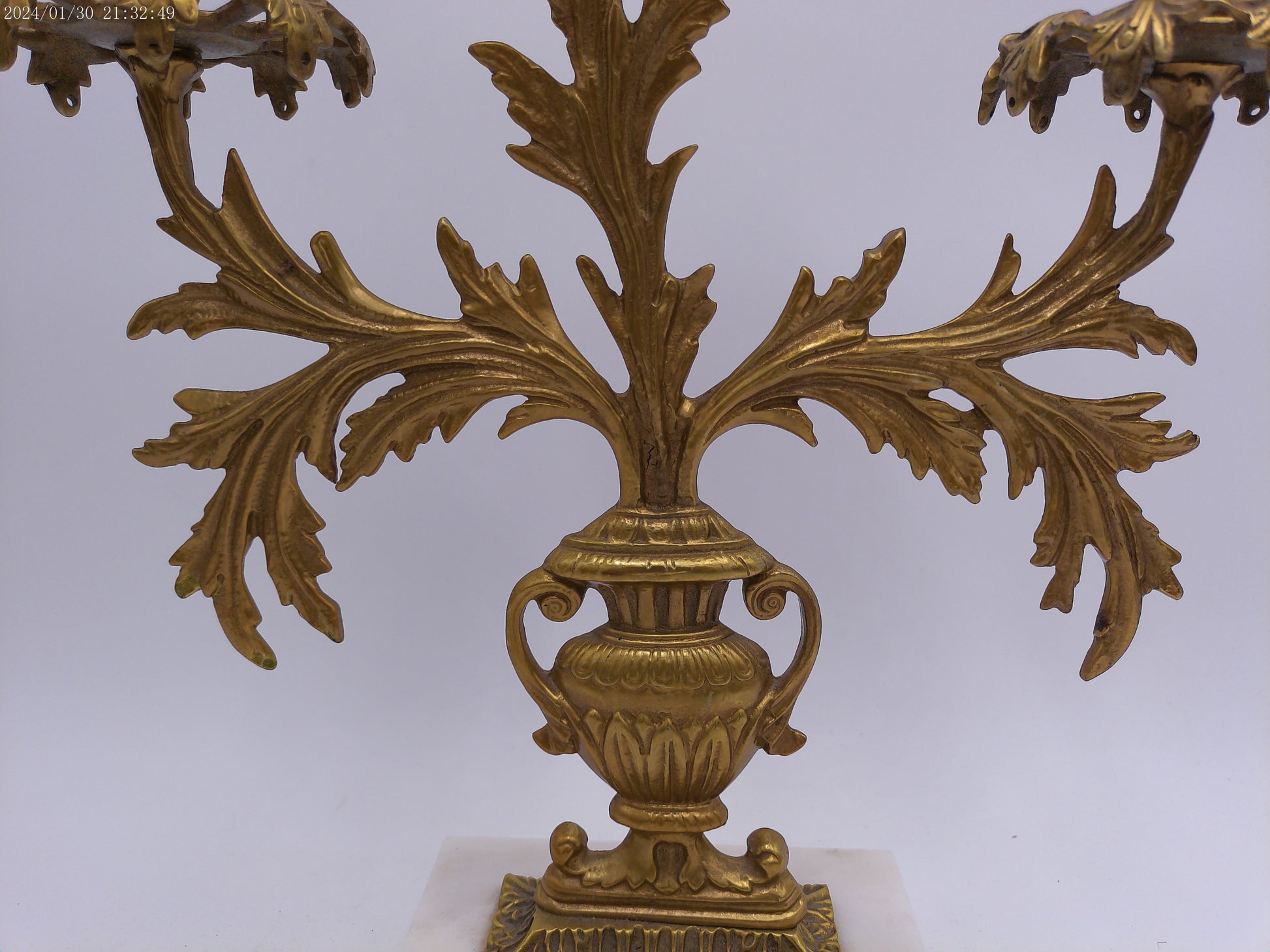 Antique Gilt Goddess Fortuna Triple Girandole Candelabra Candle Stand on Marble Base