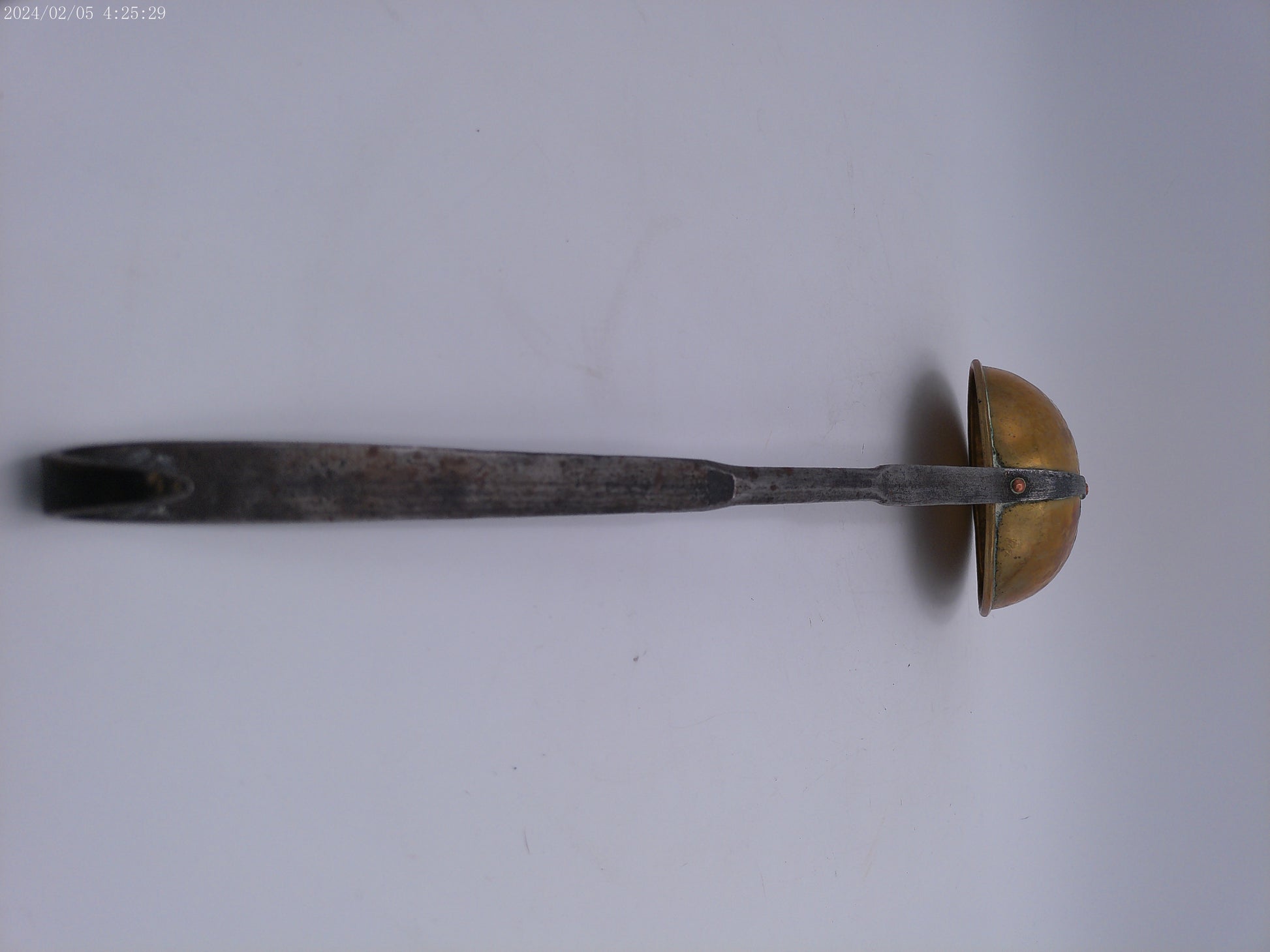 Antique Hand Forged Wrought Iron & Brass Ladle Dipper 21.5" Hook Hanger