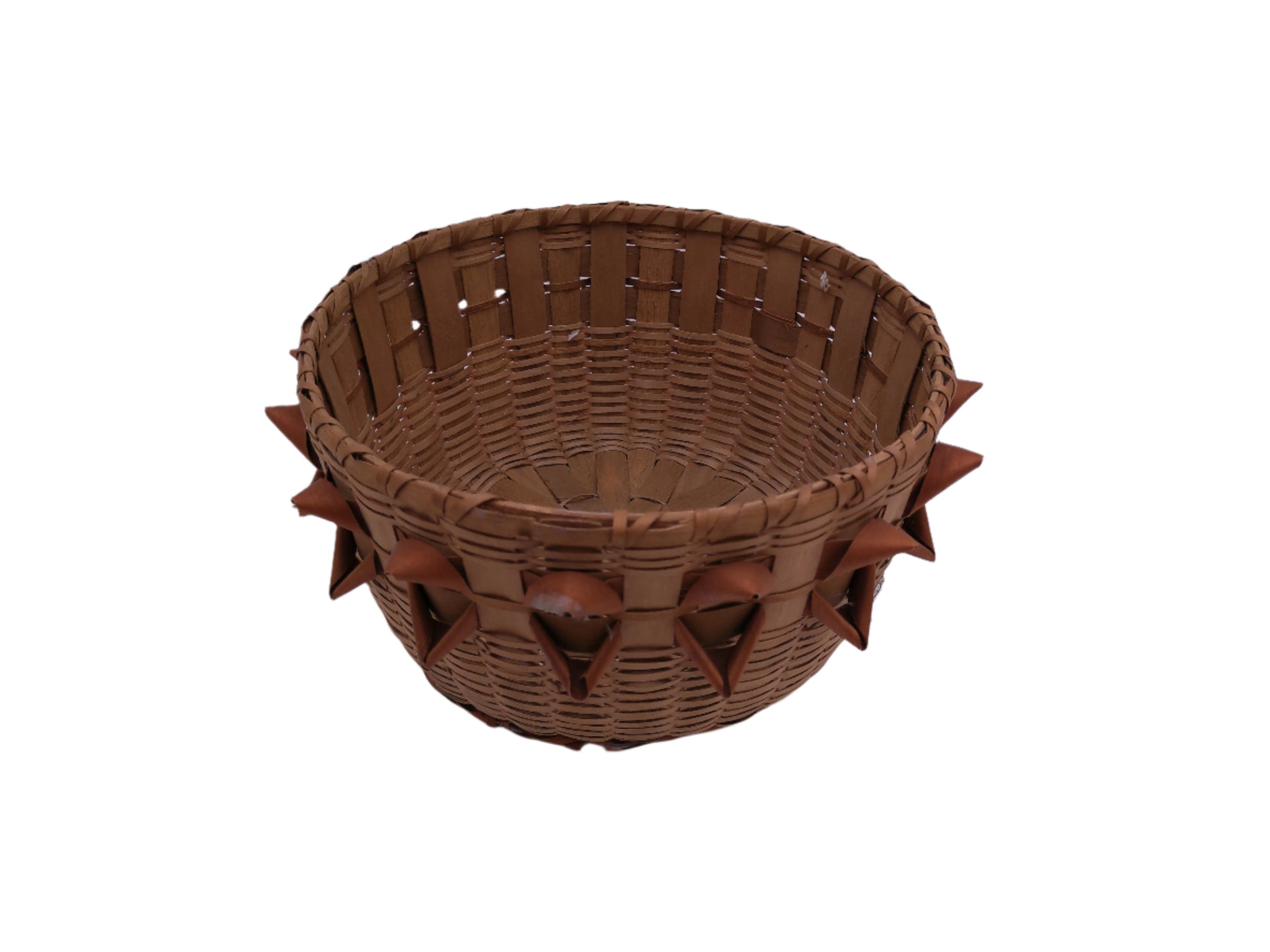 This antique basket was woven by Native American artisans from the Northern Atlantic region. With intricate detailing and rich cultural significance, it is a beautiful and unique piece of history. Made with natural materials, this basket is a tribute to Indigenous craftsmanship and tradition.