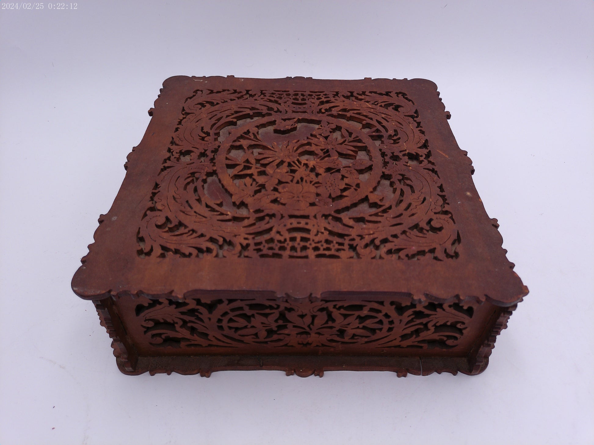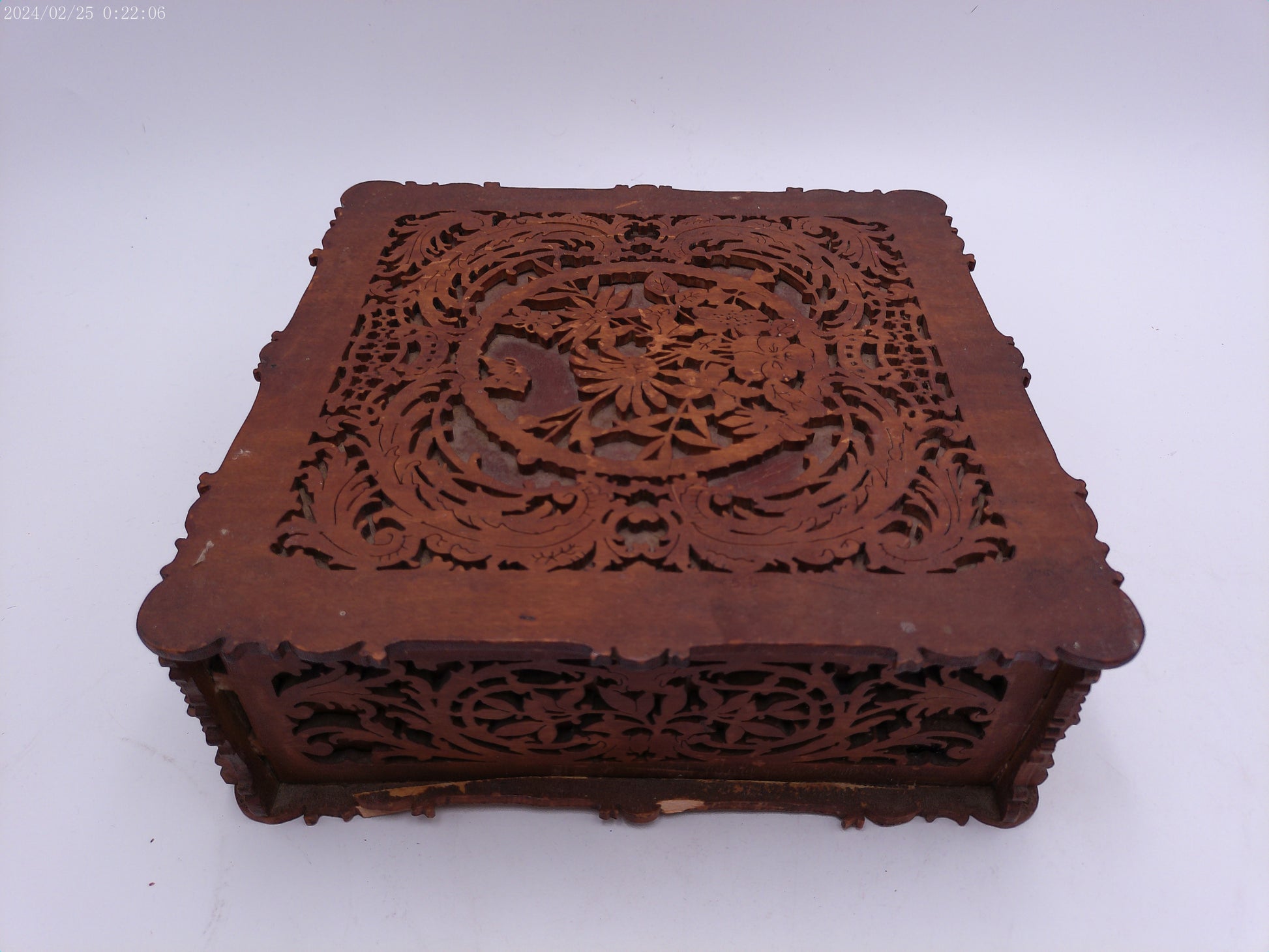 Antique Victorian Box Carved Wooden Fretwork 19th Century