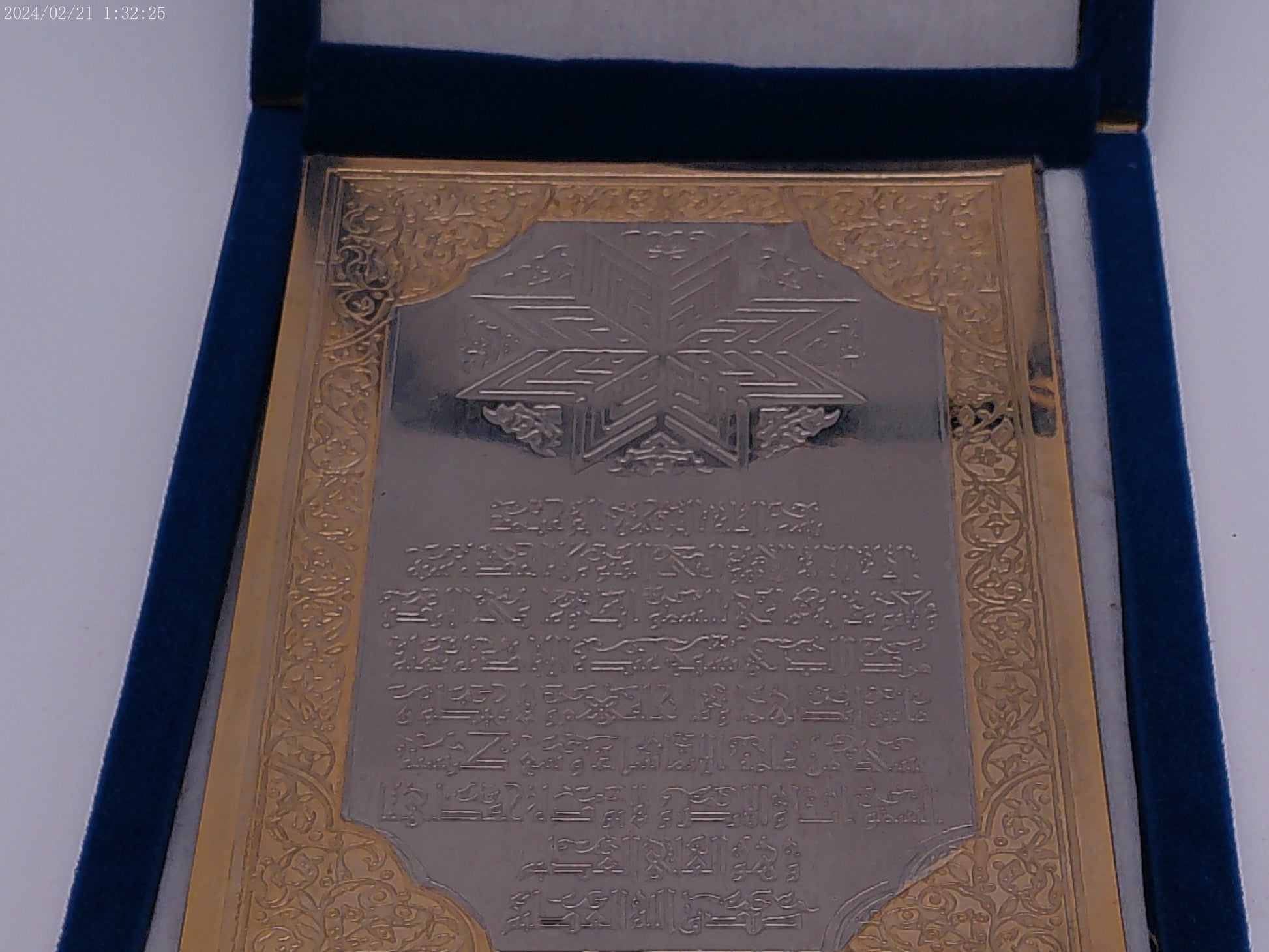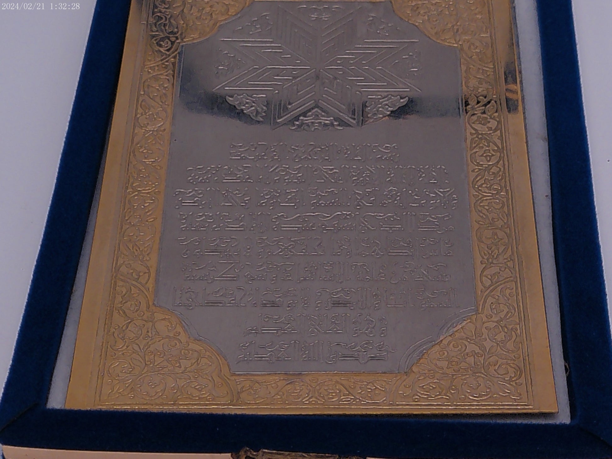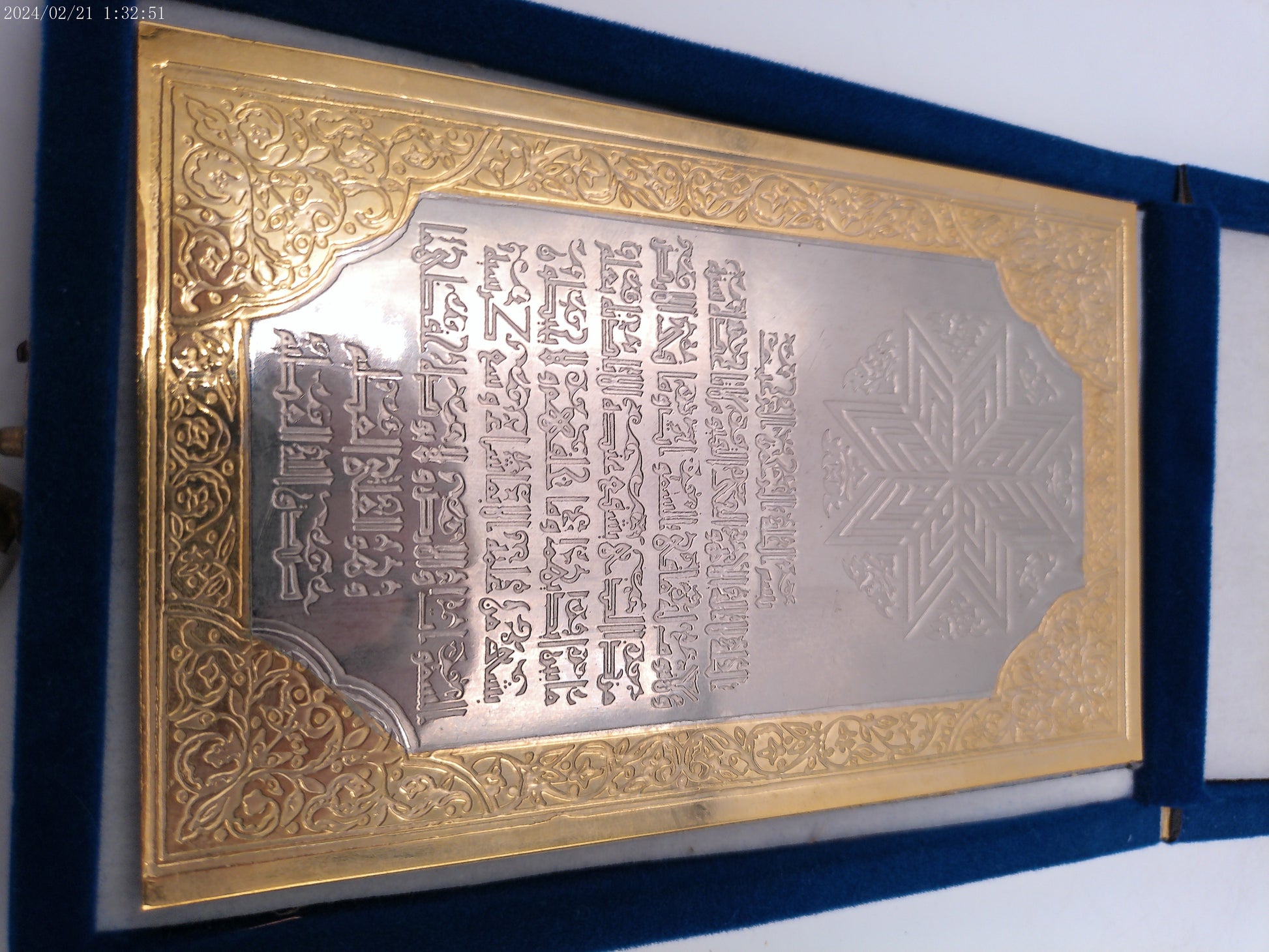 Arabic Calligraphy Picture on metal with Blue case vintage