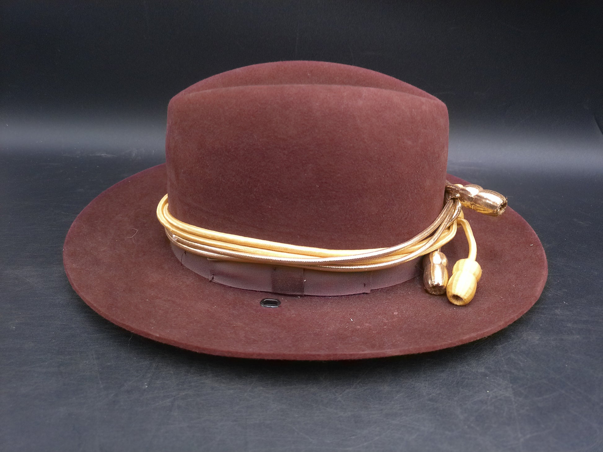 # sXXX Beaver Felt W. Alboum Hat Co. Cavalry Campaign Hat Step into history with this distinguished cavalry campaign hat, expertly crafted from premium beaver felt by the renowned W. Alboum Hat Co. This iconic style combines authentic period design with superior craftsmanship, featuring a structured crown and wide brim that delivers both timeless elegance and practical sun protection. Perfect for historical reenactors, collectors, or anyone who appreciates quality headwear with genuine character. The luxurious beaver felt construction ensures durability and a refined appearance that only improves with age. Own a piece of American heritage that commands attention and respect.