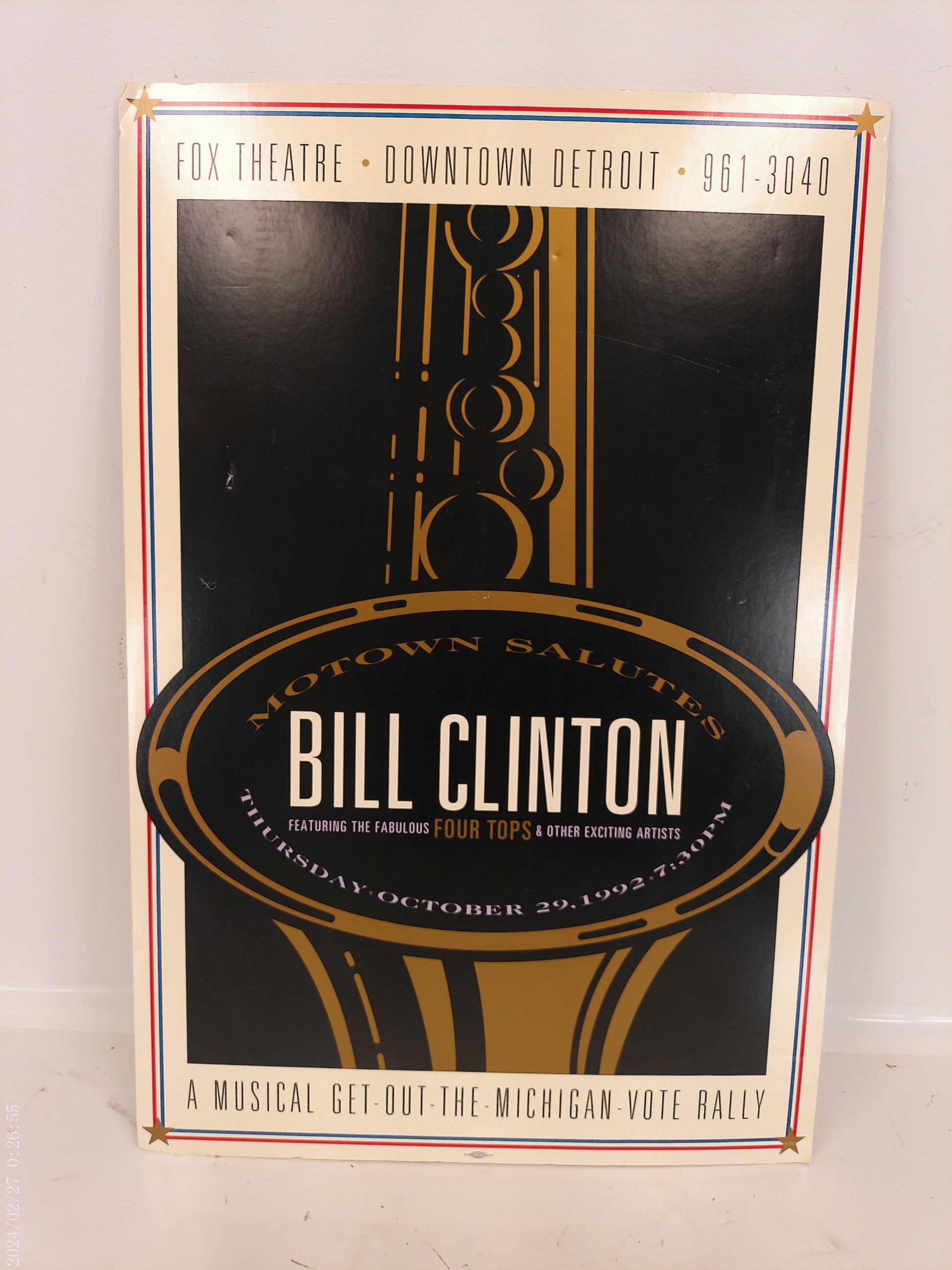 Art Print Bill Clinton Musical Get the Vote Out Detroit Vintage 1992 The Four Tops Fox Theater