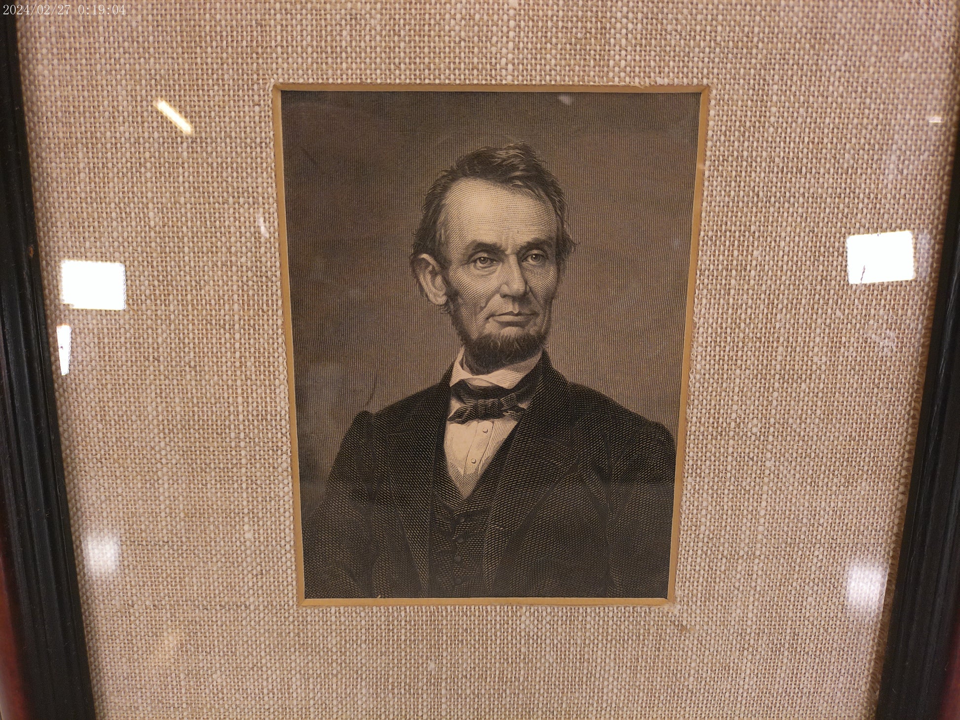 This exquisite art piece features a rare engraving of Abraham Lincoln from the 1800's. With expert craftsmanship and attention to detail, this one-of-a-kind artwork captures the historical significance of the iconic figure. A must-have for any art collector or history enthusiast.