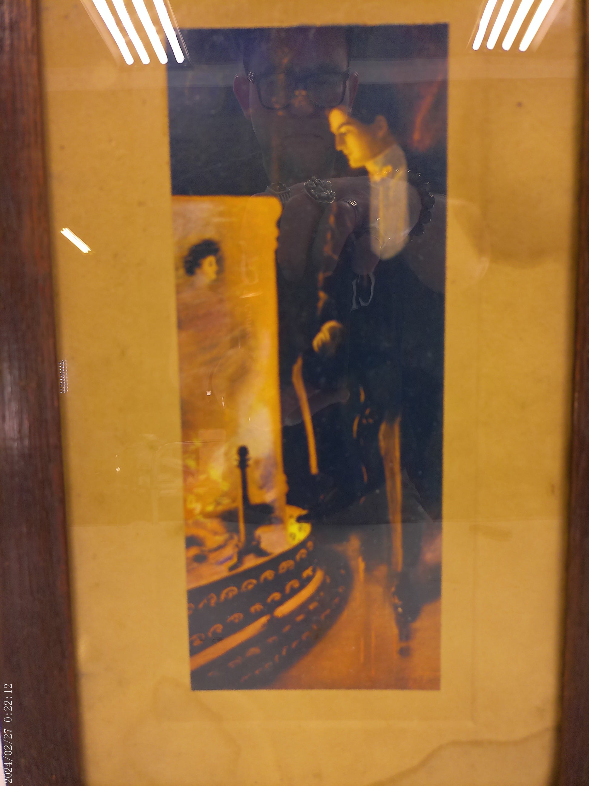 Art Antique 1900's Alfred James Dewey "Fireflights" Lithograph Print, Original Frame