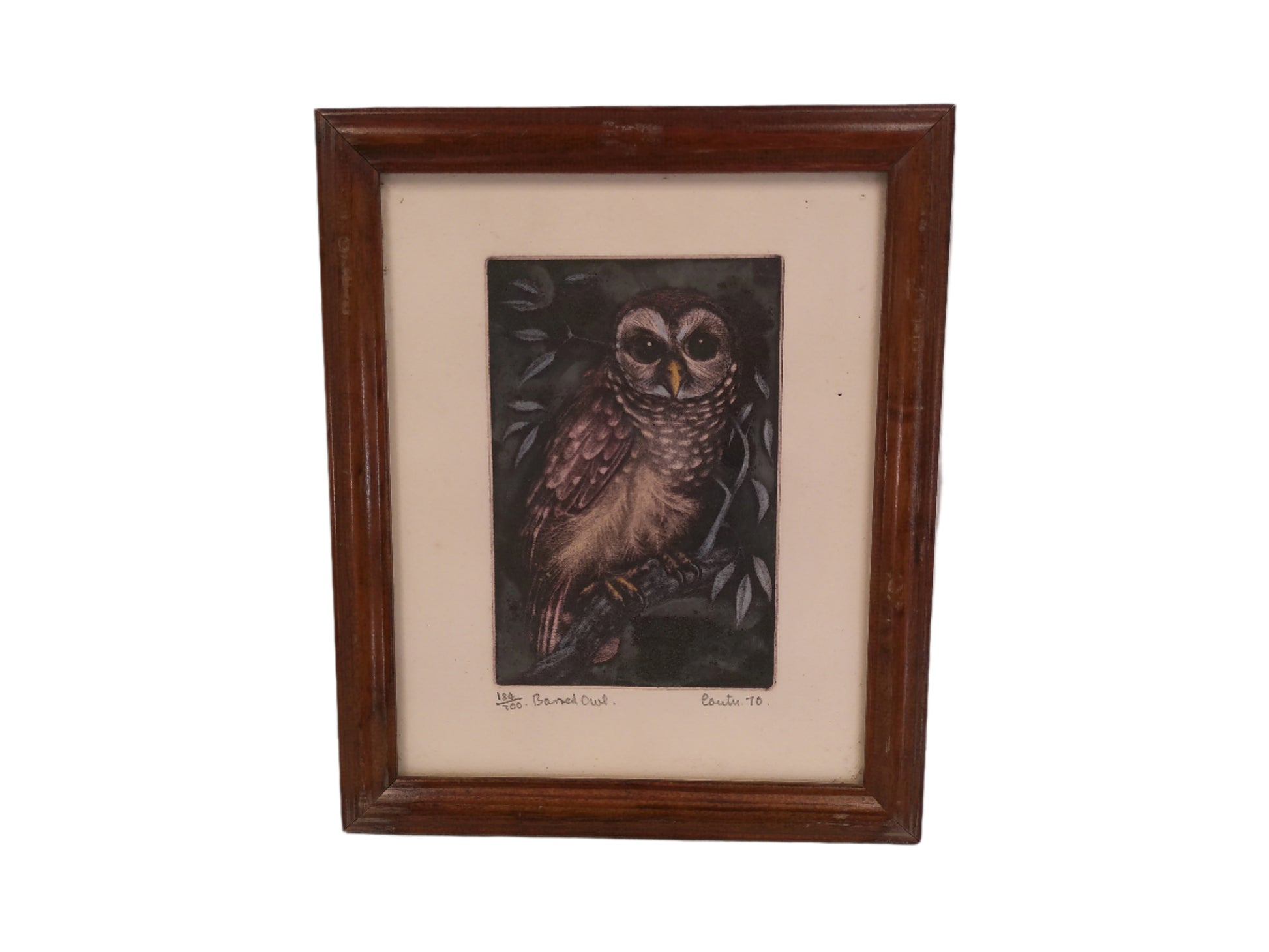 Art Barn Owl by Jack Coutu Signed Print Limited Edition Etching
