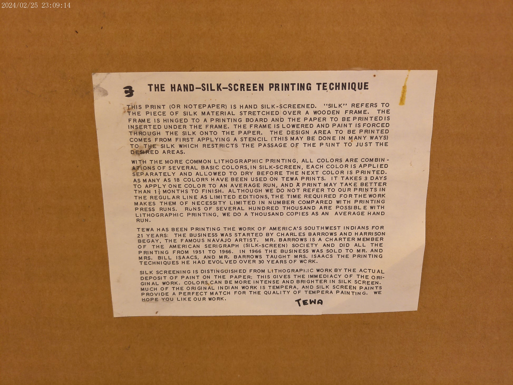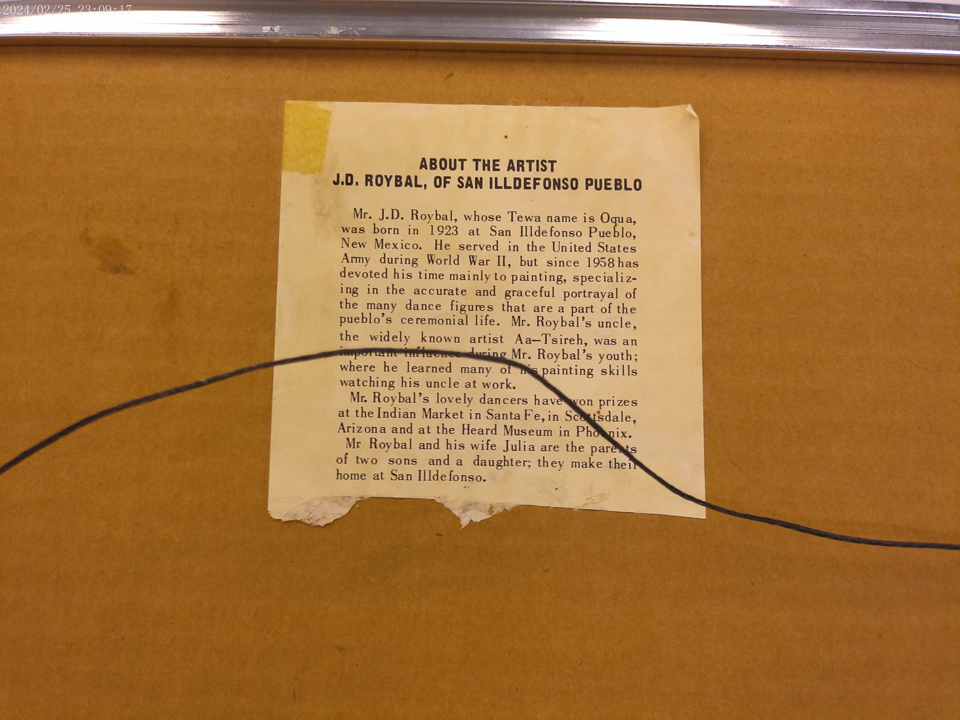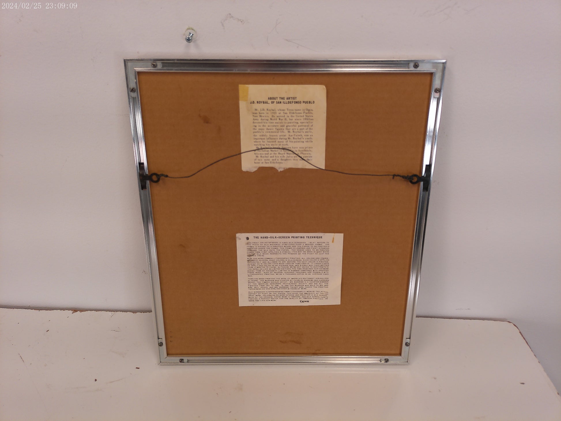 Add a touch of culture and elegance to your home with this beautiful Art by J.D. Roybal American Indian Silk printing print. Made with precision and attention to detail, this print showcases the rich history and traditions of the American Indian people. Enhance any room with this unique and expertly crafted piece.