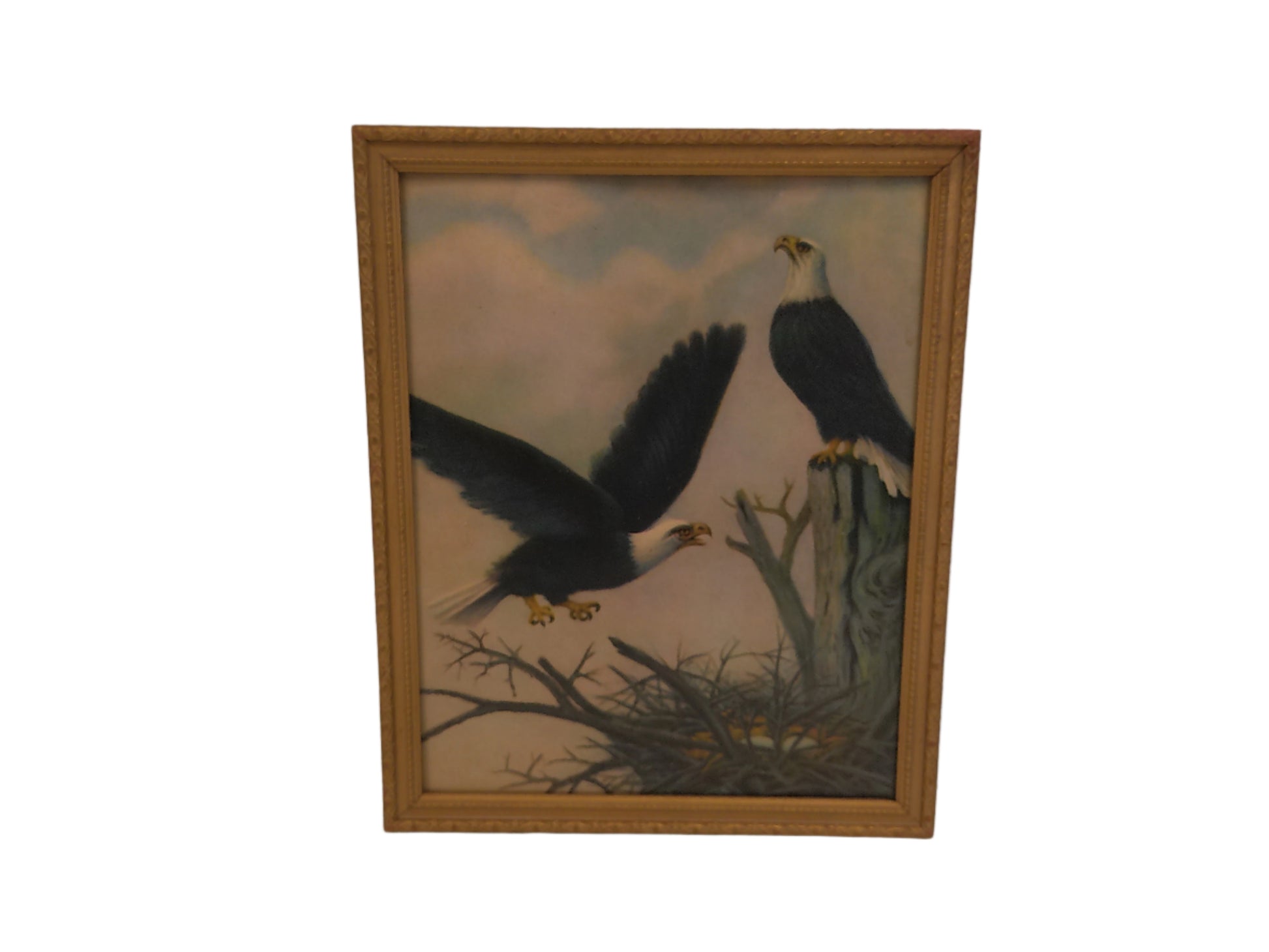 Art Painting Eagle Parents Protecting their Eggs Wood Framed