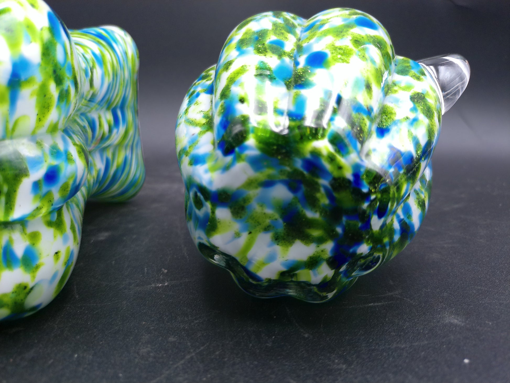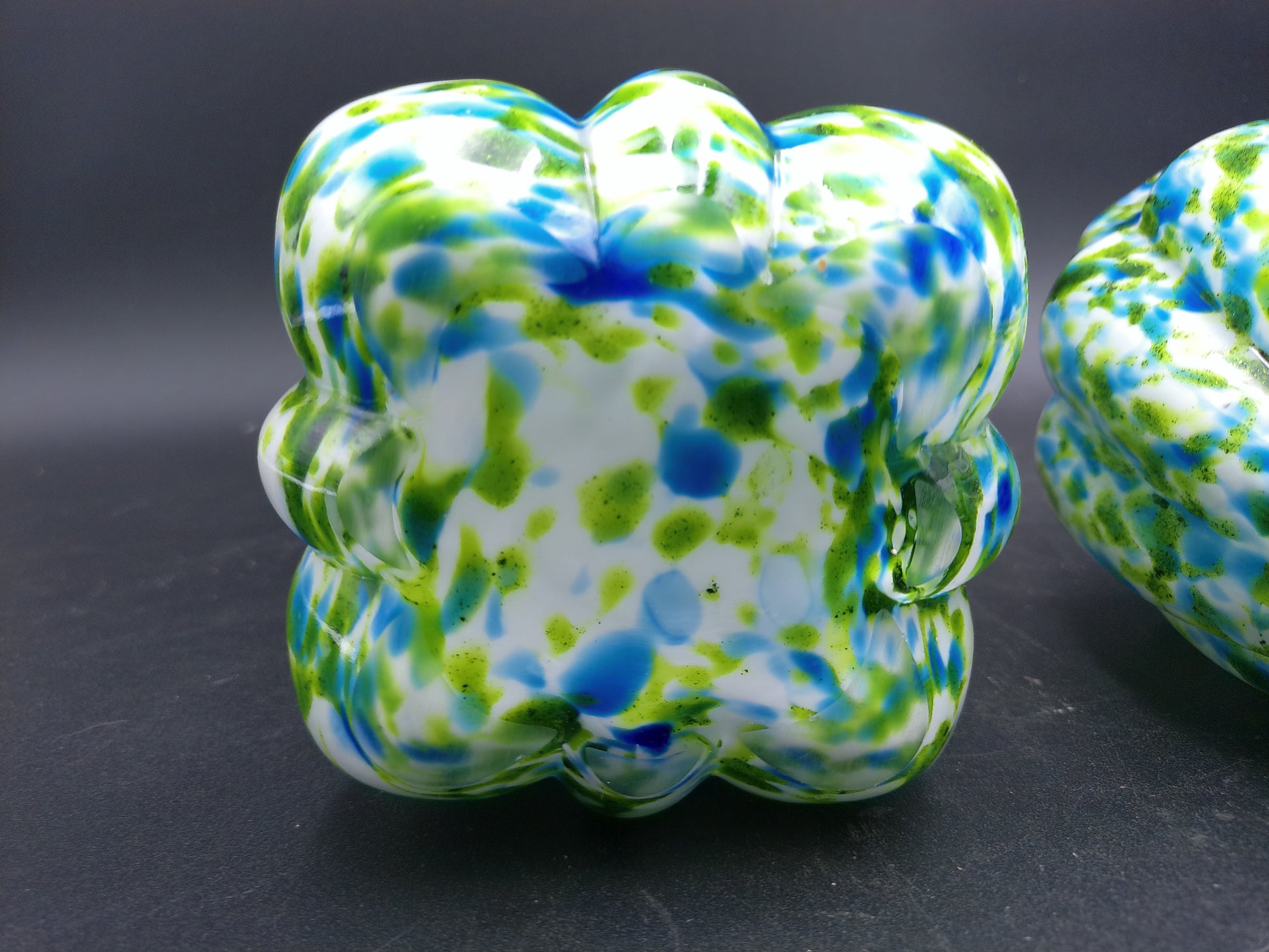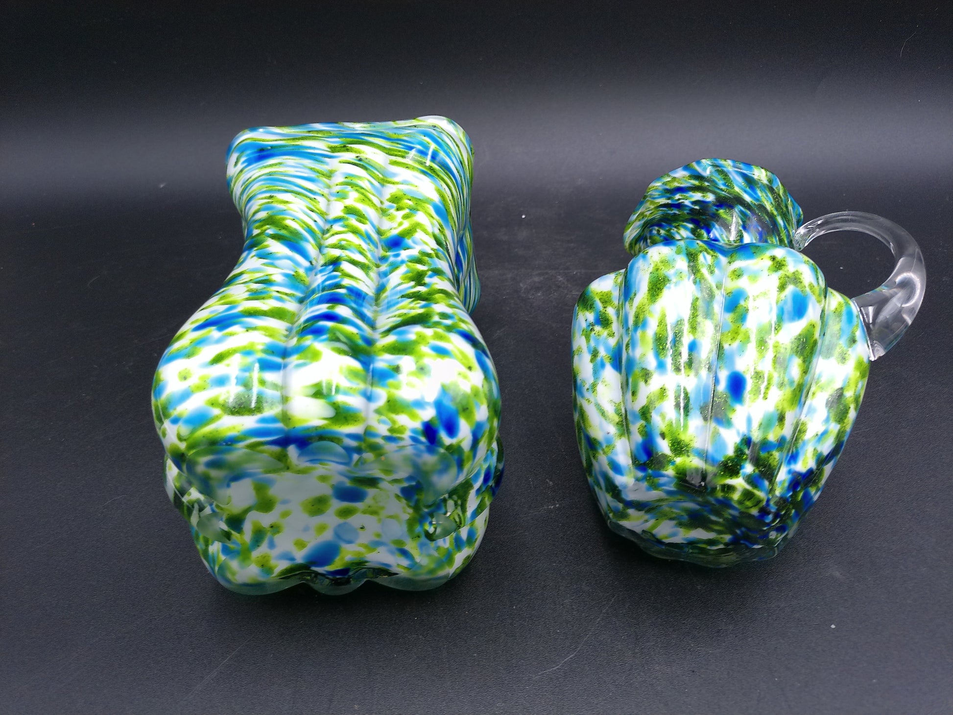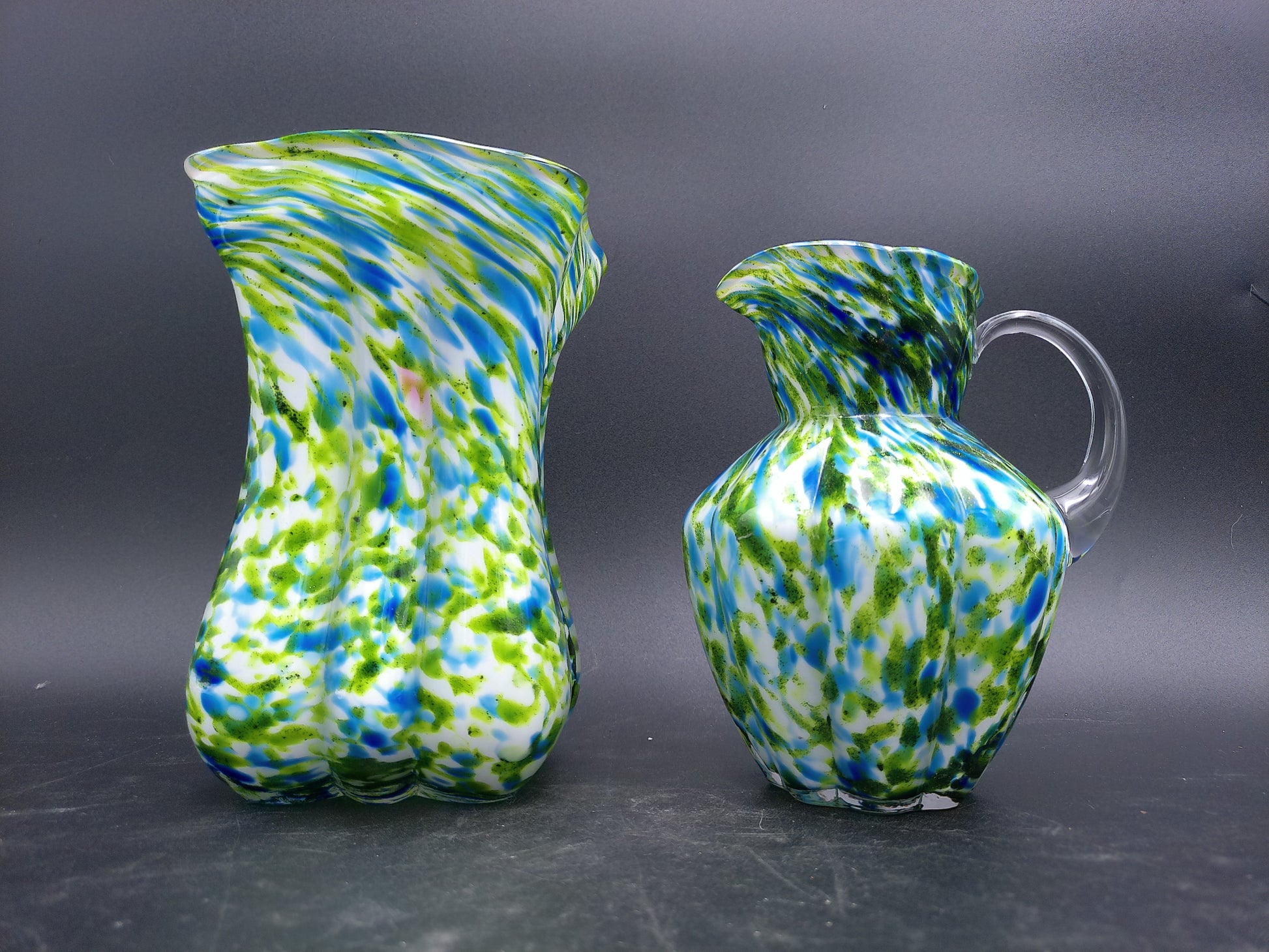 Art Glass Porcelain Green Large Pitcher 10” Blue Aventurine and Vase