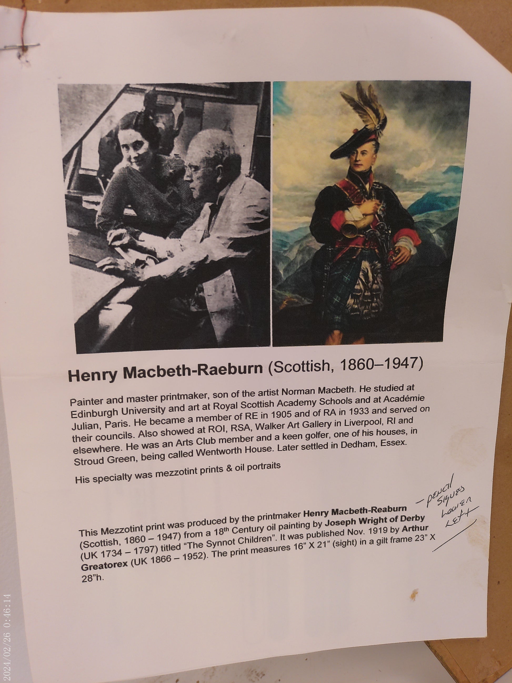Art Henry Macbeth Raeburn Mezzotint print Signed Rare Lithograpth "The Synnot Children"