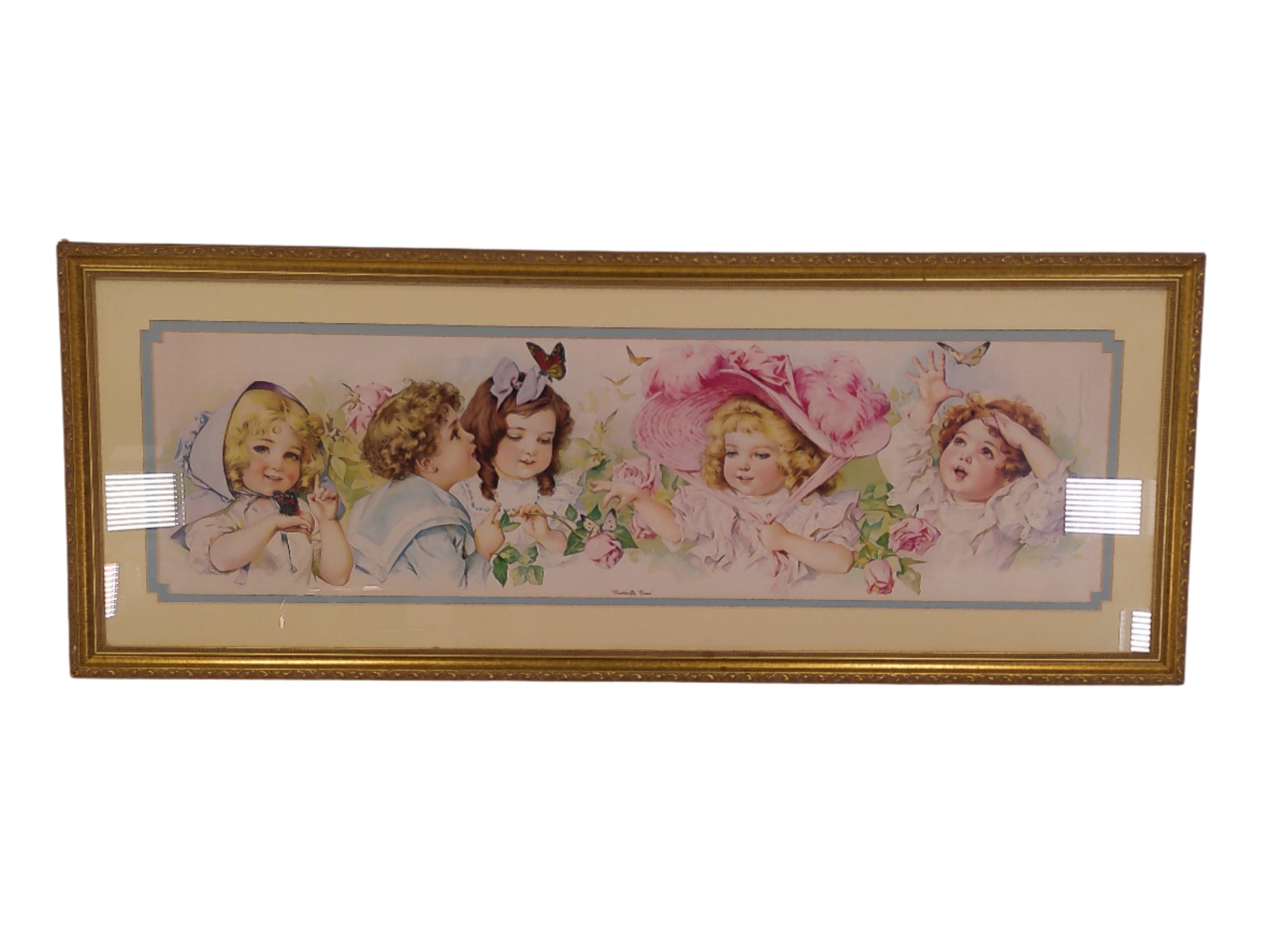 Maud Humphrey “Butterfly Time” Chromolithograph: Yard Long Print, Signed by Bogart's Mom, 1903, New Frame & Glass, Victorian Children