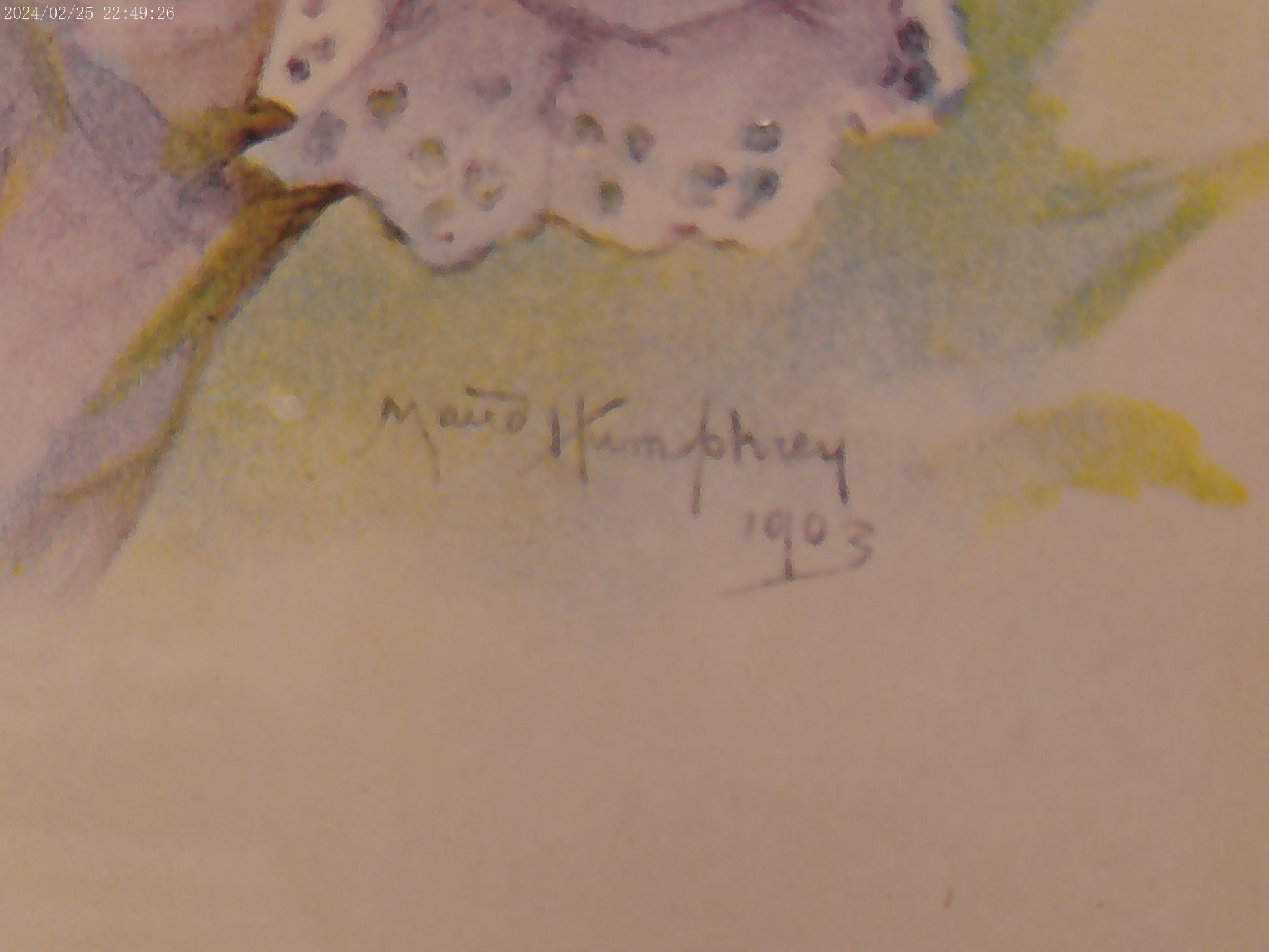 Experience the nostalgia of Victorian childhood with Art Maud Humphrey's "Butterfly Time" print. This chromolithograph, signed by Bogart's mother in 1903, comes in a new frame and glass, making it a timeless addition to any home. Bring a touch of elegance to your space with this yard long piece.