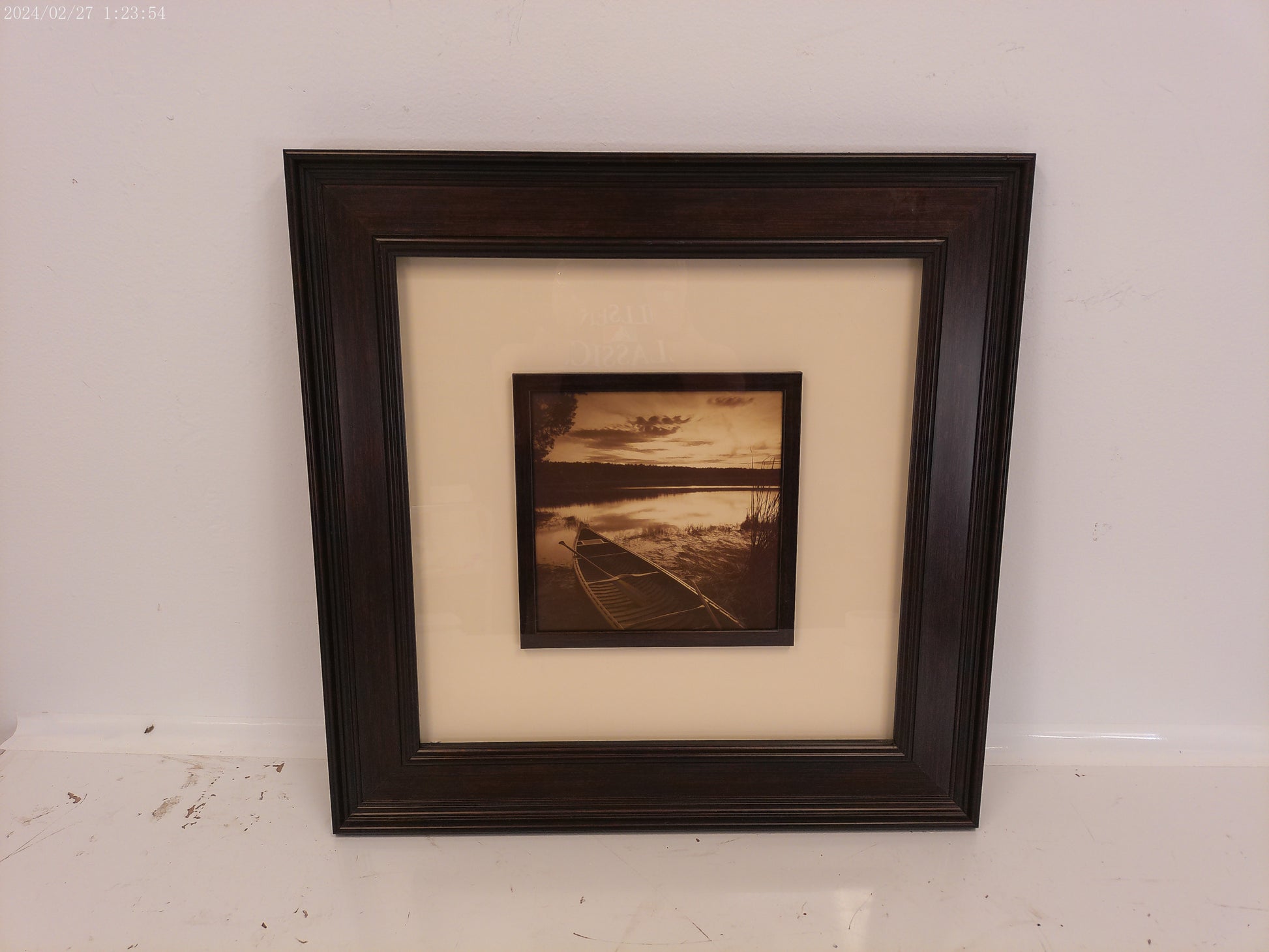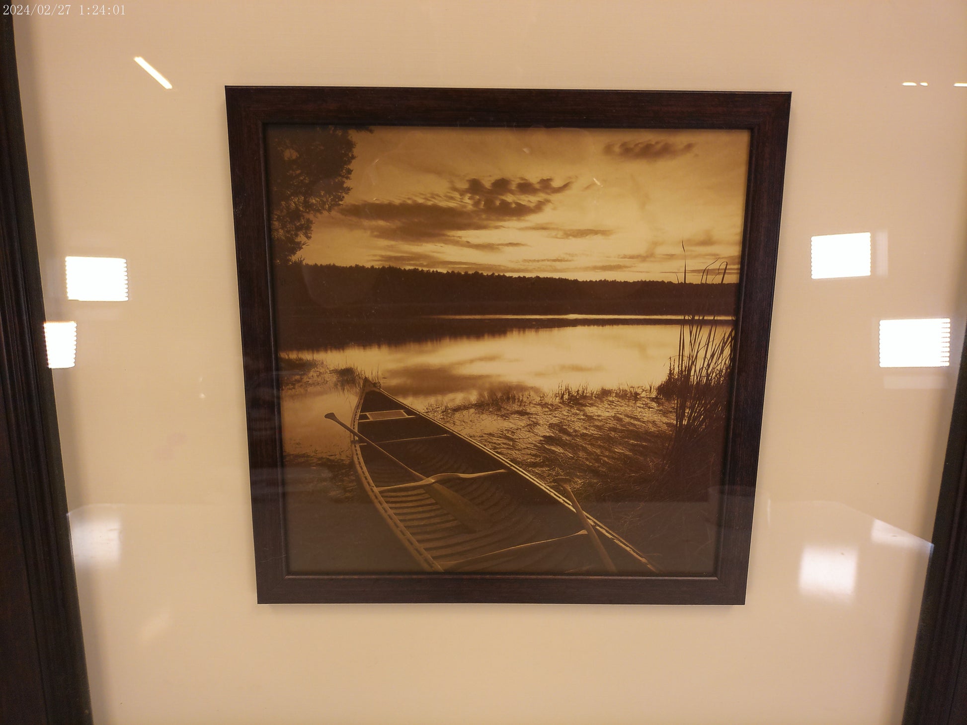 This framed print features a stunning morning sunrise on a serene lake, with a canoe in the foreground. The perfect addition to any home or office, this print captures the beauty of nature in a peaceful and tranquil setting. Expertly framed, this piece is sure to add a touch of sophistication to any space.