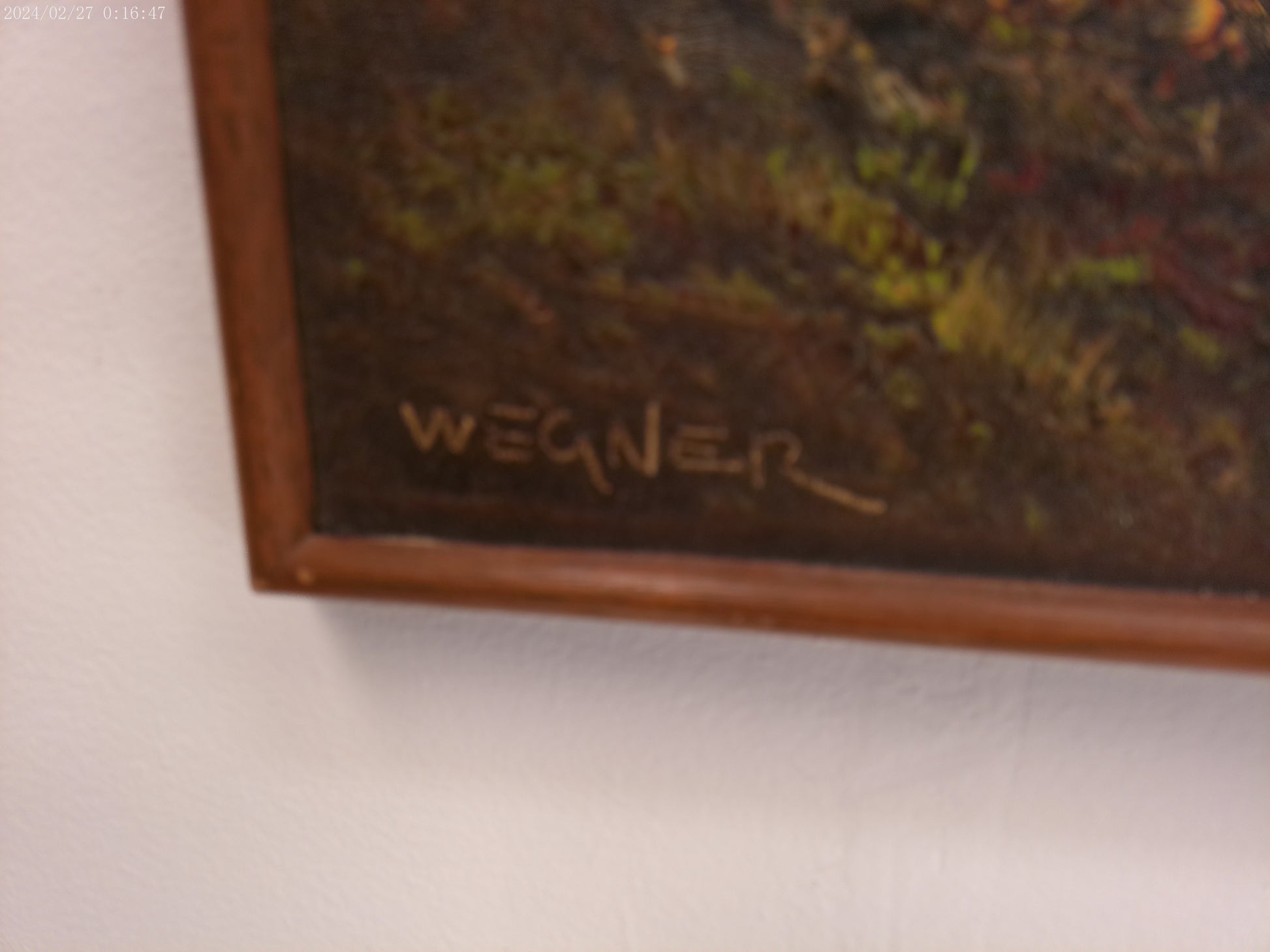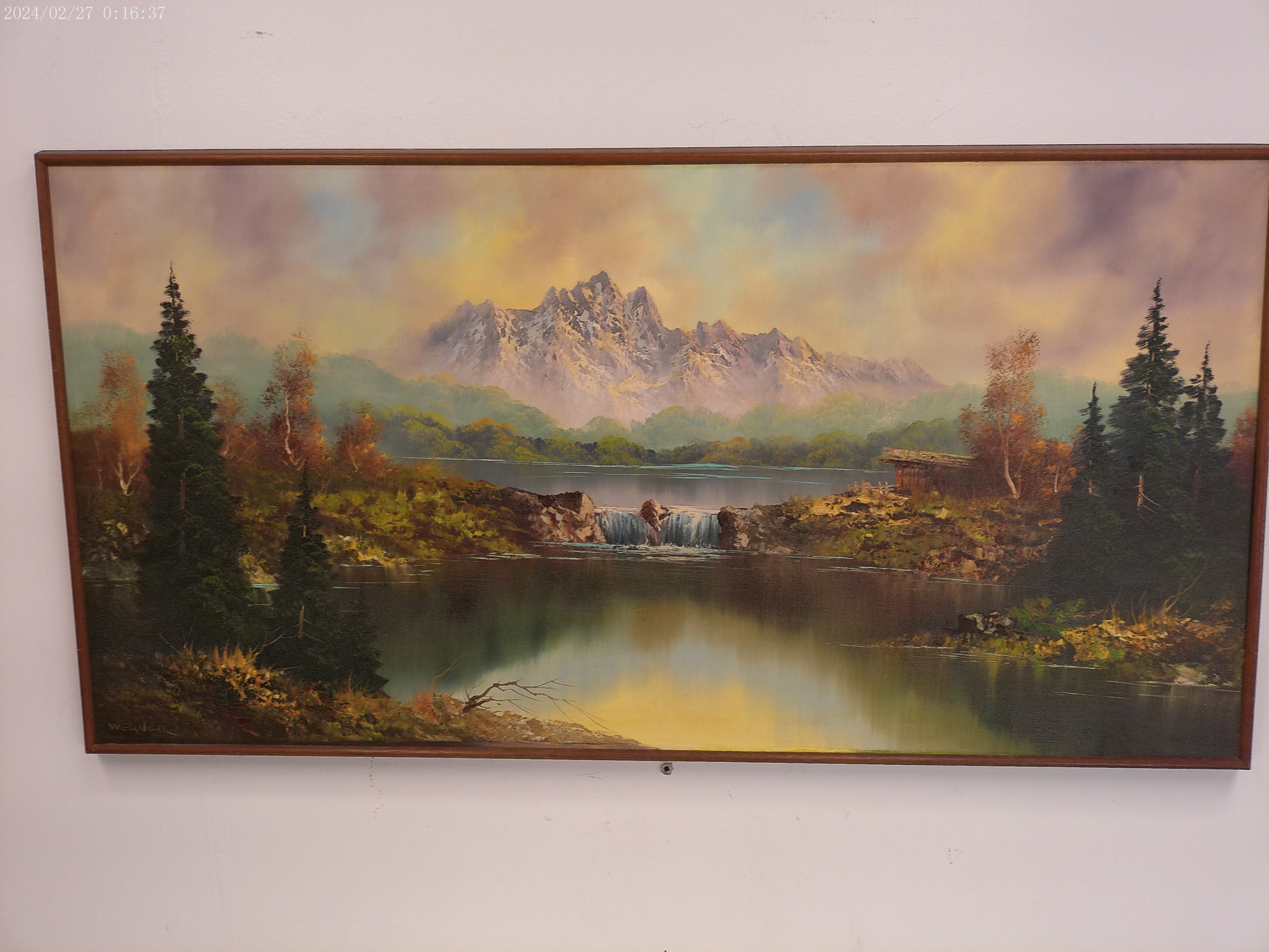 This stunning "Art Mountainous Lake Landscape," created by renowned artist Gerhard Wegner, captures the serene beauty of nature with its oil on canvas medium. With masterful brushstrokes and vivid colors, this original piece will evoke a sense of peace and tranquility in any room.