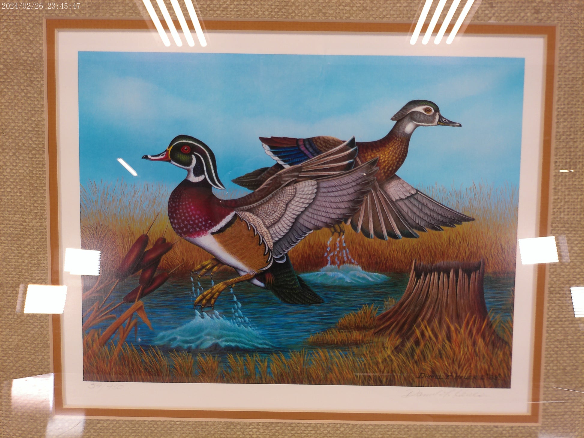 Art "Startled Flight Wood Ducks" signed Framed print by Daniel F. Hauer