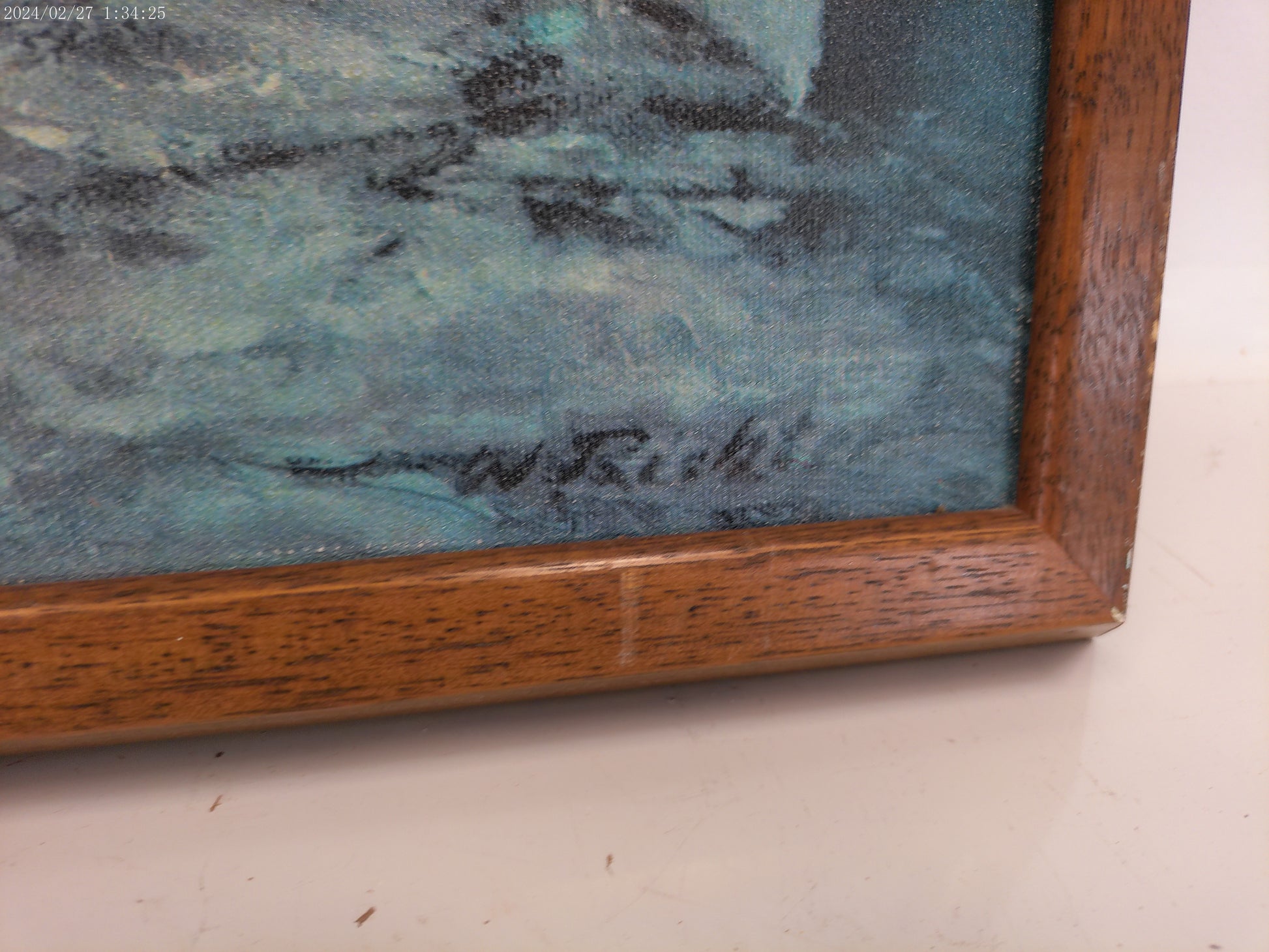 Art Vintage Scenic Fishing Village Sailboat Painting Printed on Canvas RICHTER Art