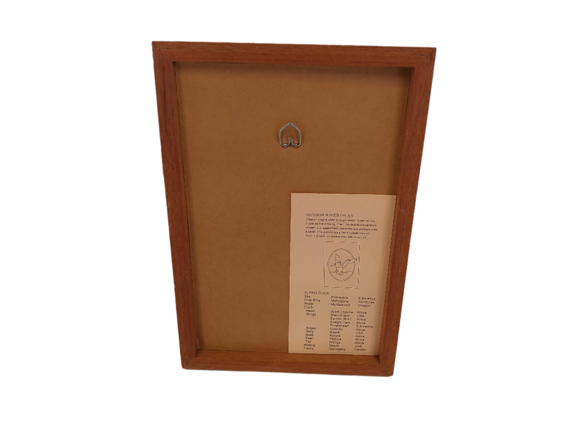 Introducing the Art wood Hudson River Inlay Duck on a Lake. This beautifully crafted piece boasts exquisite detail and texture, adding a touch of elegance to any space. Made with precision and care, this artisanal piece captures the beauty of nature in its design. Adorn your home or office with this unique and timeless work of art.