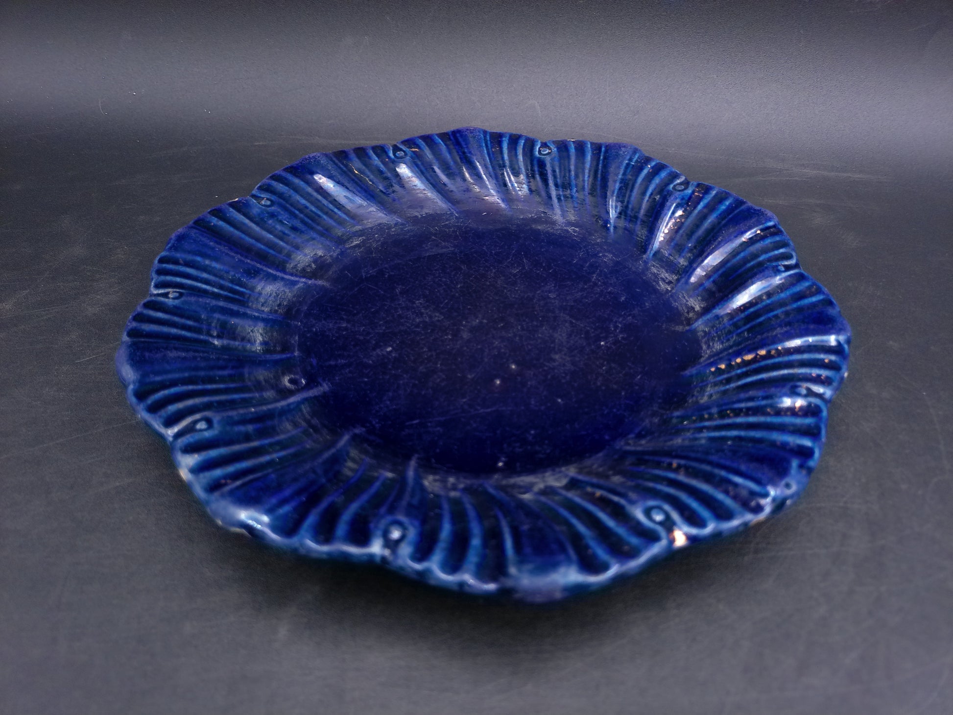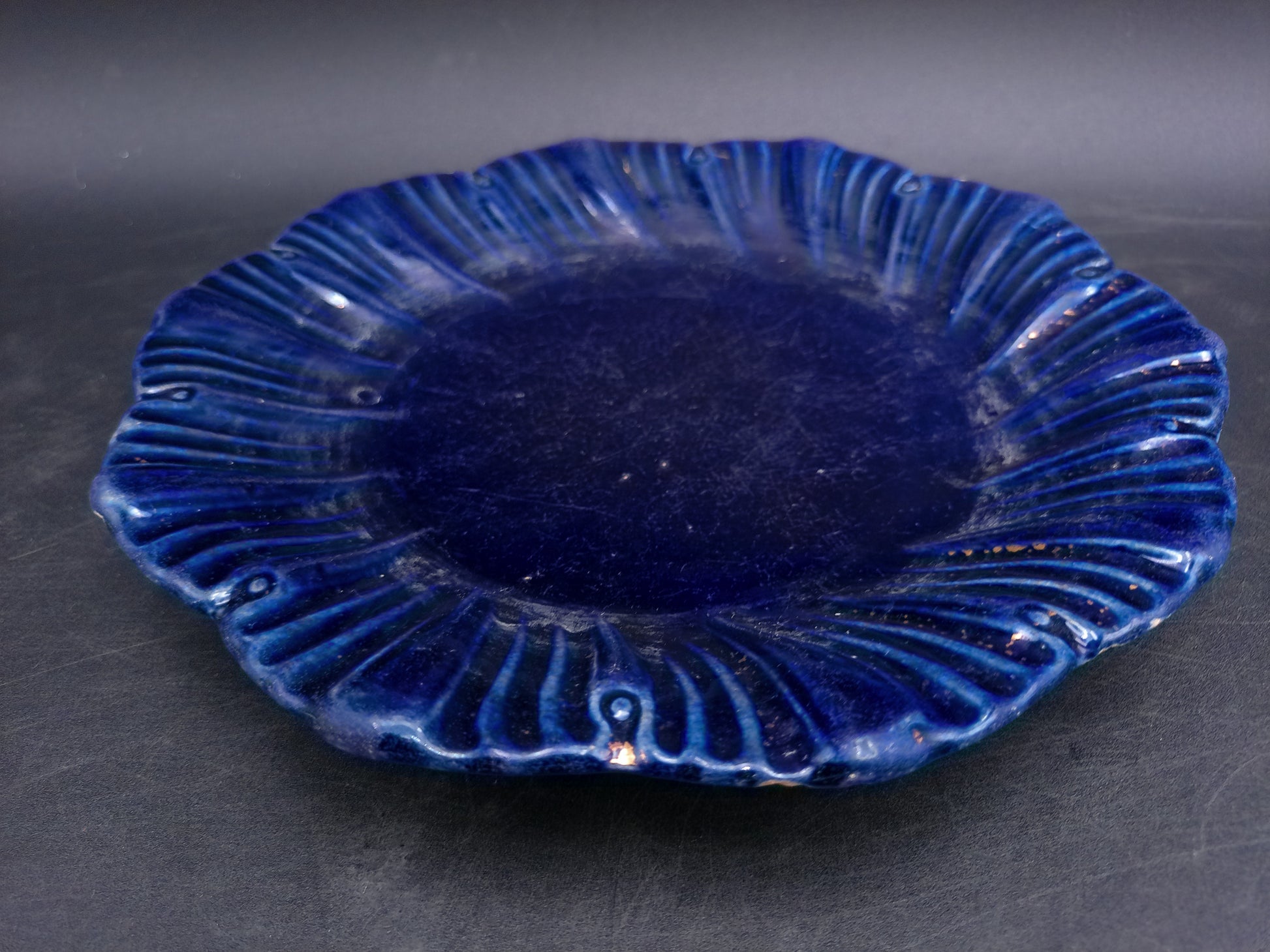 Gold Covered With Cobalt Blue finish Dish Plate Vintage