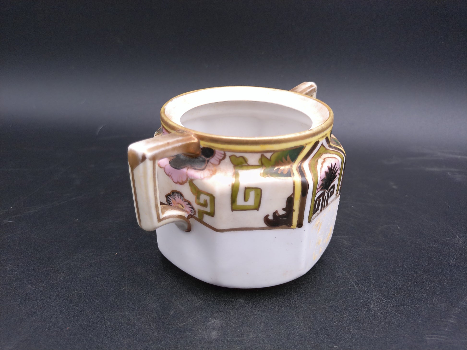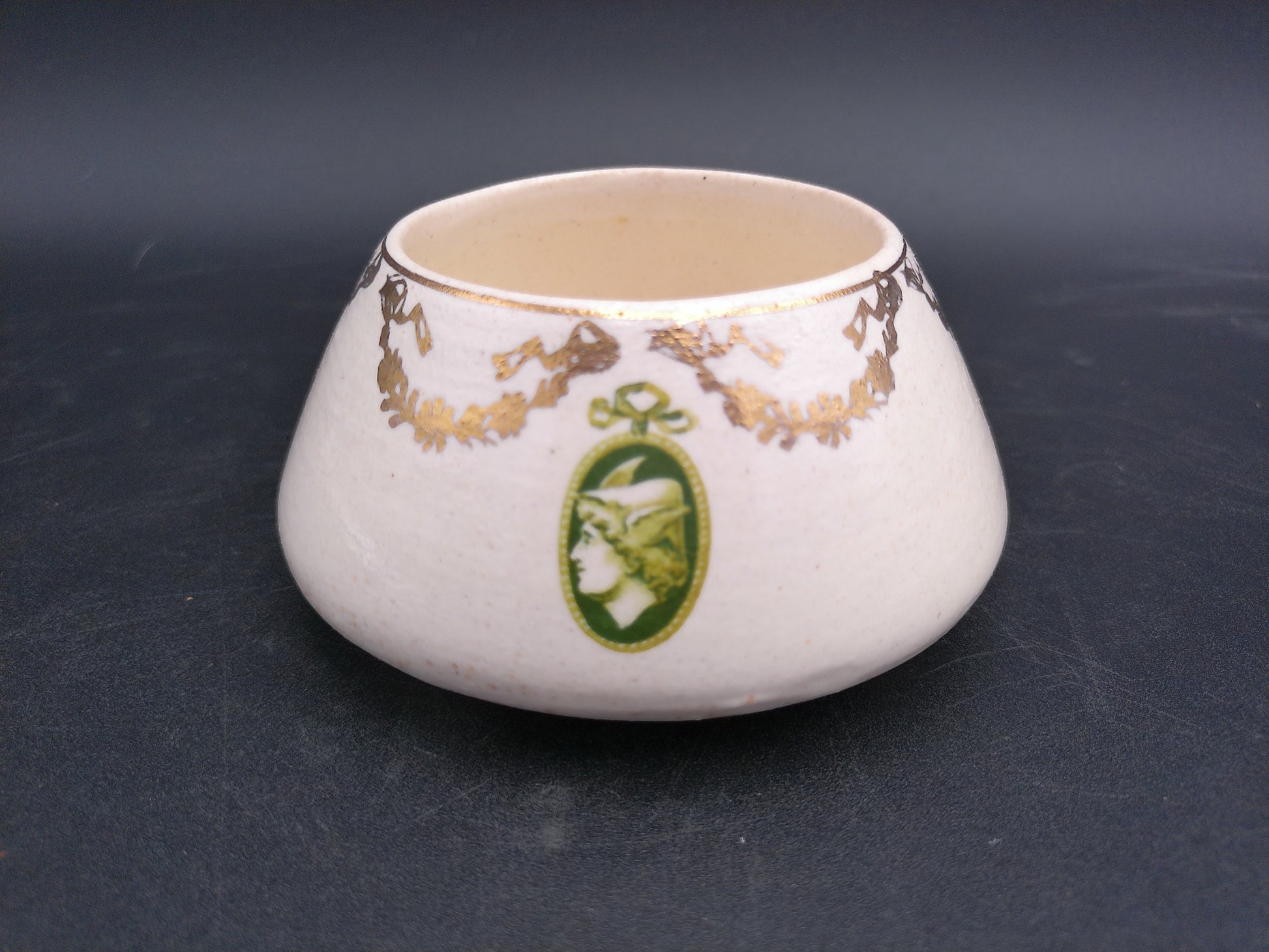 Roseville 1910’s Pottery Creamer and Nippon Sugar Bowl Geometric Gold Green w Palm Trees
