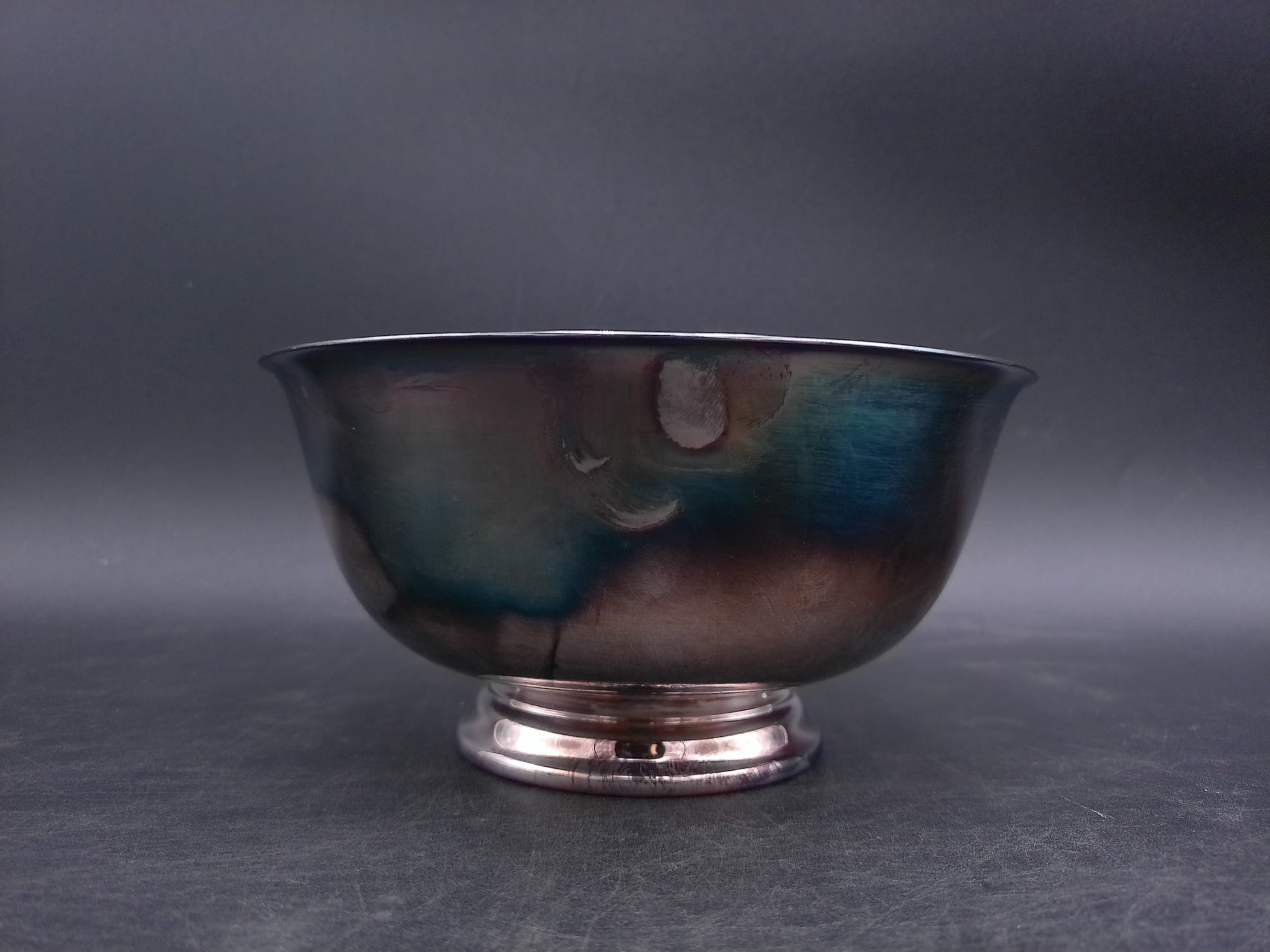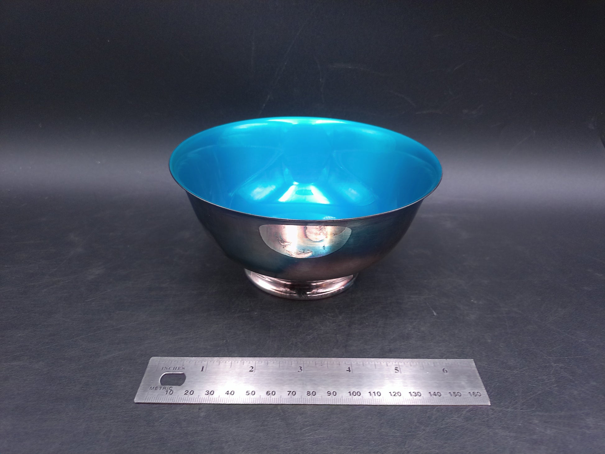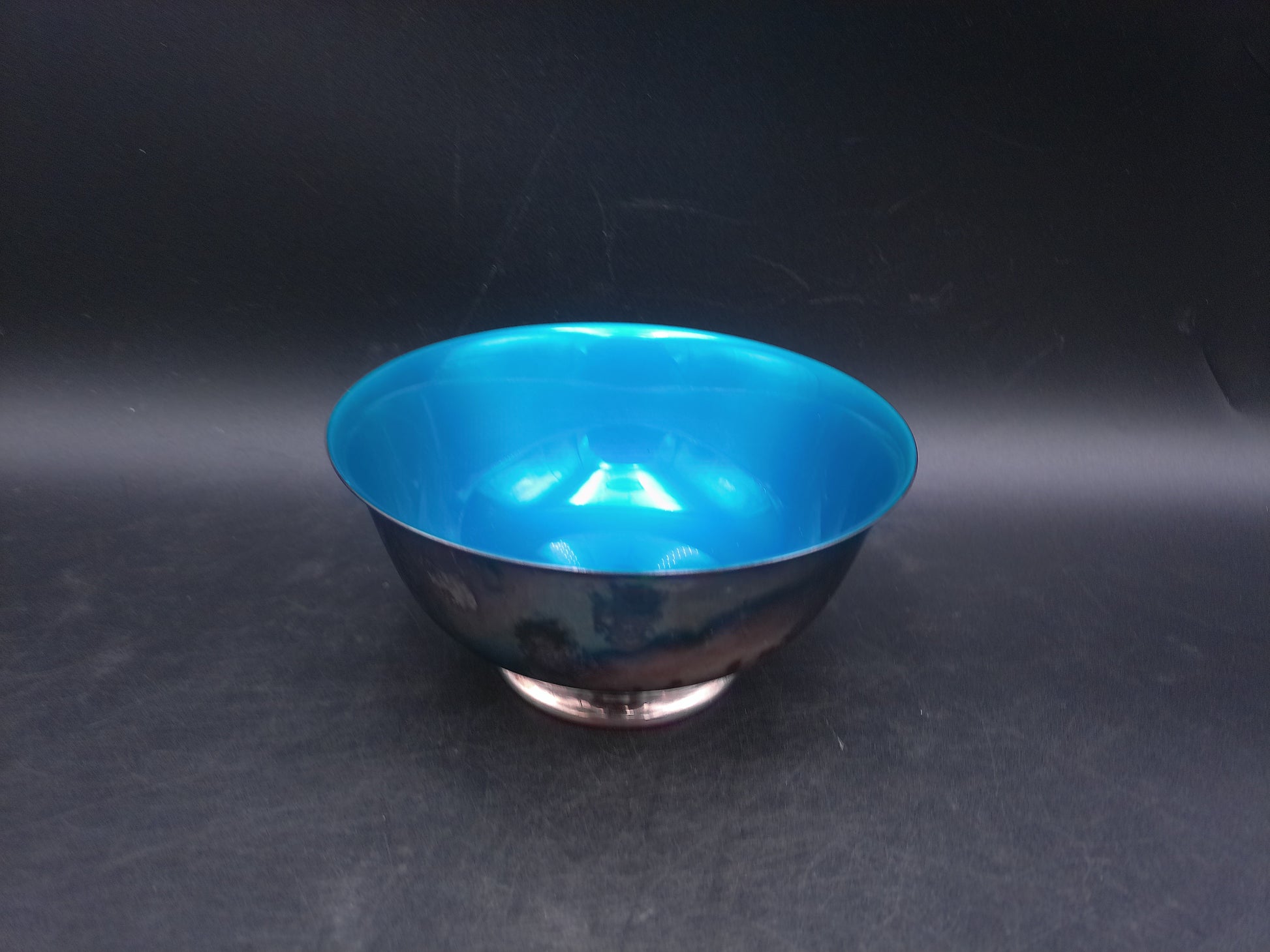 Reed & Barton Silver Plate and Blue Enamel Pedestal Bowl Vintage