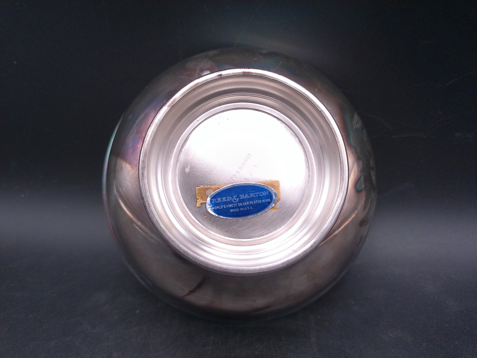 Add a touch of vintage elegance to your home with the Reed & Barton Silver Plate and Blue Enamel Pedestal Bowl. Its striking blue enamel contrasts beautifully with the polished silver plate, creating a sophisticated centerpiece or serving piece. Perfect for special occasions or everyday use, this bowl combines timeless design with durable craftsmanship, making it a valuable addition to any collection. Elevate your décor with this classic Reed & Barton treasure.