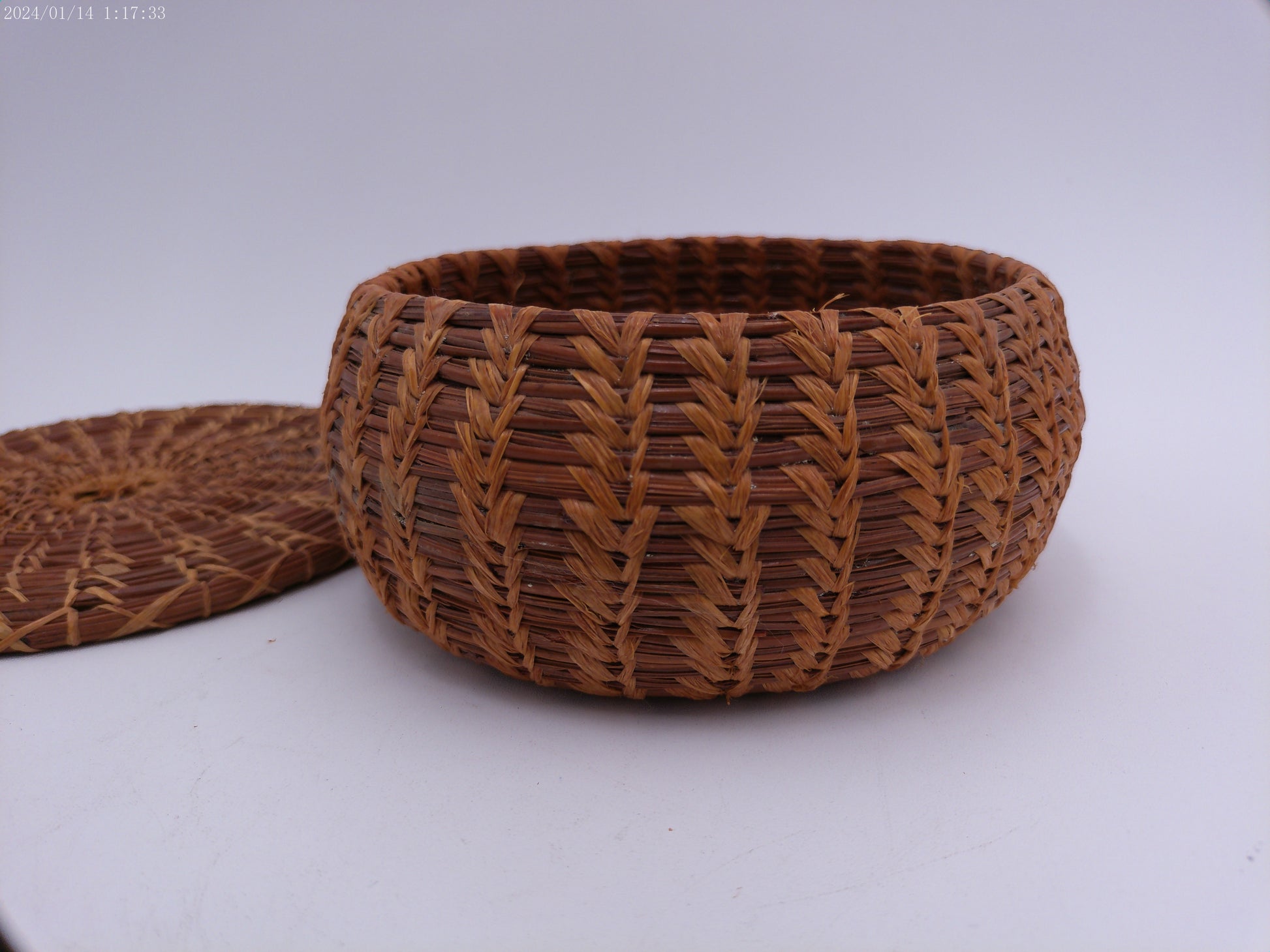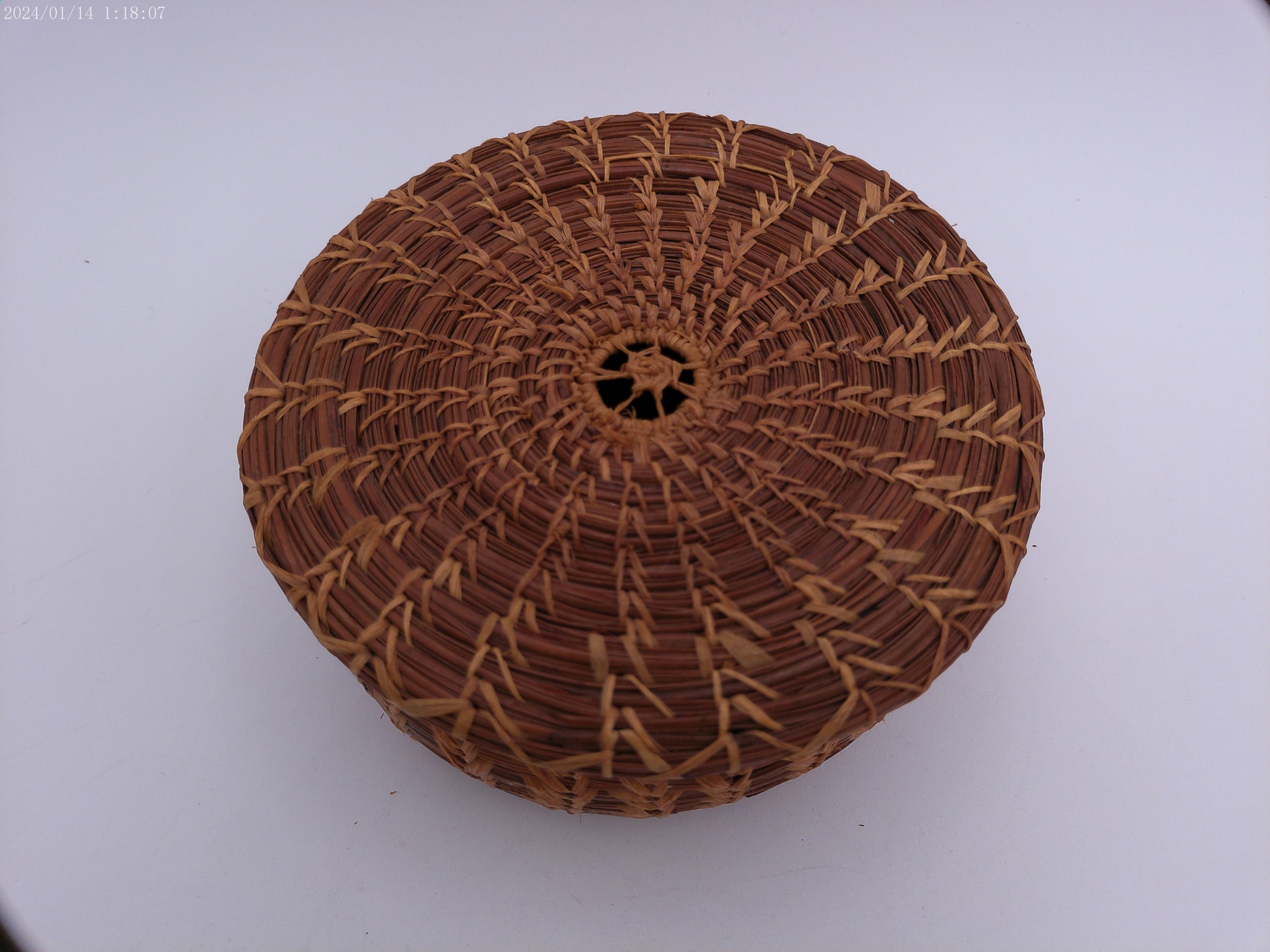 This handcrafted basket is made from sustainably-sourced African pine needles, making it a durable and eco-friendly option for storage and organization.
