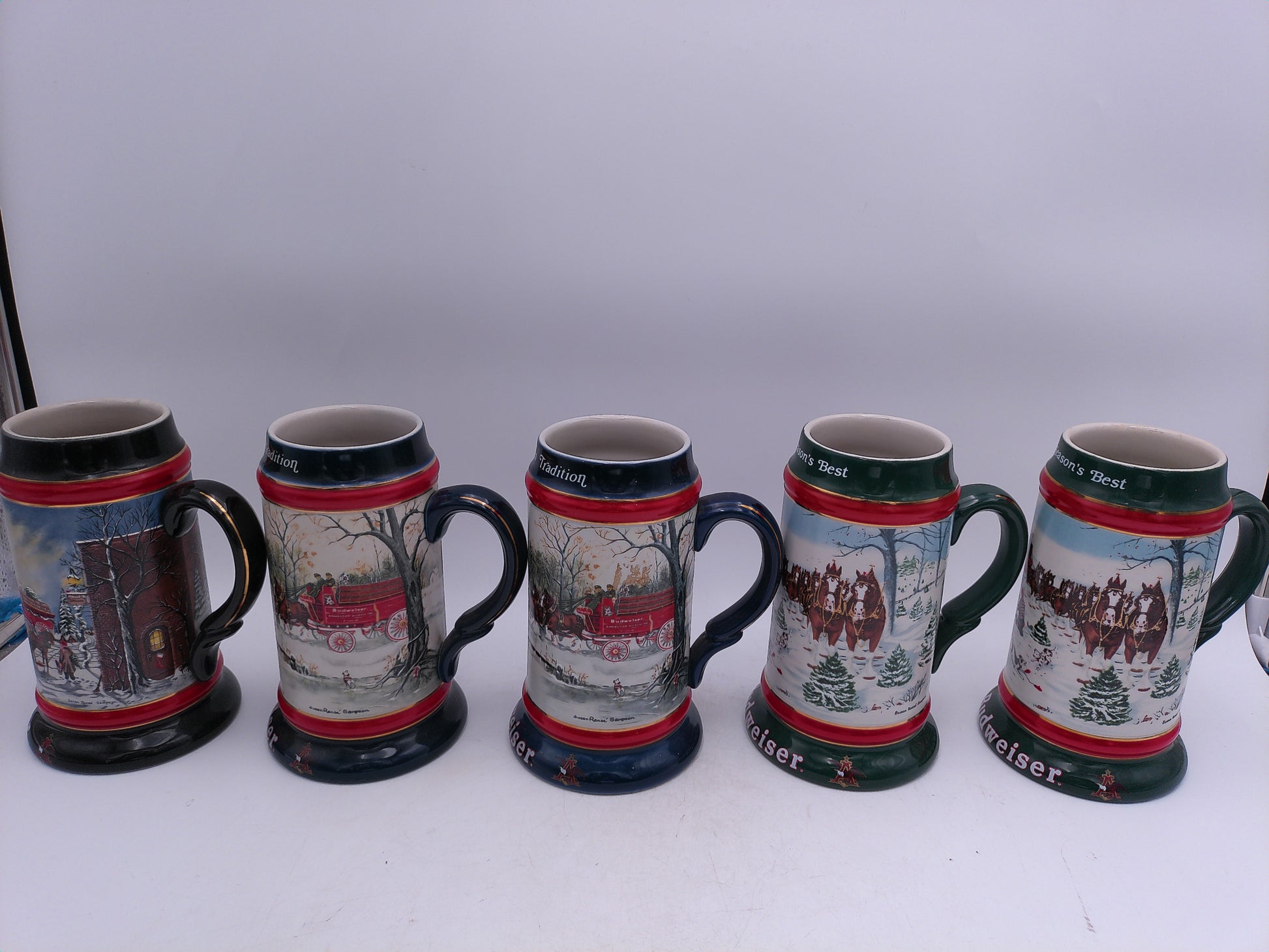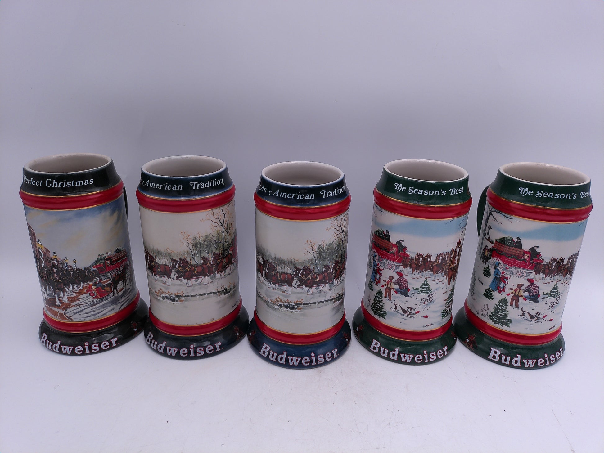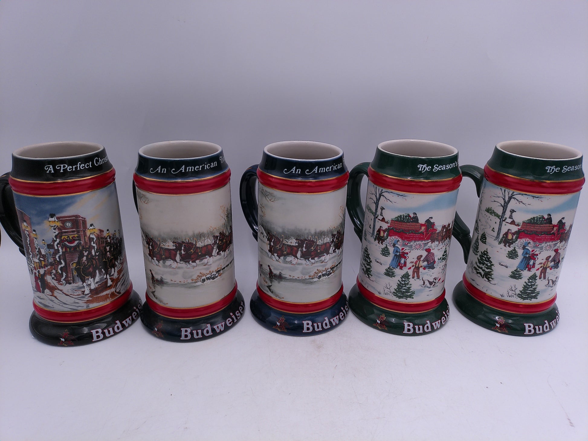 Beer Stein Budweiser Lot of 5 years 1990 1991 1992 Holiday Collector's Series