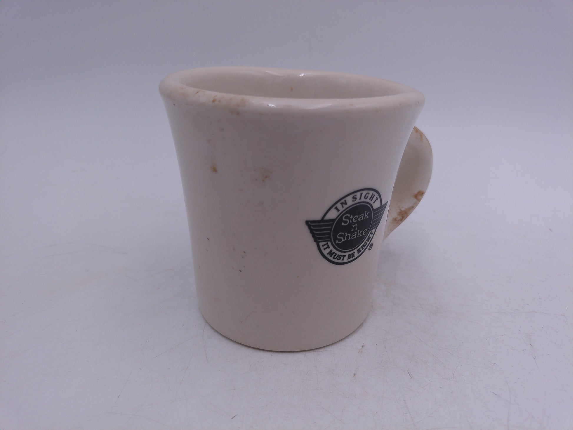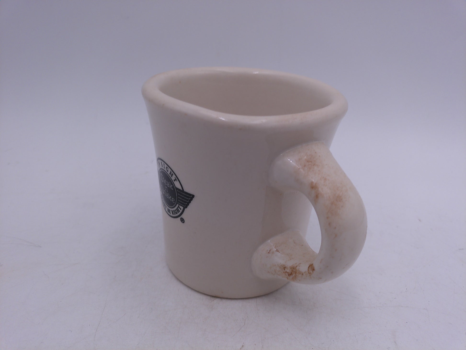 Introducing the Steak and Shake Mug - an iconic piece from the famous Steak and Shake restaurant. This coffee mug is not only a diner cup, but also a symbol of the delicious Steakburgers that the restaurant is known for. Enjoy your morning brew in style with this must-have for any fan or collector.