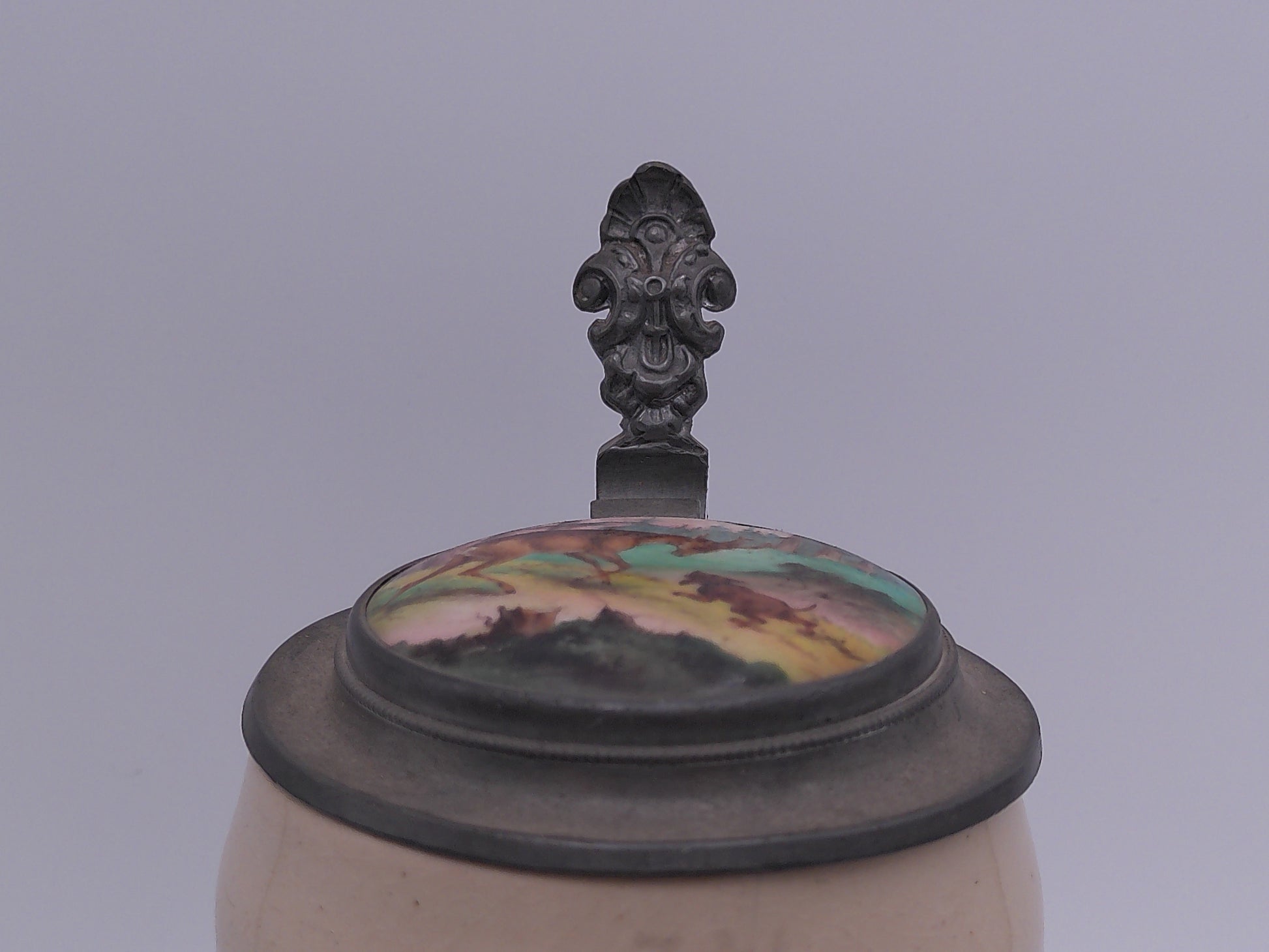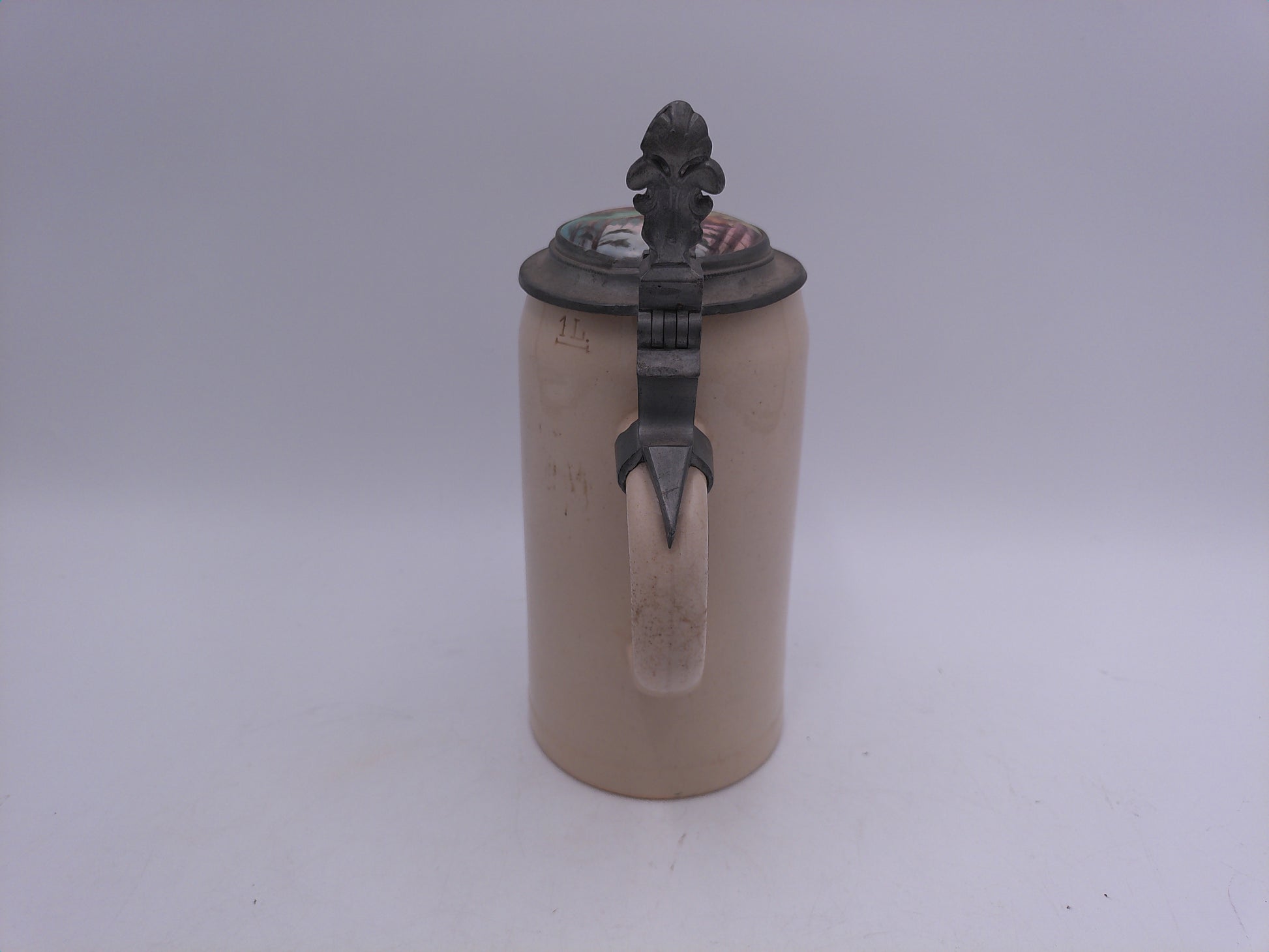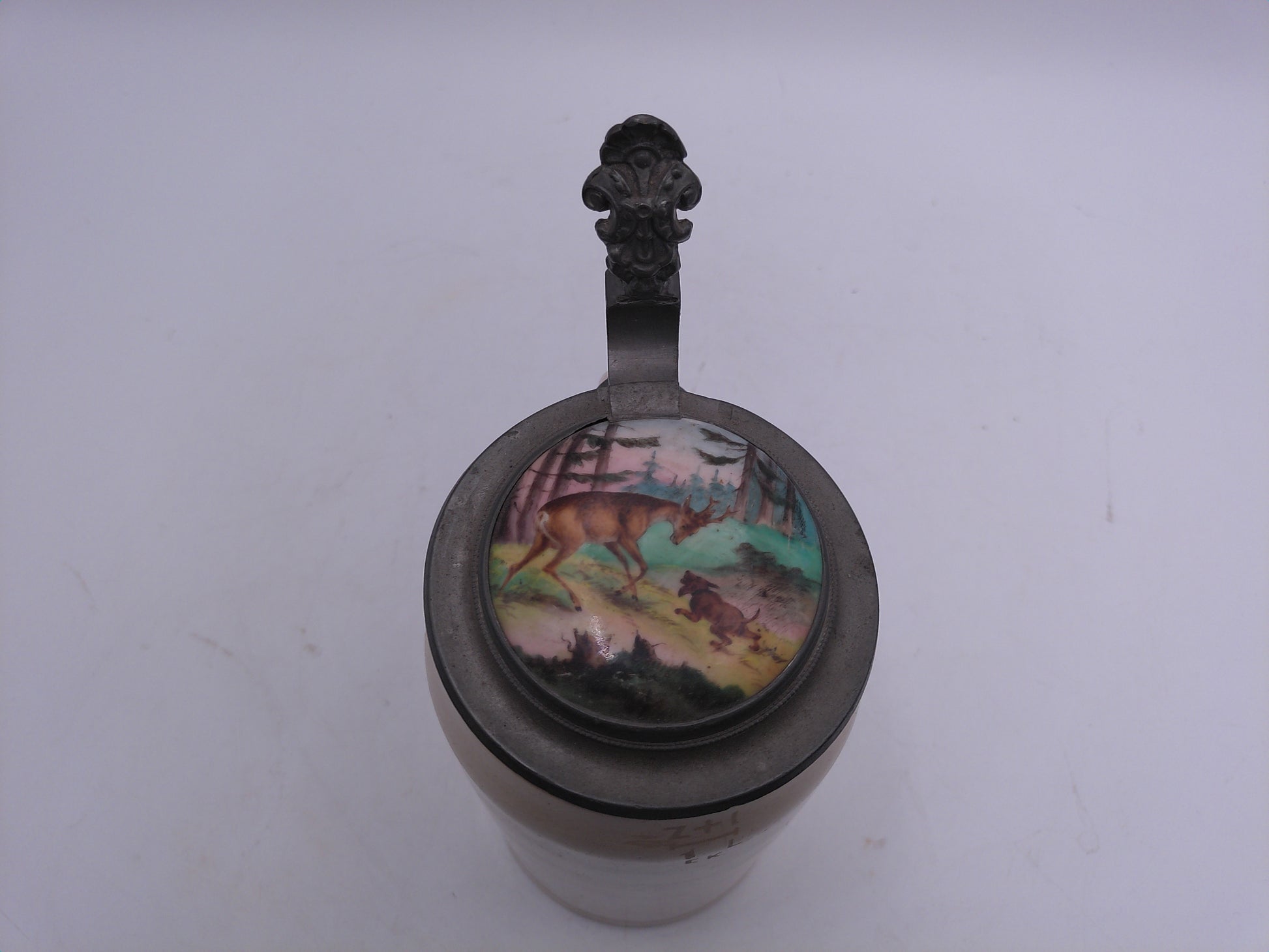 Beer Stein with Deer art on top of lid 1L Vintage