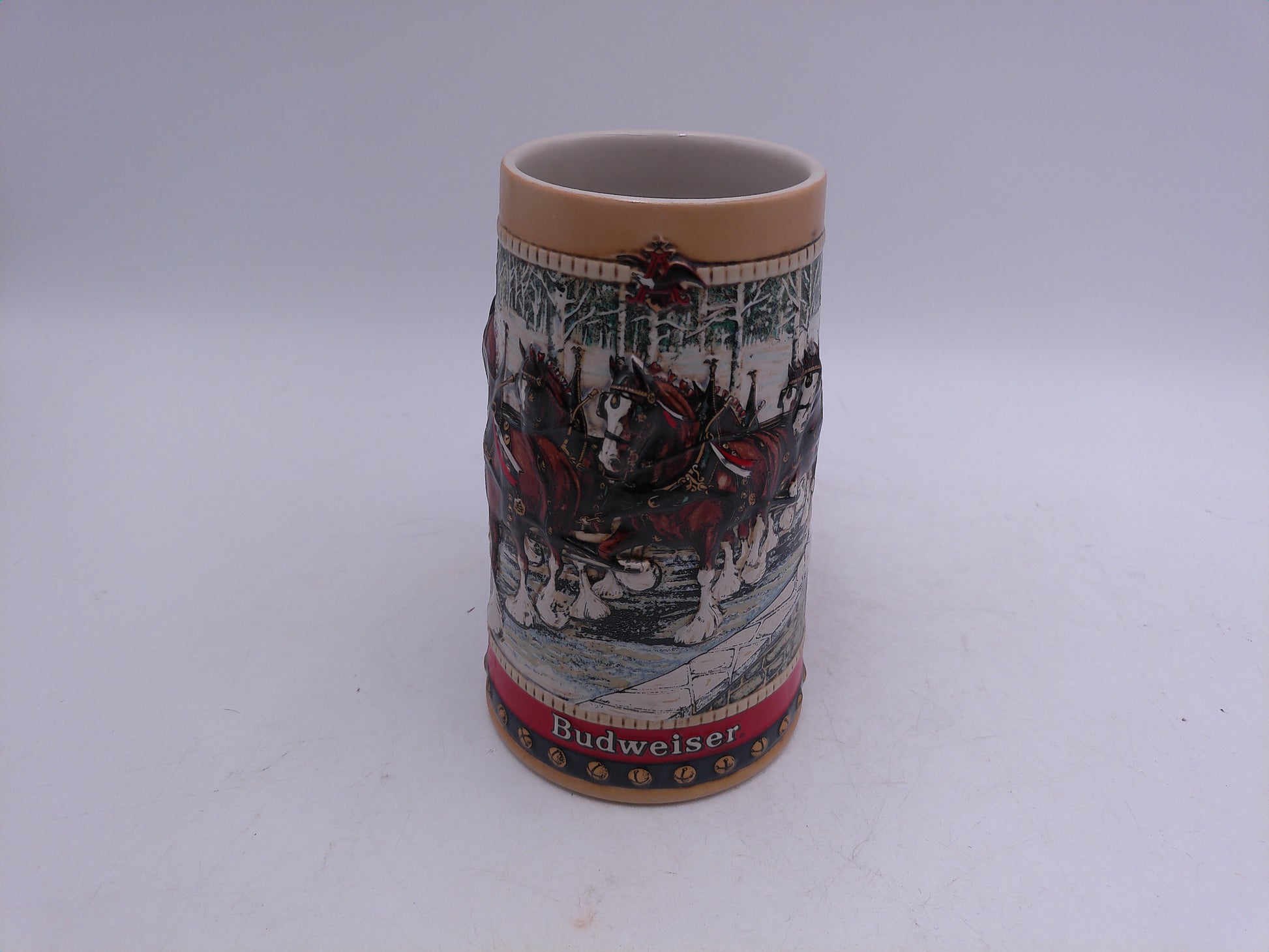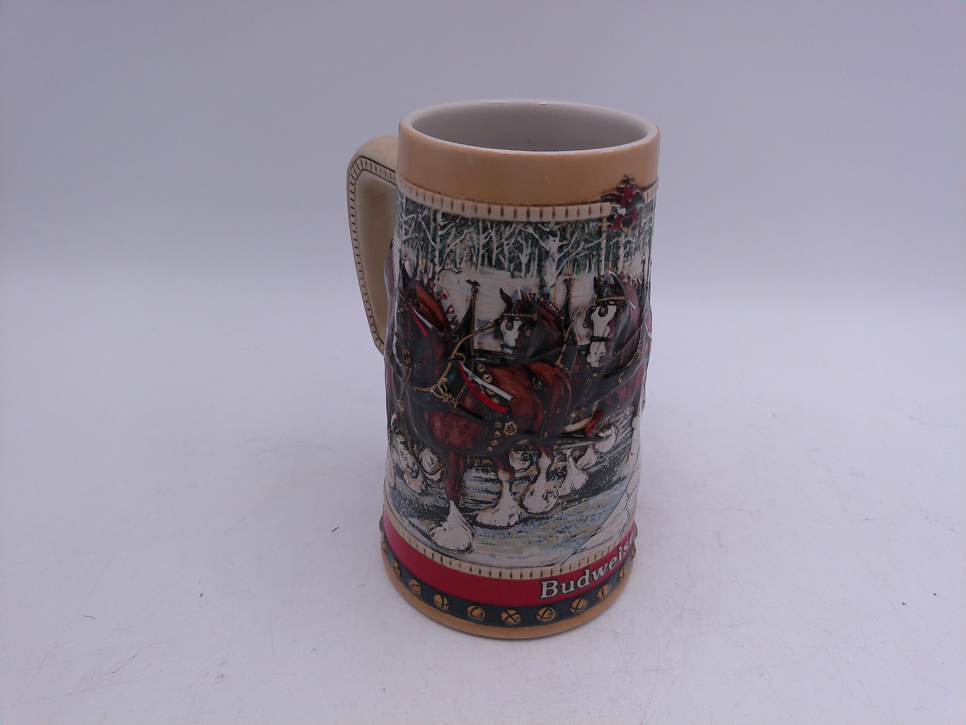 Transport back in time with the Beer Stein Cobblestone Passage by Anheuser-Busch 1988 Christmas Stein. Crafted with a stunning cobblestone design and produced by industry leader Anheuser-Busch, this limited edition stein is the perfect addition to any collection. Cheers to the holiday season with this timeless piece!