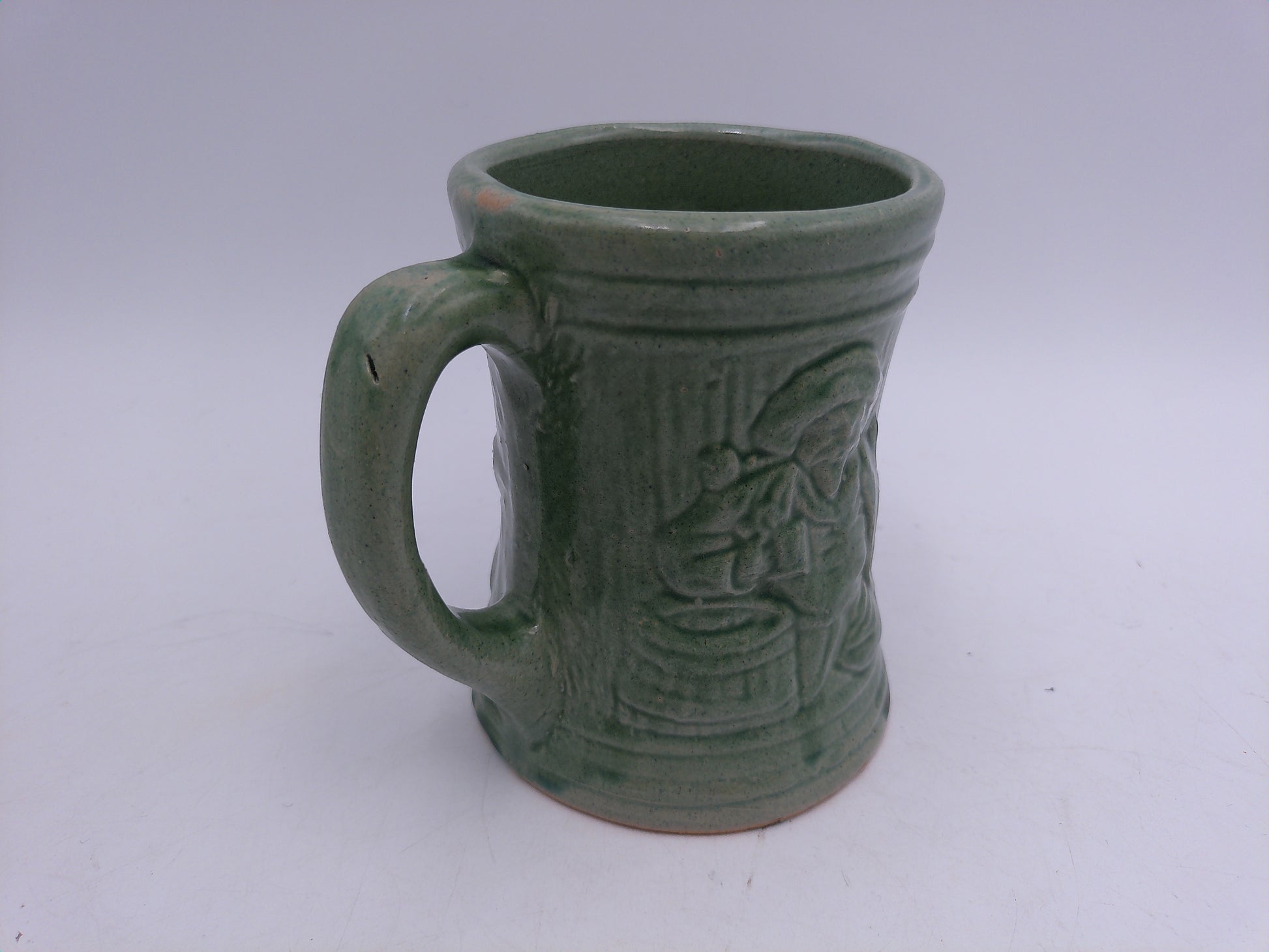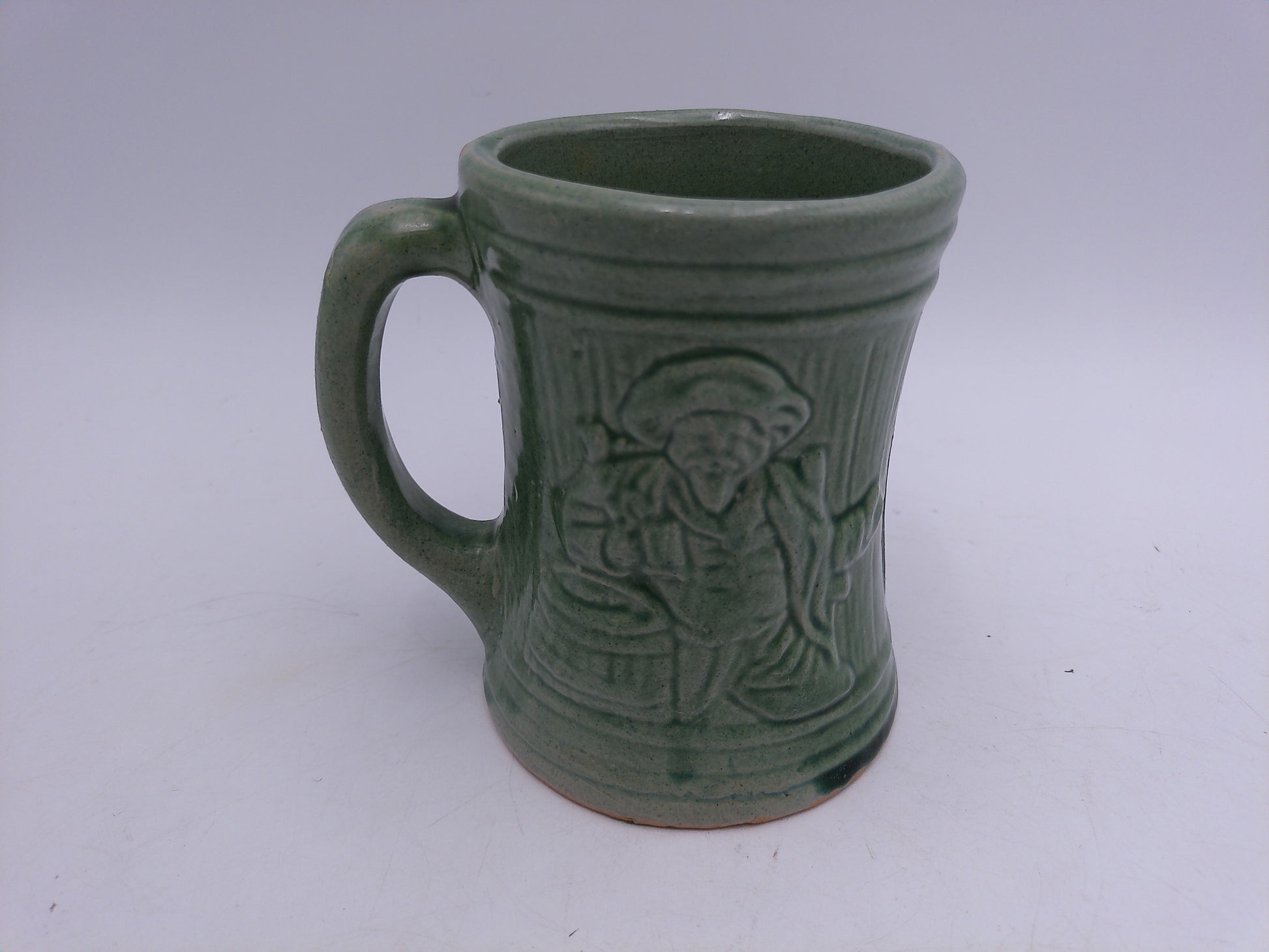 Beer Stein Vintage 1920's Buccaneer Green Pirate Stoneware Mug Cup Bar Ware 5” Tall