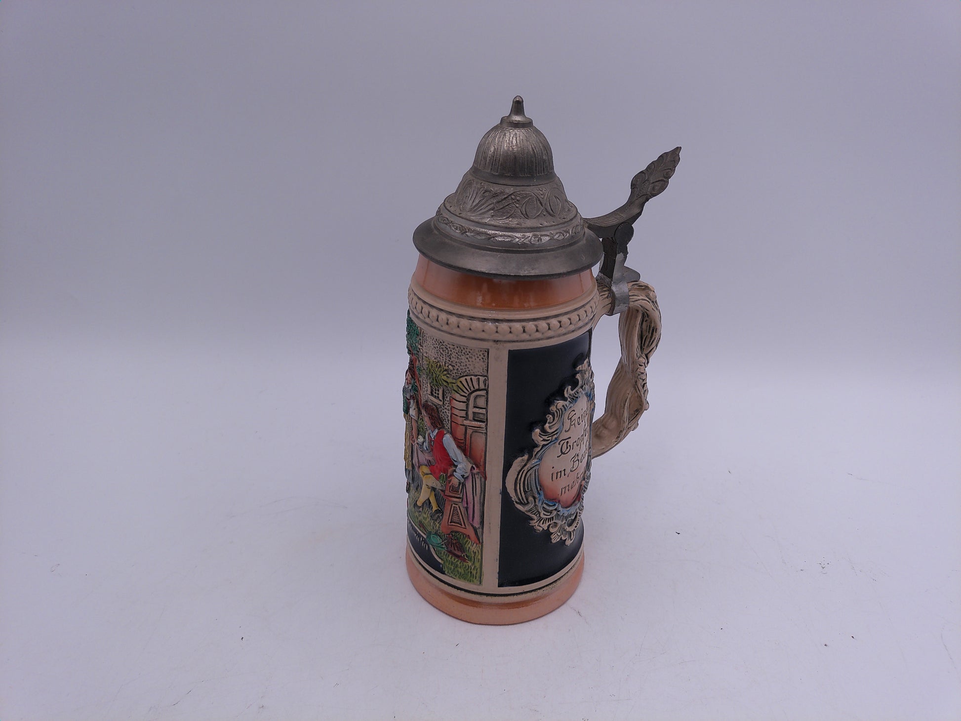 Beer Stein German Made with Pewter Lid Vintage Colorful