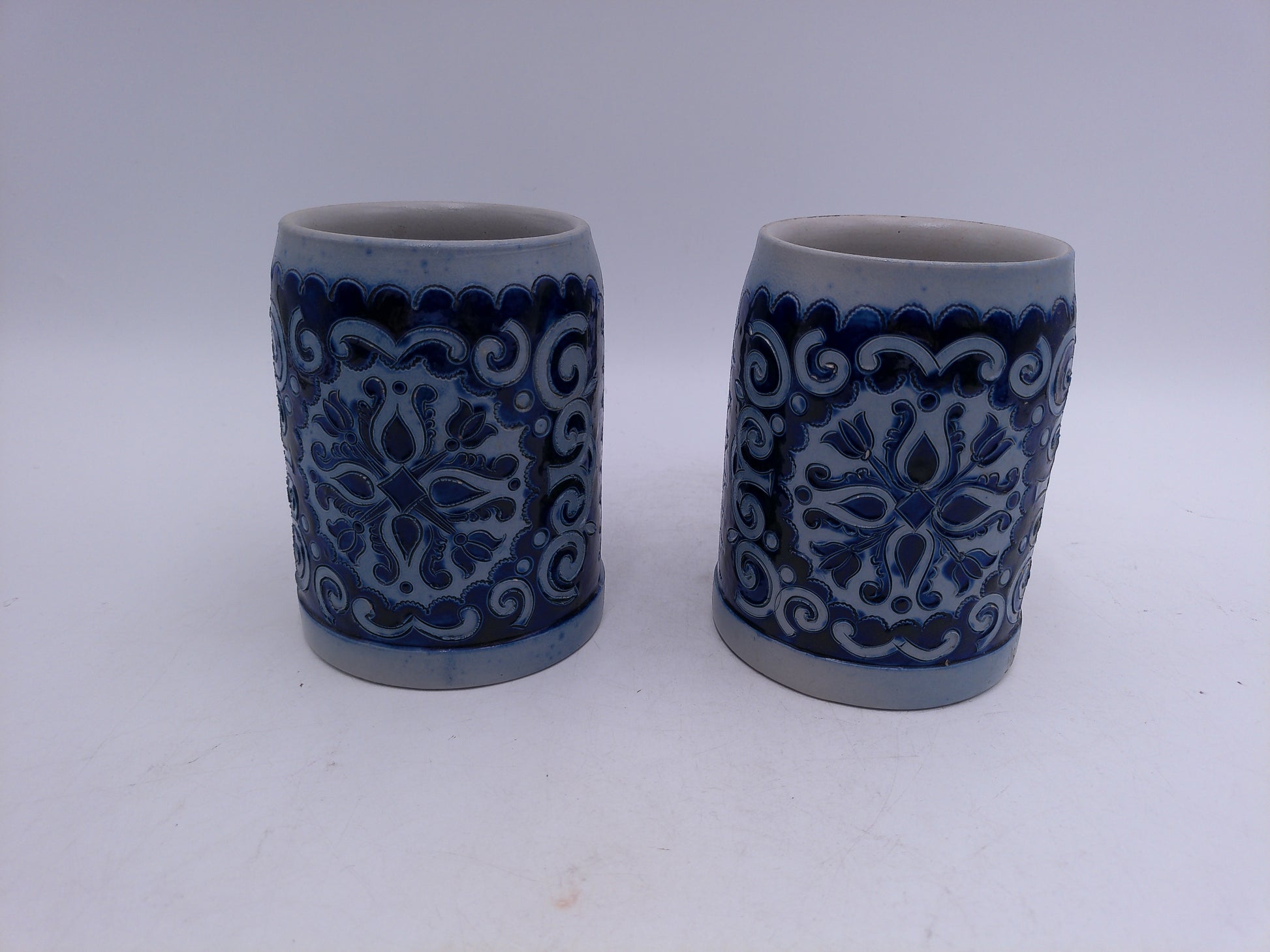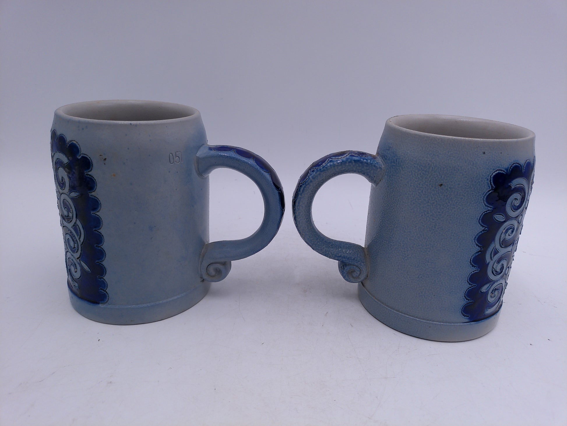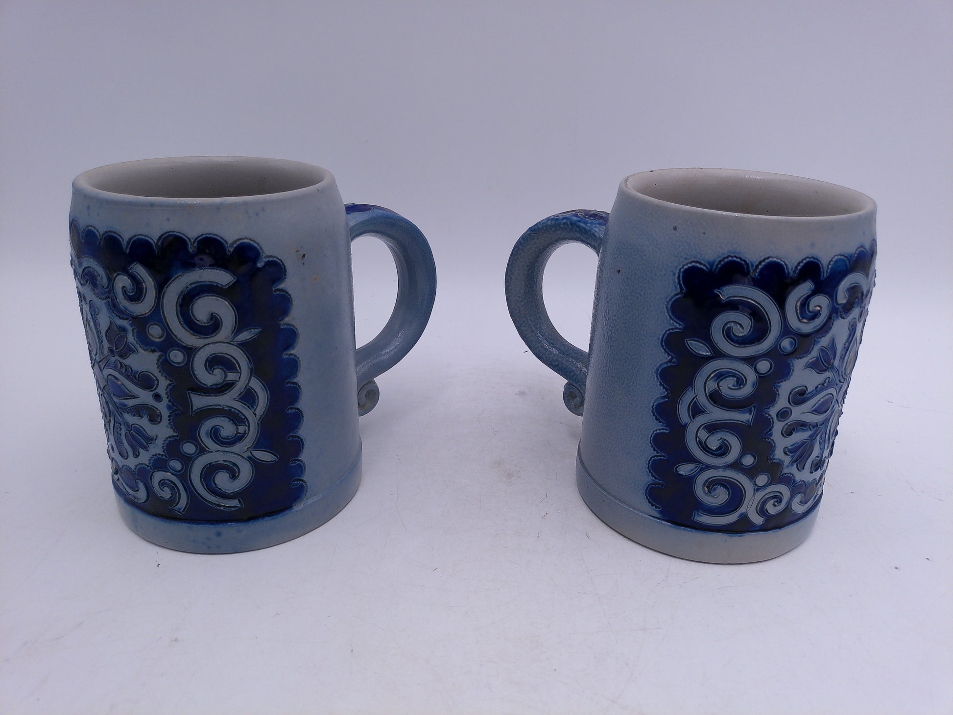 Beer Stein German Salt glazed grey blue Coffee Mug Cup lot of 2