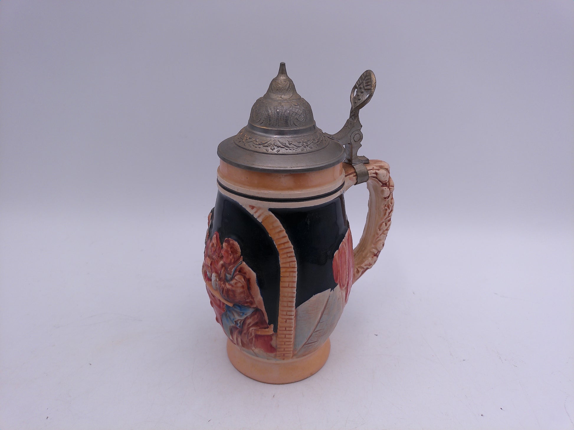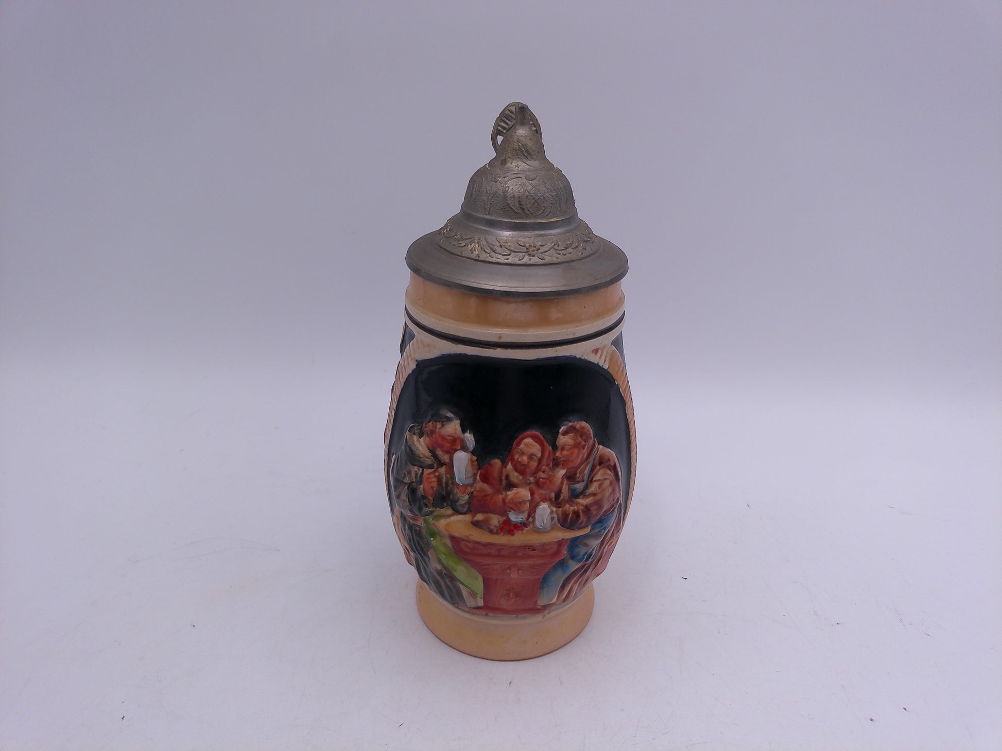 Beer Stein Made In Germany Pewter Lid with Monks and Adage