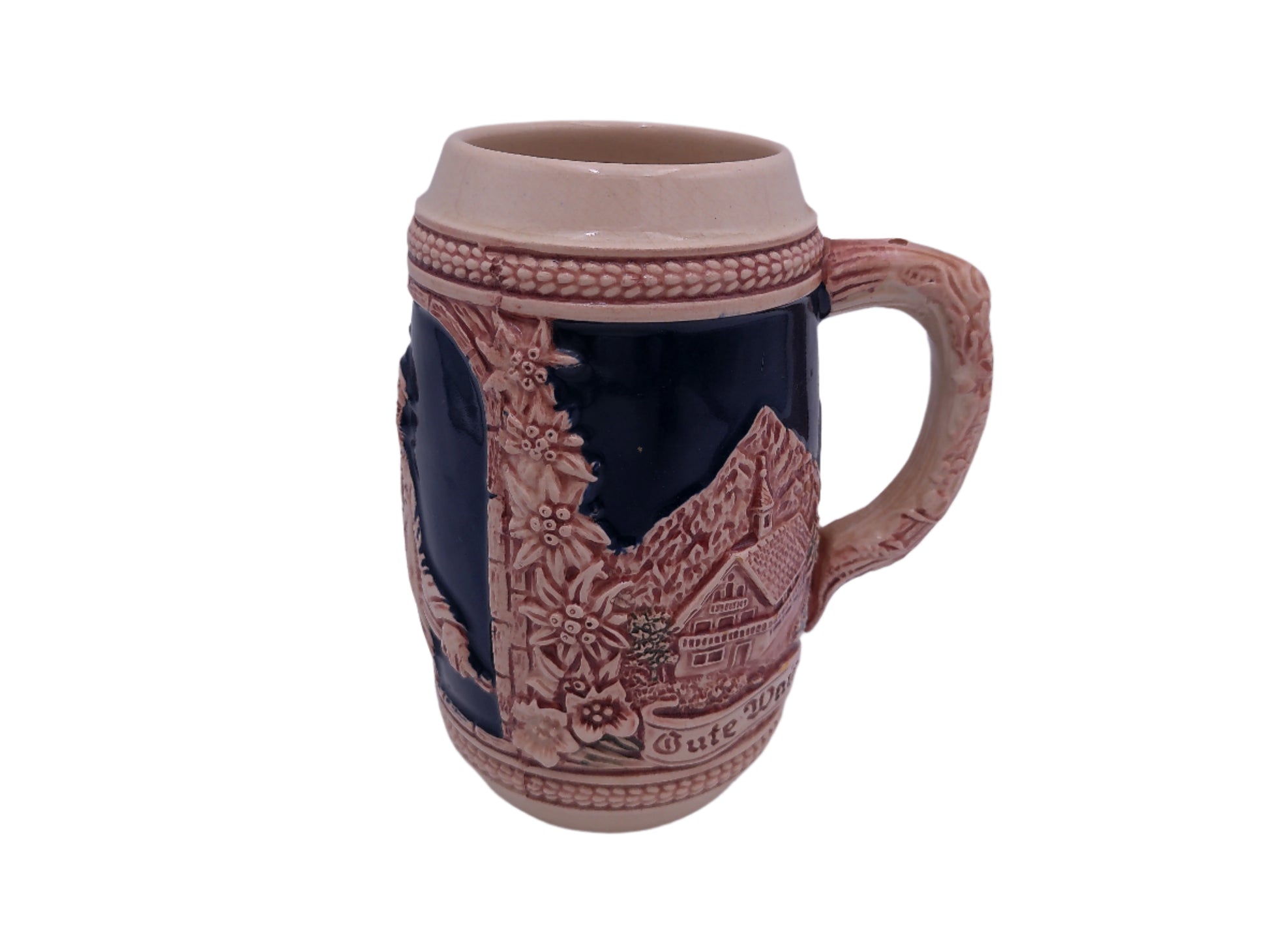 Expertly crafted in Germany, our vintage Beer Stein features intricately detailed decorative elements and features two men on the side. Made with precision and skill, this stein is perfect for any beer enthusiast looking for a touch of tradition in their collection. Raise a glass to quality and heritage with our Beer Stein.