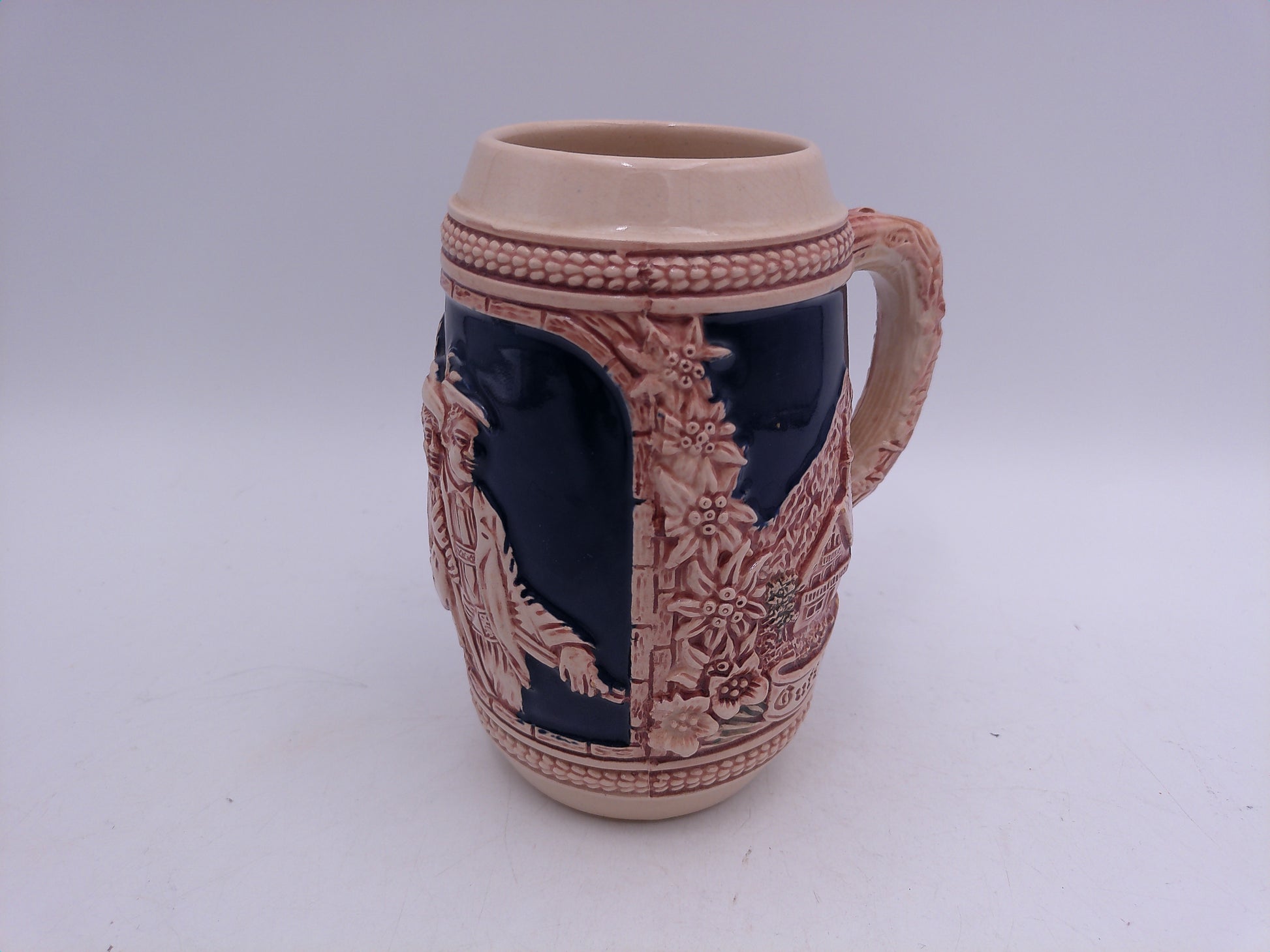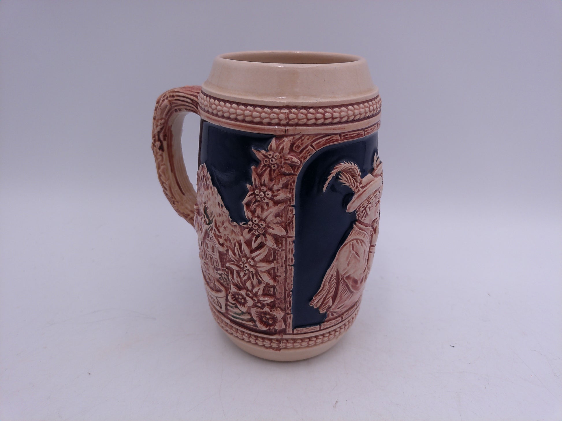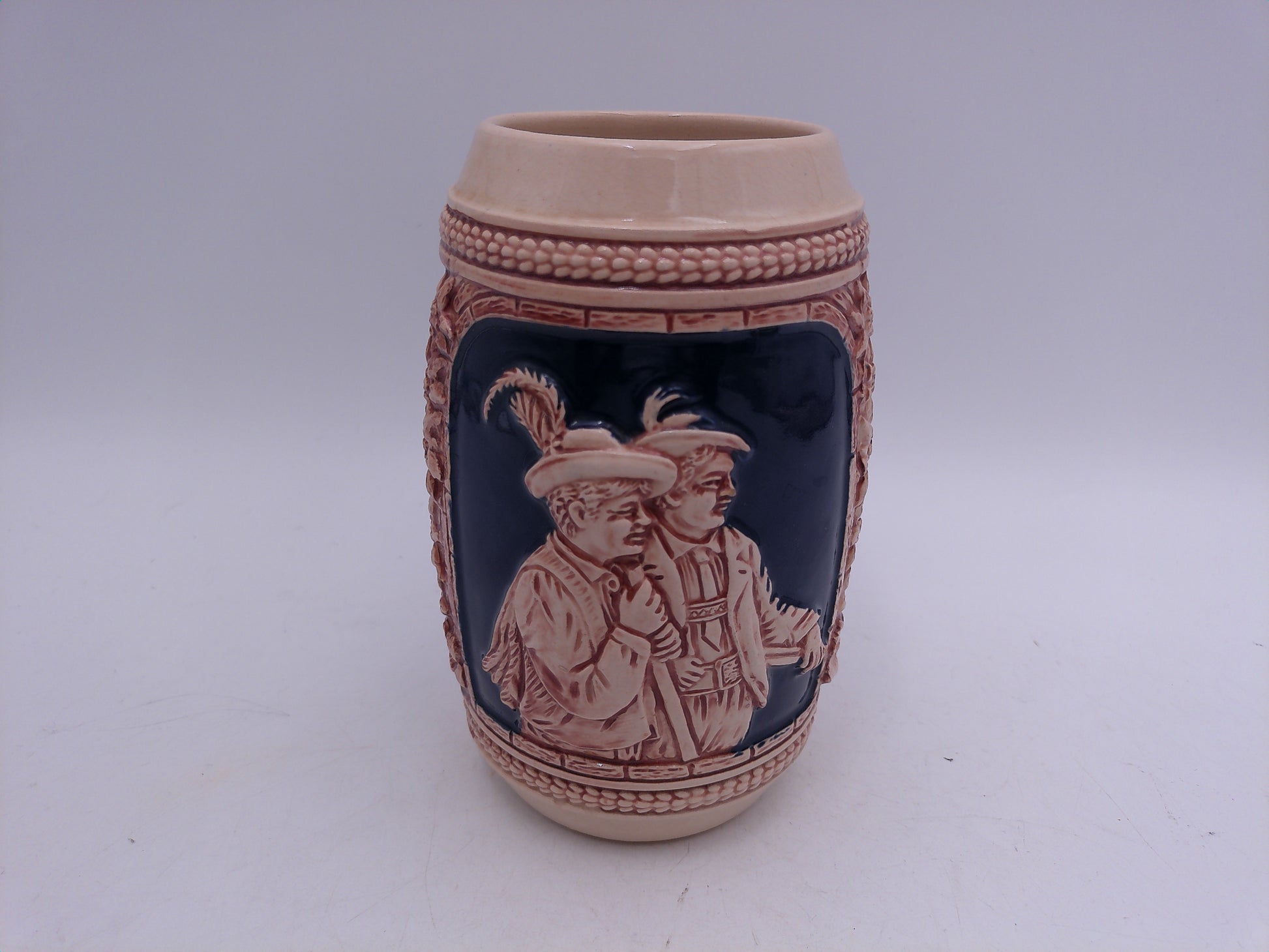 Beer Stein German Made Decorative Vintage Two Men on side of Stein