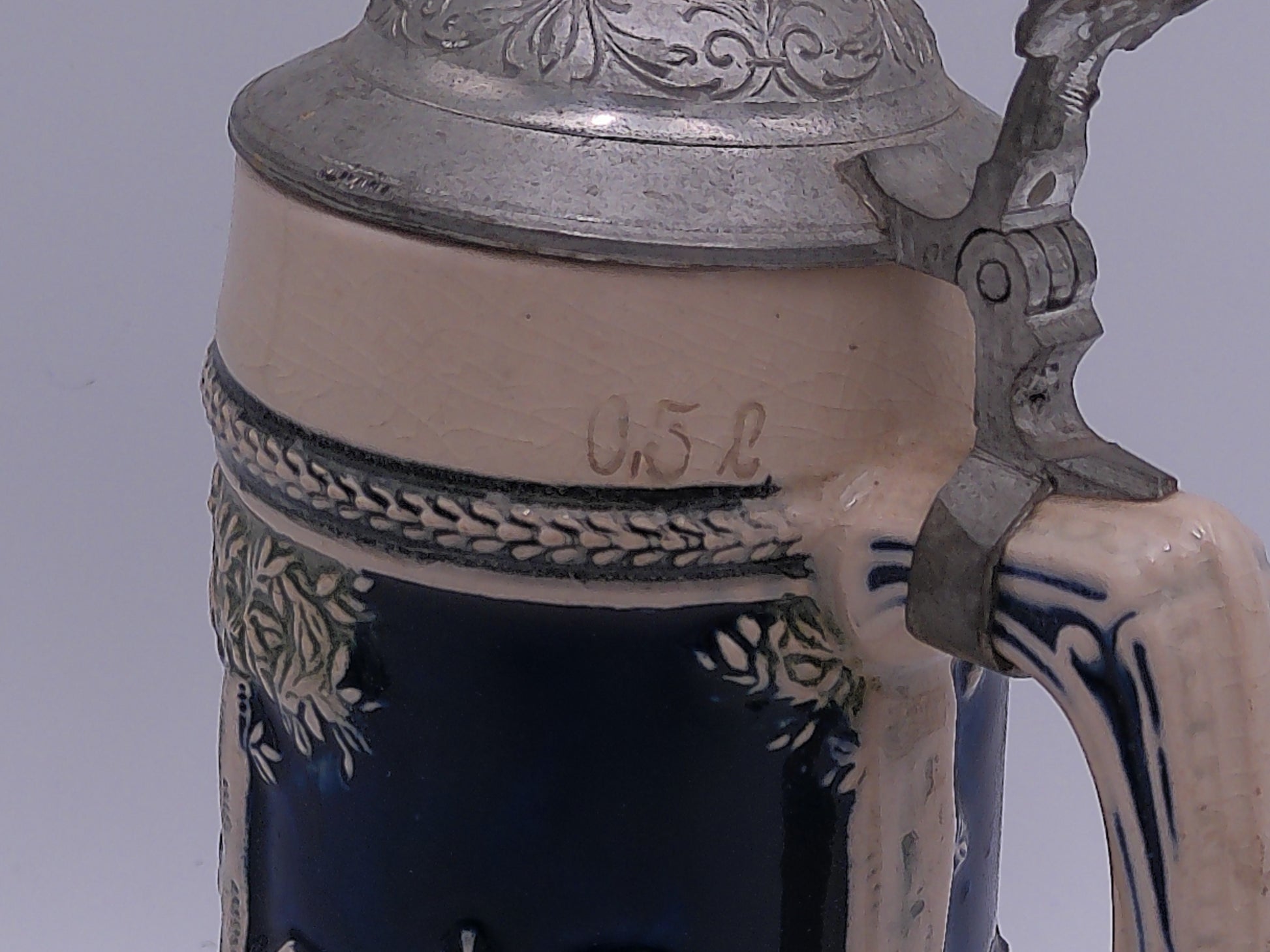 Beer Stein German Made Pewter Top no. 8033 Vintage