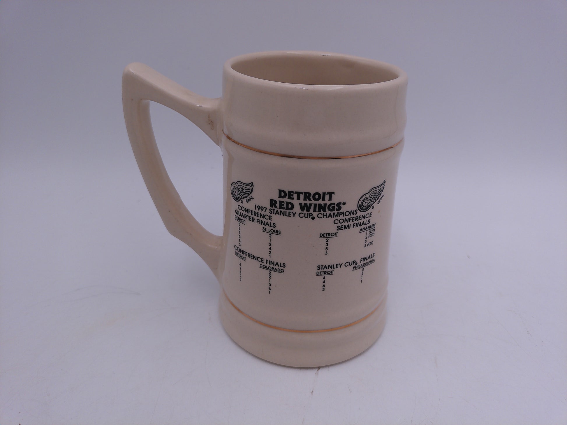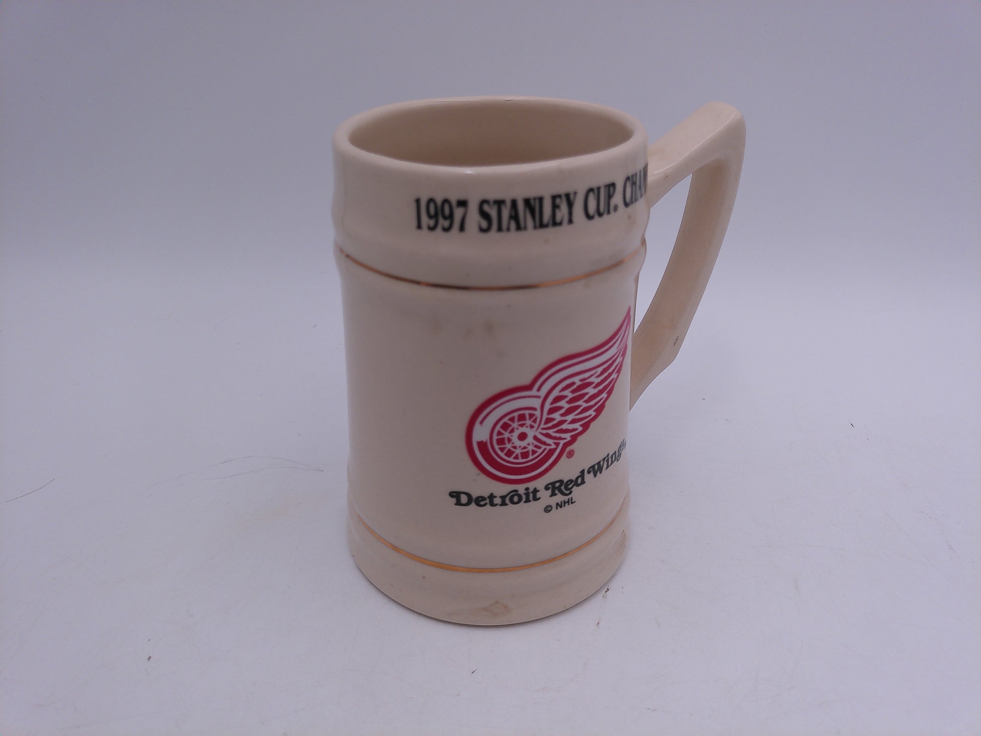 Celebrate the 1997 Stanley Cup Champions with this Detroit Red Wings Beer Stein Mug. Perfect for any hockey fan, this mug features the team's logo and championship year. Sip your favorite brew and relive the glory days with this officially licensed NHL product.