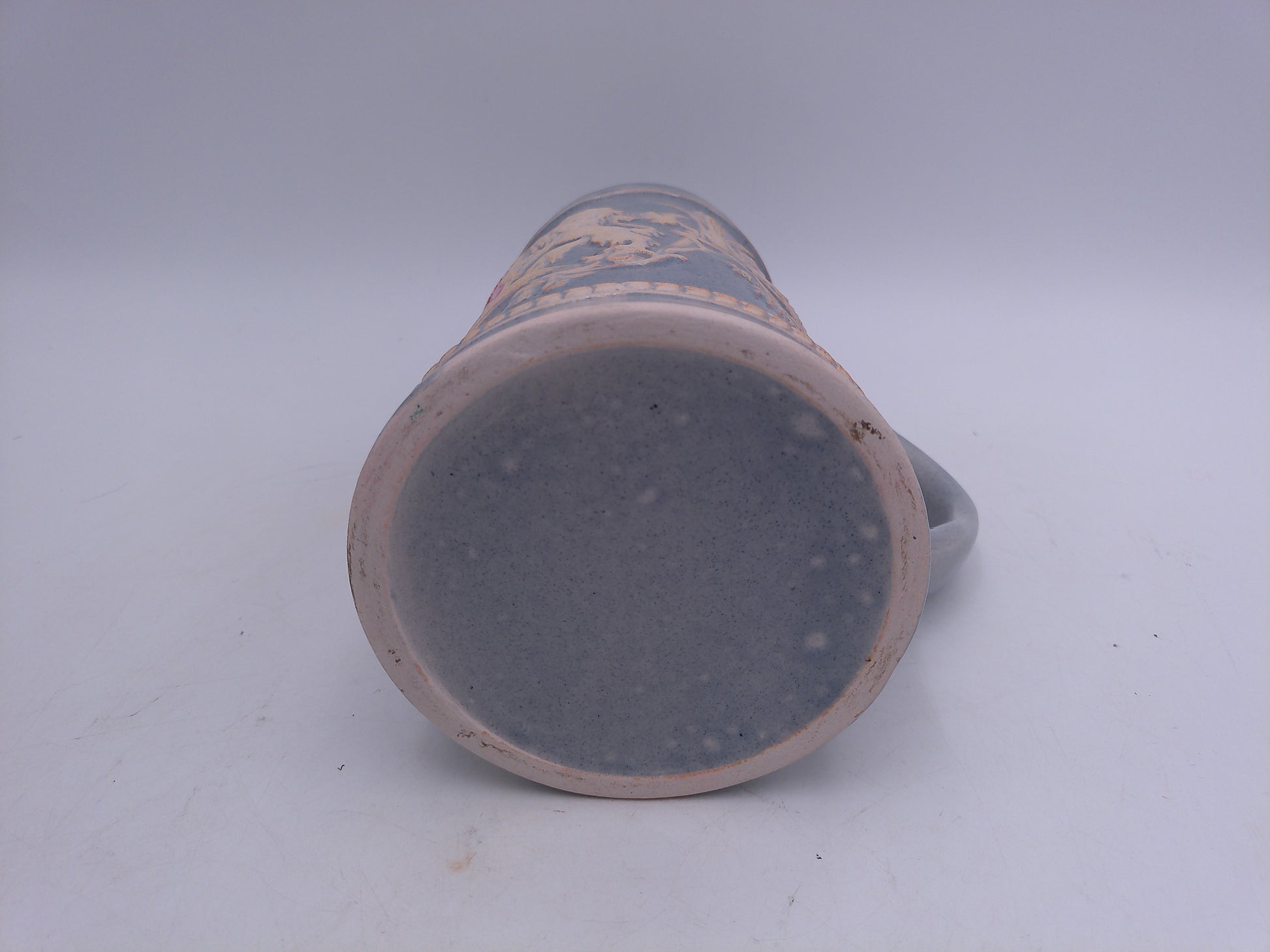 This handmade pottery Beer Stein Mug features traditional Saxon designs. Crafted with care, it is perfect for enjoying your favorite brew. Its sturdy construction and unique design will enhance your drinking experience while adding a touch of culture to your home. Cheers!