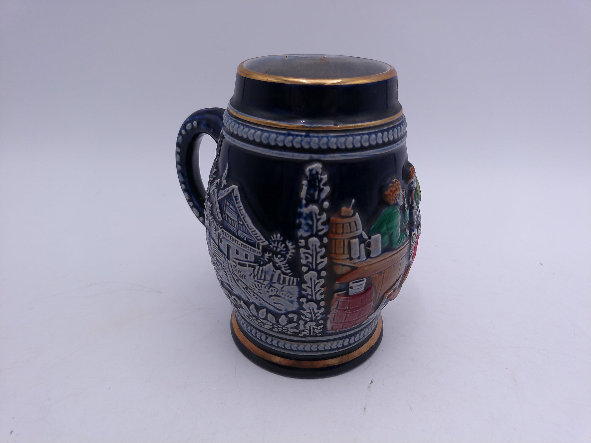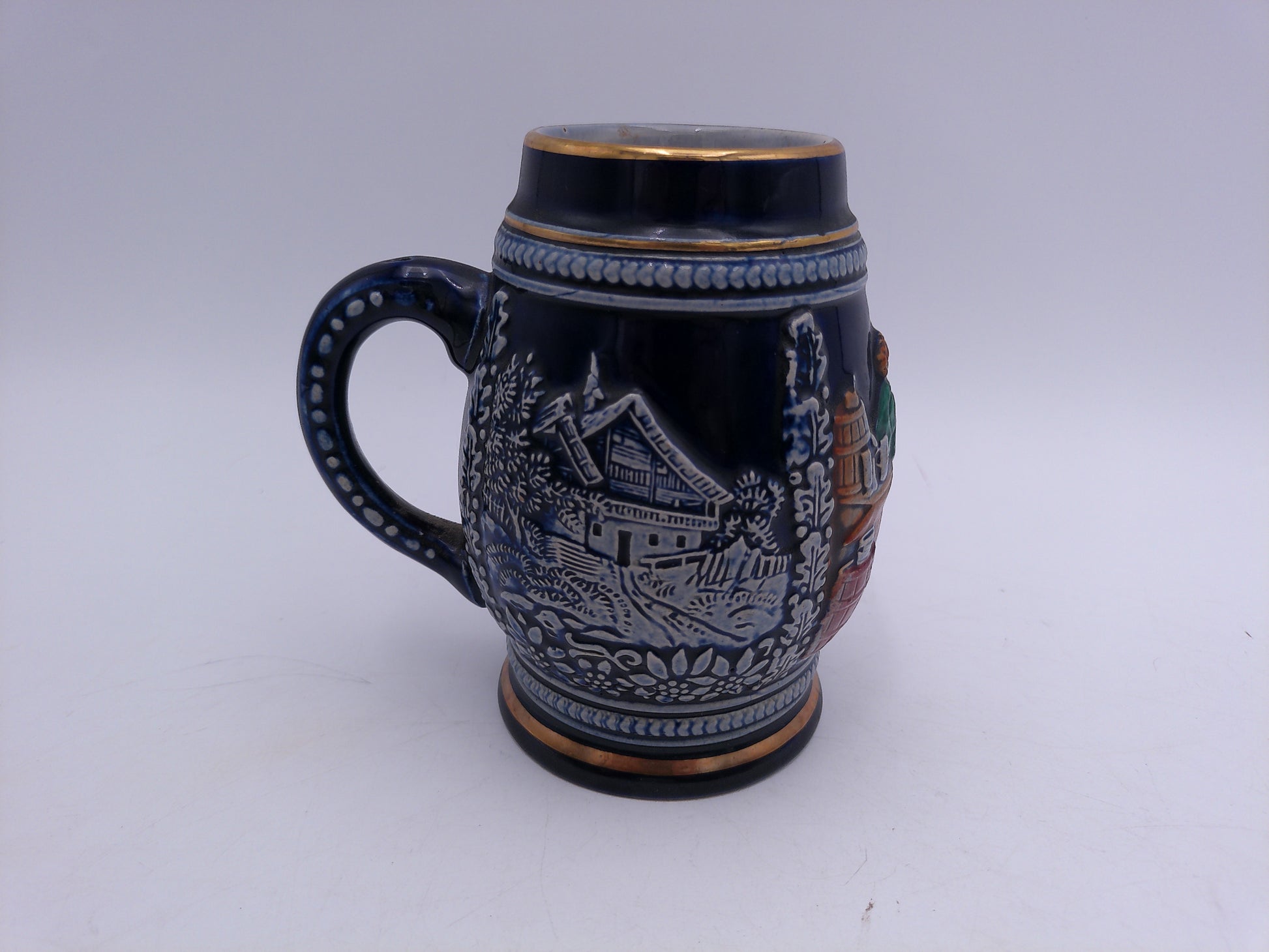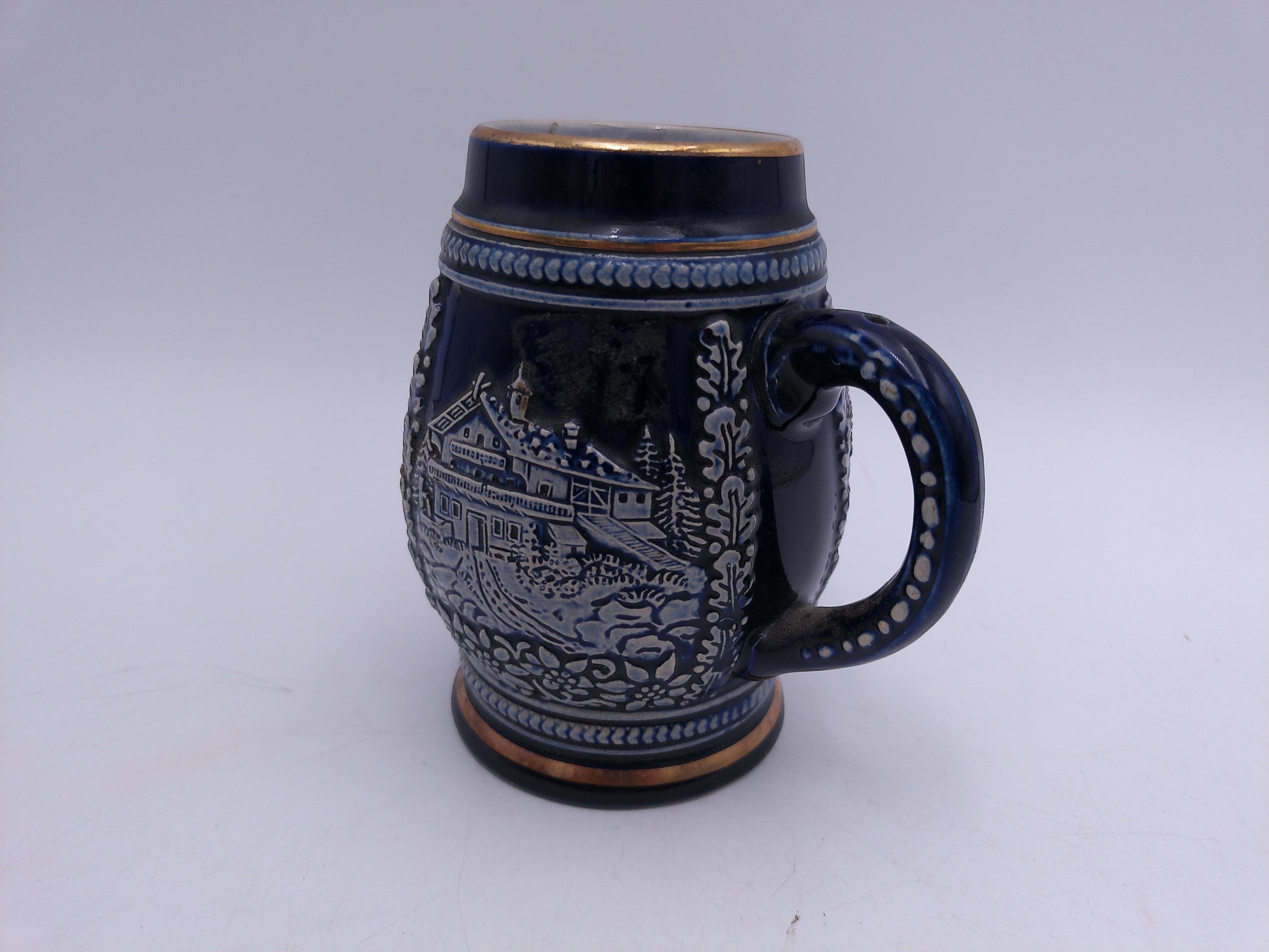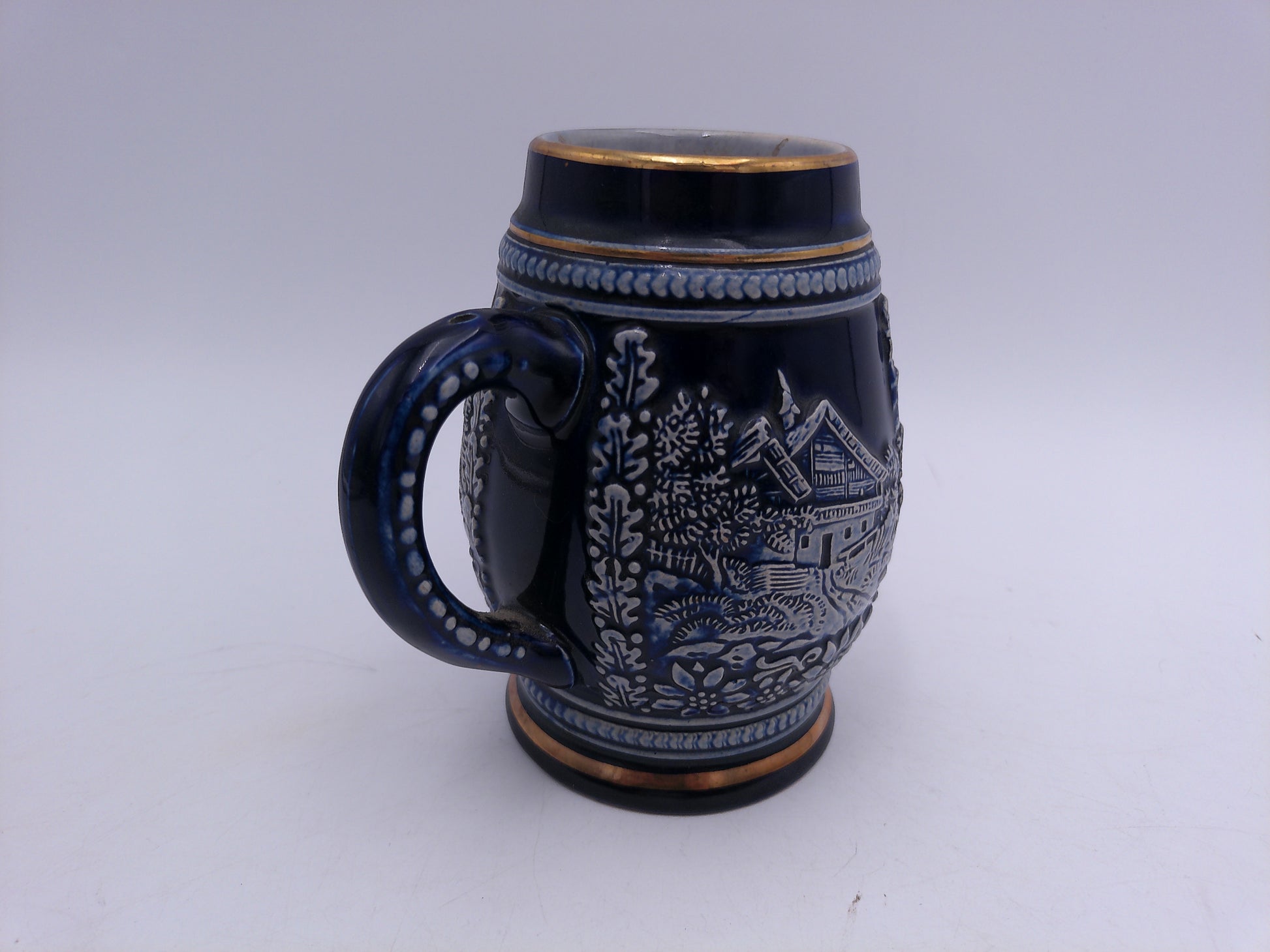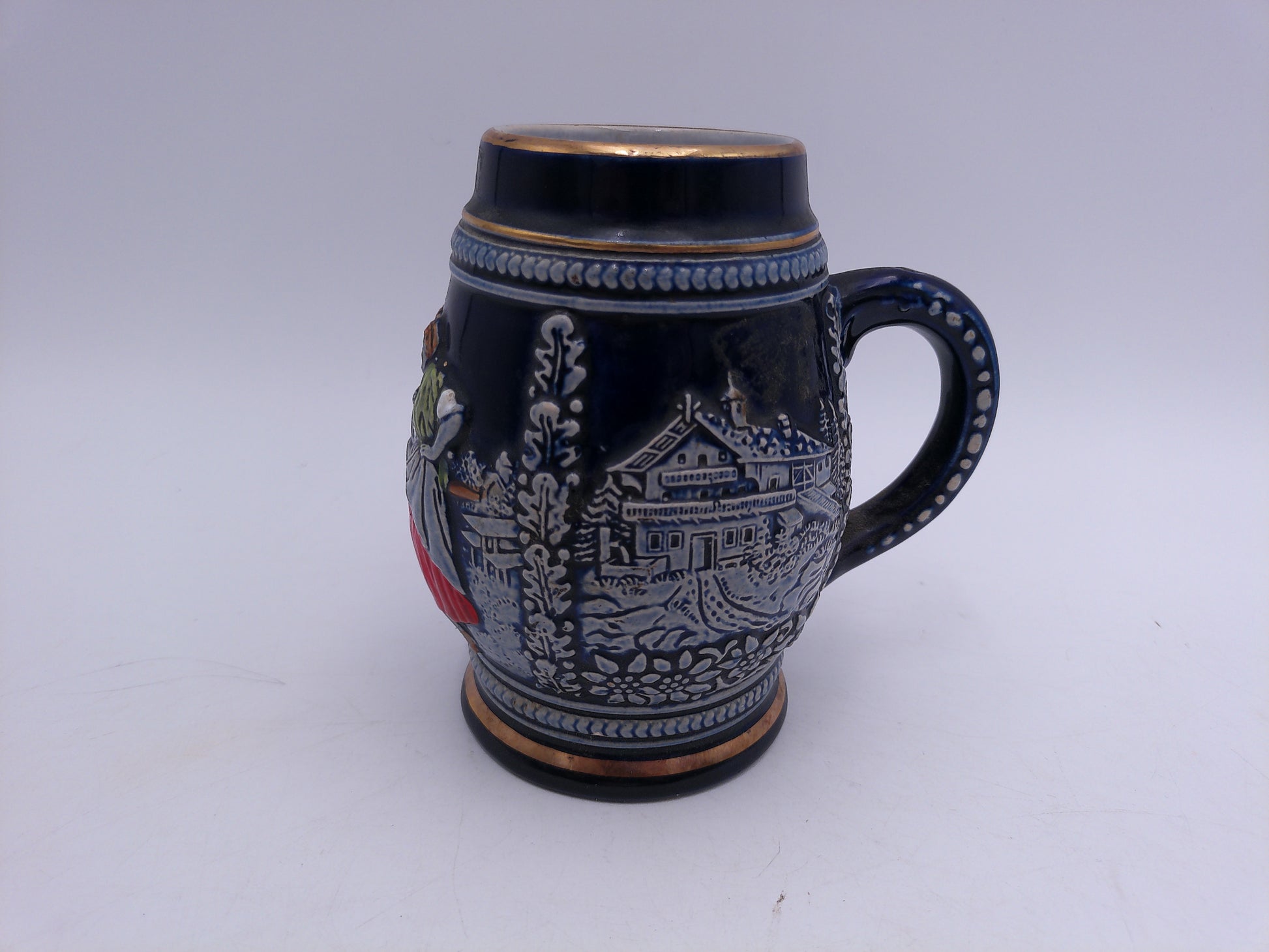 Beer Stein Mug Vintage German Stein with Handle Gold rim and rings